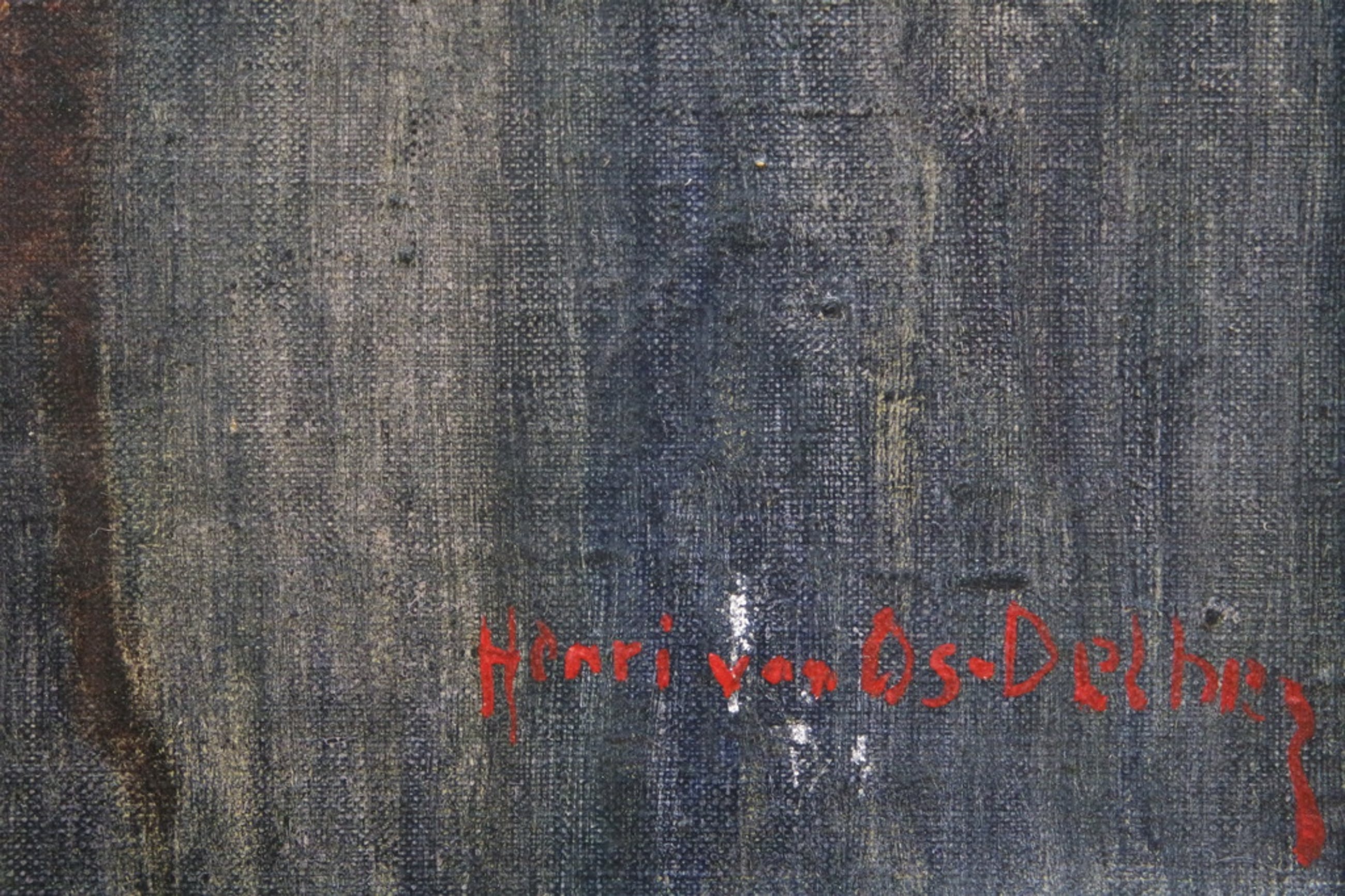 Henri van Os-Delhez werd op 20 oktober 1880 geboren te Nieuwer-Amstel. Oorspronkelijk werd hij opgeleid voor decorateur en bezocht de Ambachtschool en de Tekenschool voor Kunstambachten te Amsterdam. Hier ontving hij zijn eerste onderscheiding. De bekende landschapschilder A.M. Gorter gaf hem ook nog enige tijd les.