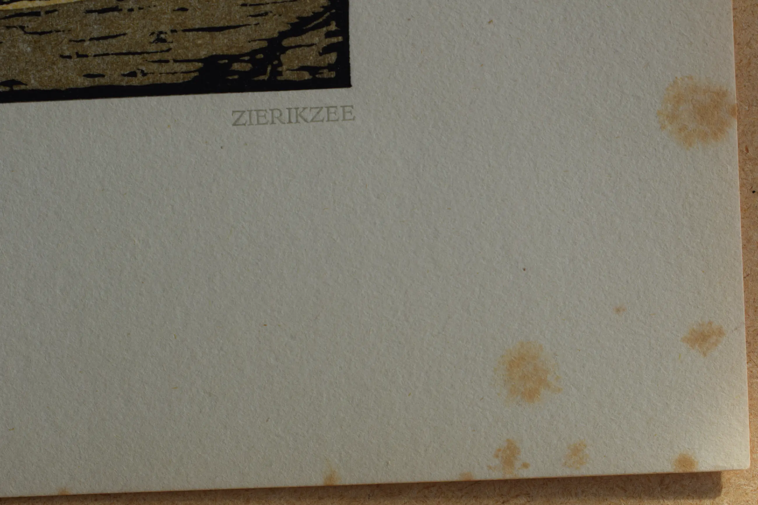 Papier heeft last van vochtplekjes, afbeelding is daarvan vrij gebleven.