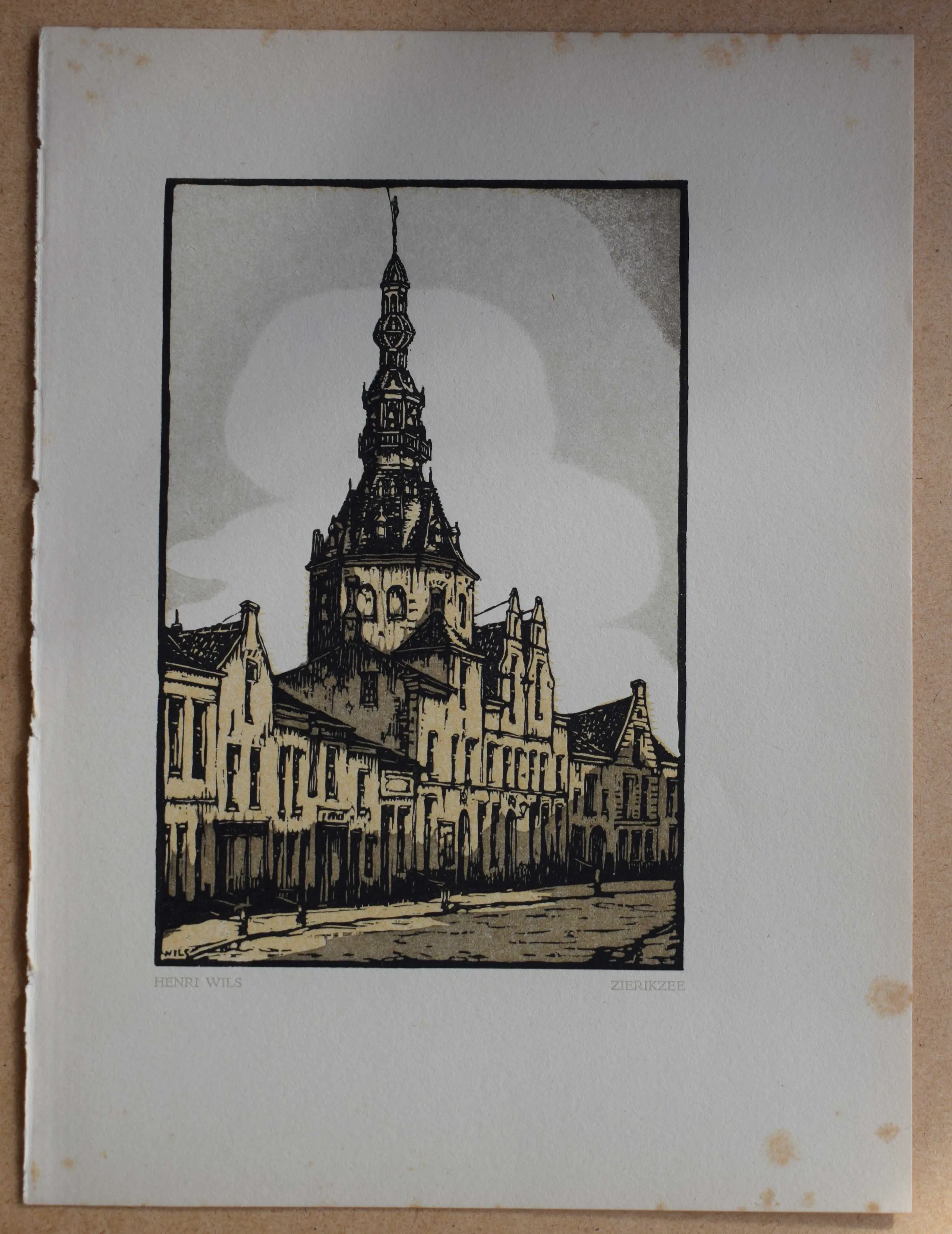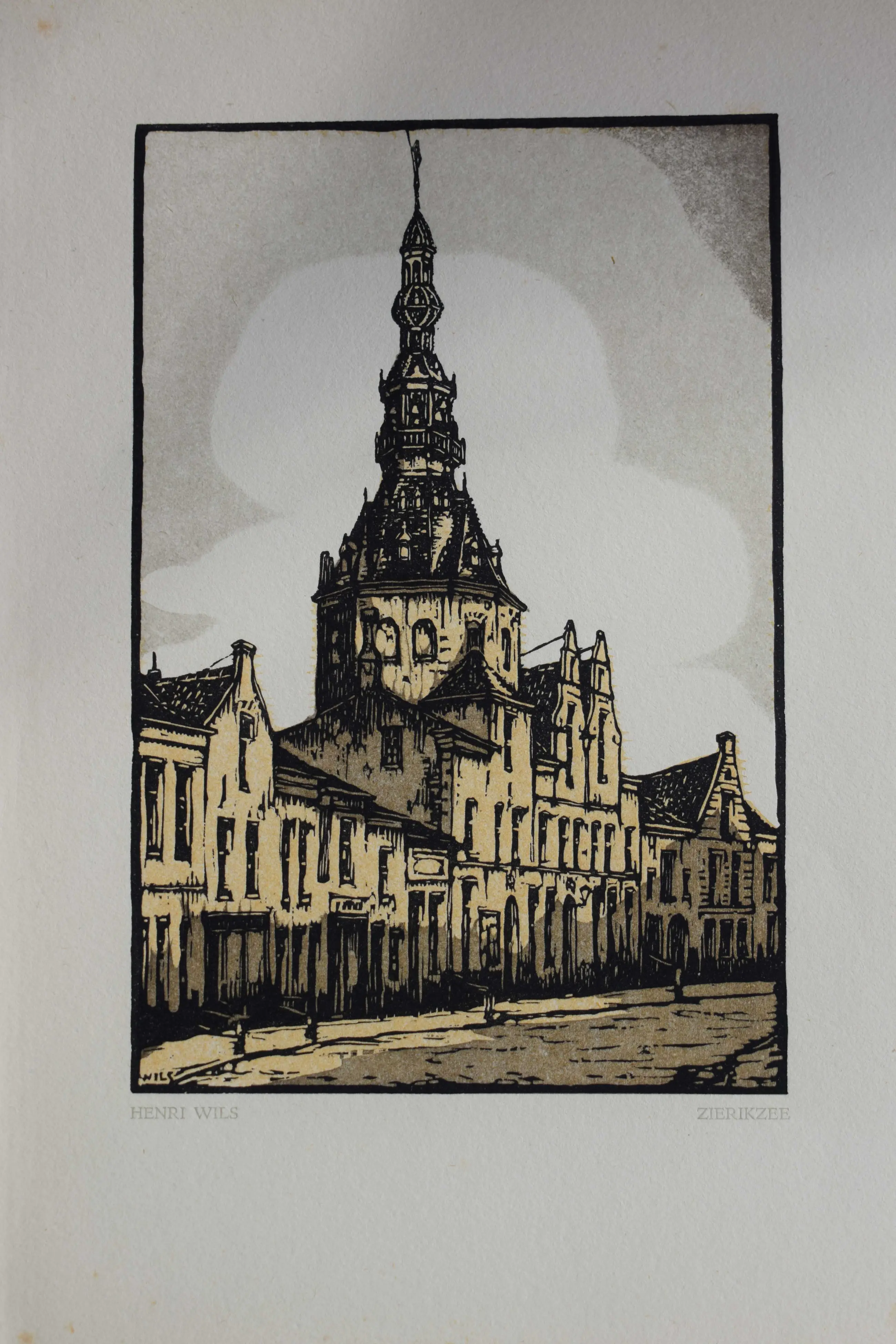 Fraaie houtgravure in meerkleurendruk van Henri Wils.