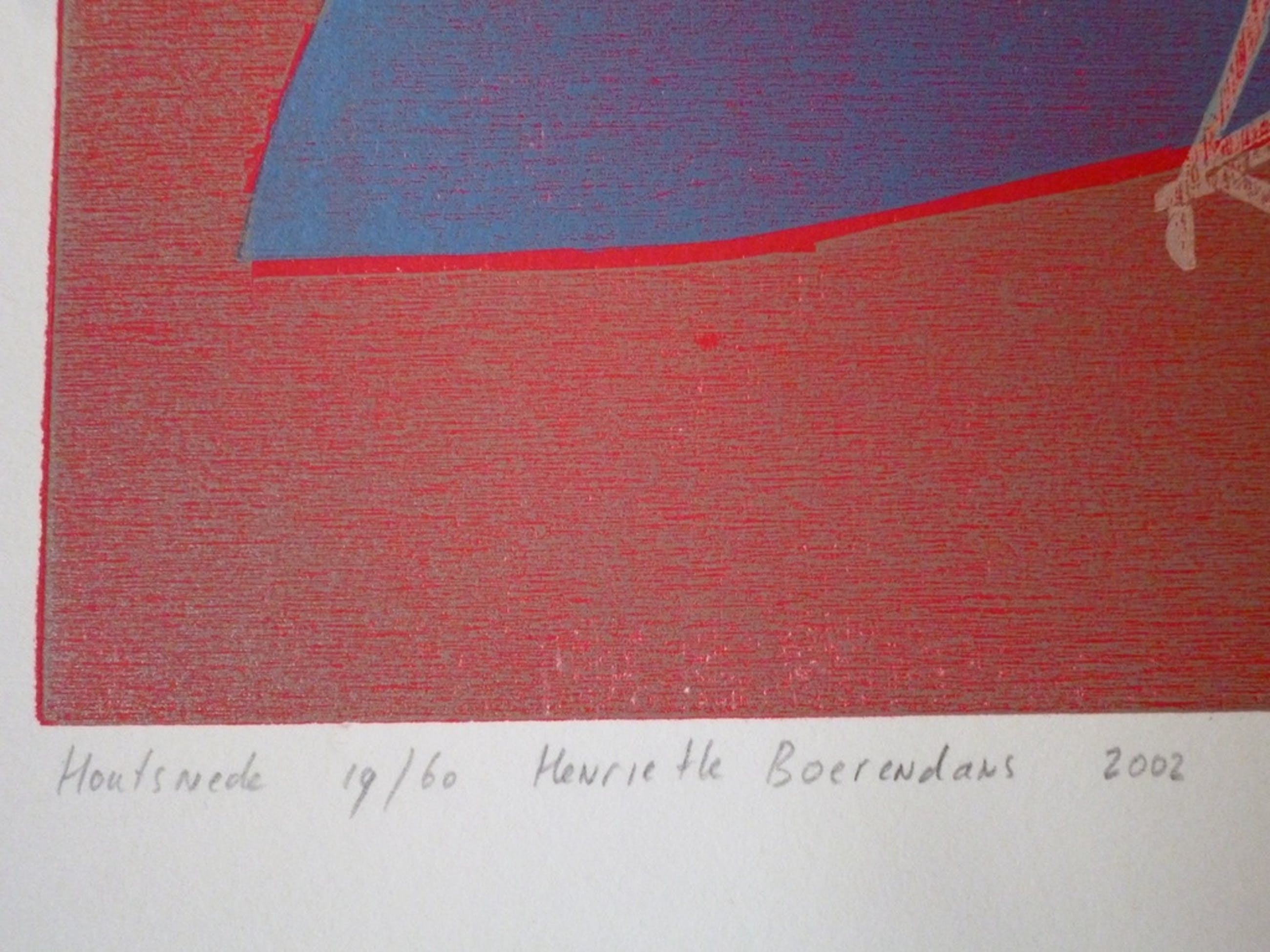 Kleurenhoutsnede, potlood gesigneerd en gedateerd 11 maart 2002. Oplage nummer 19/60.