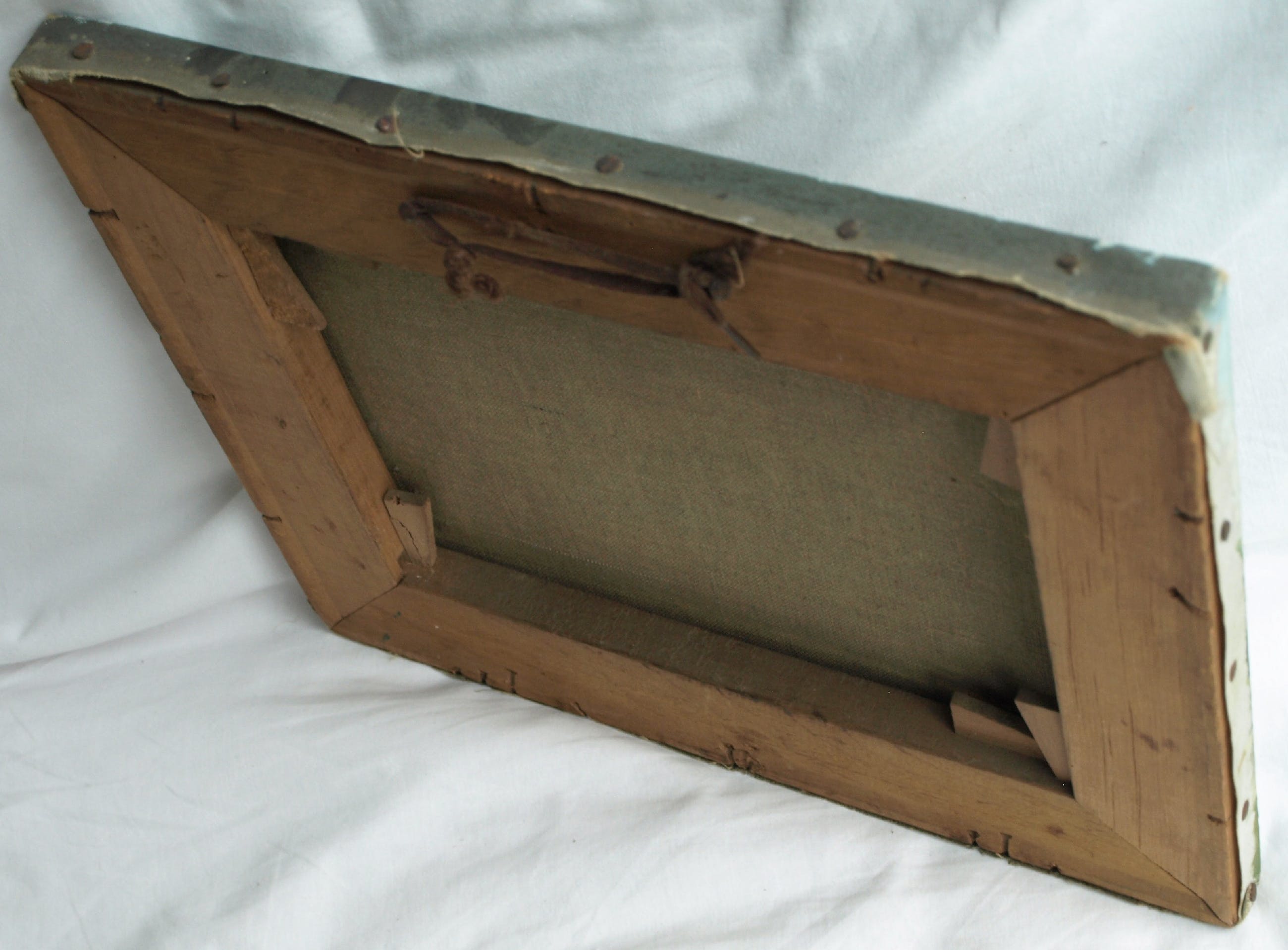 Het werk is in goede staat met ouderdomssporen en een lichte doordruk in het doek door het hout van het spieraam. Zie ook de foto’s voor een eigen indruk. | |||