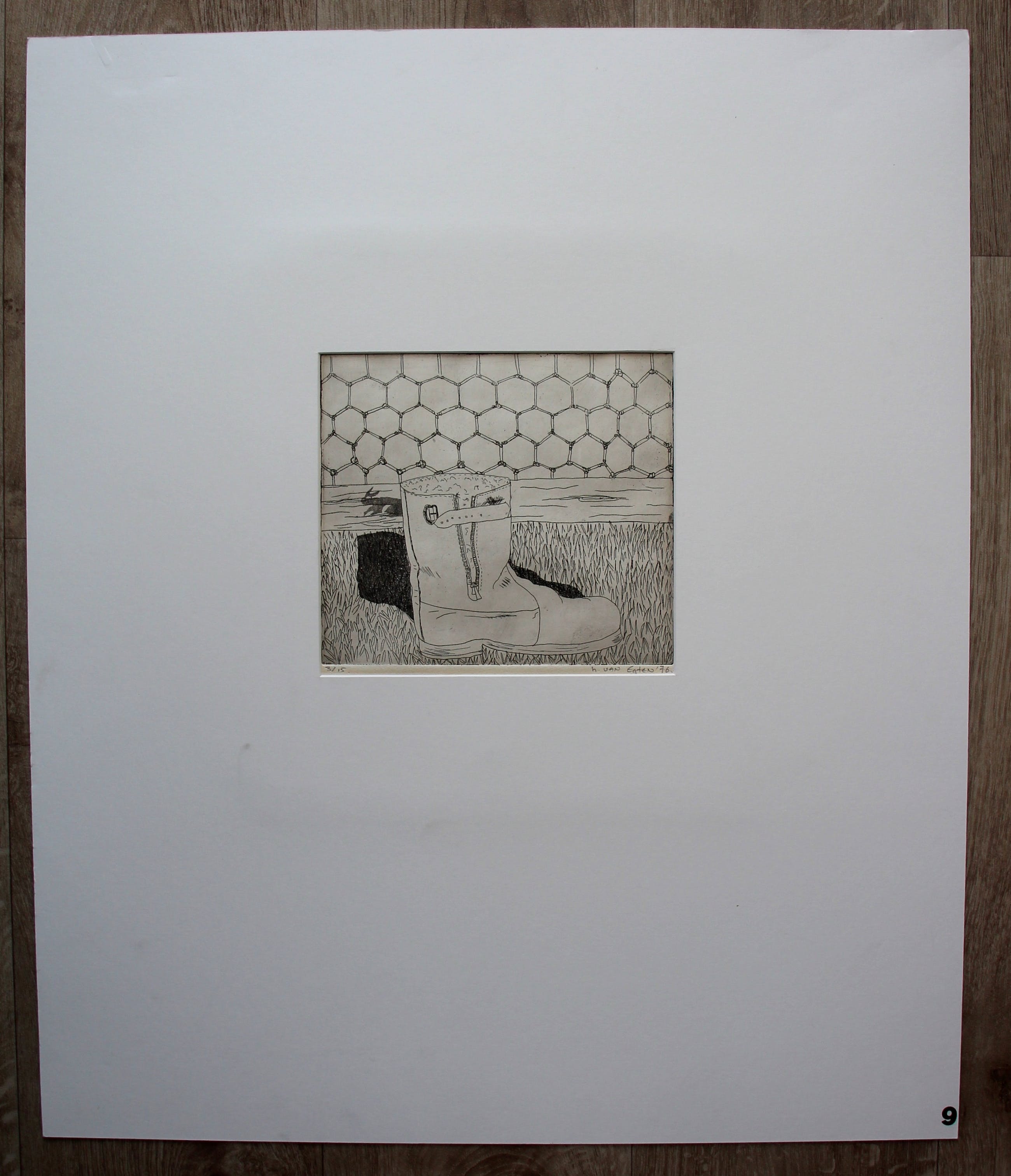 Ets van Henriette van Egten uit 1976. Nummer: 3/15. Afmetingen blad incl pp: H71 x b60 cm. Afmetingen voorstelling: H19 x b22. Het werk is rechtsonder gesigneerd door de kunstenares. De authenticiteit van het aangeboden werk wordt volledig gegarandeerd. Een certificaat van echtheid kan, op aanvraag, worden gemaild.