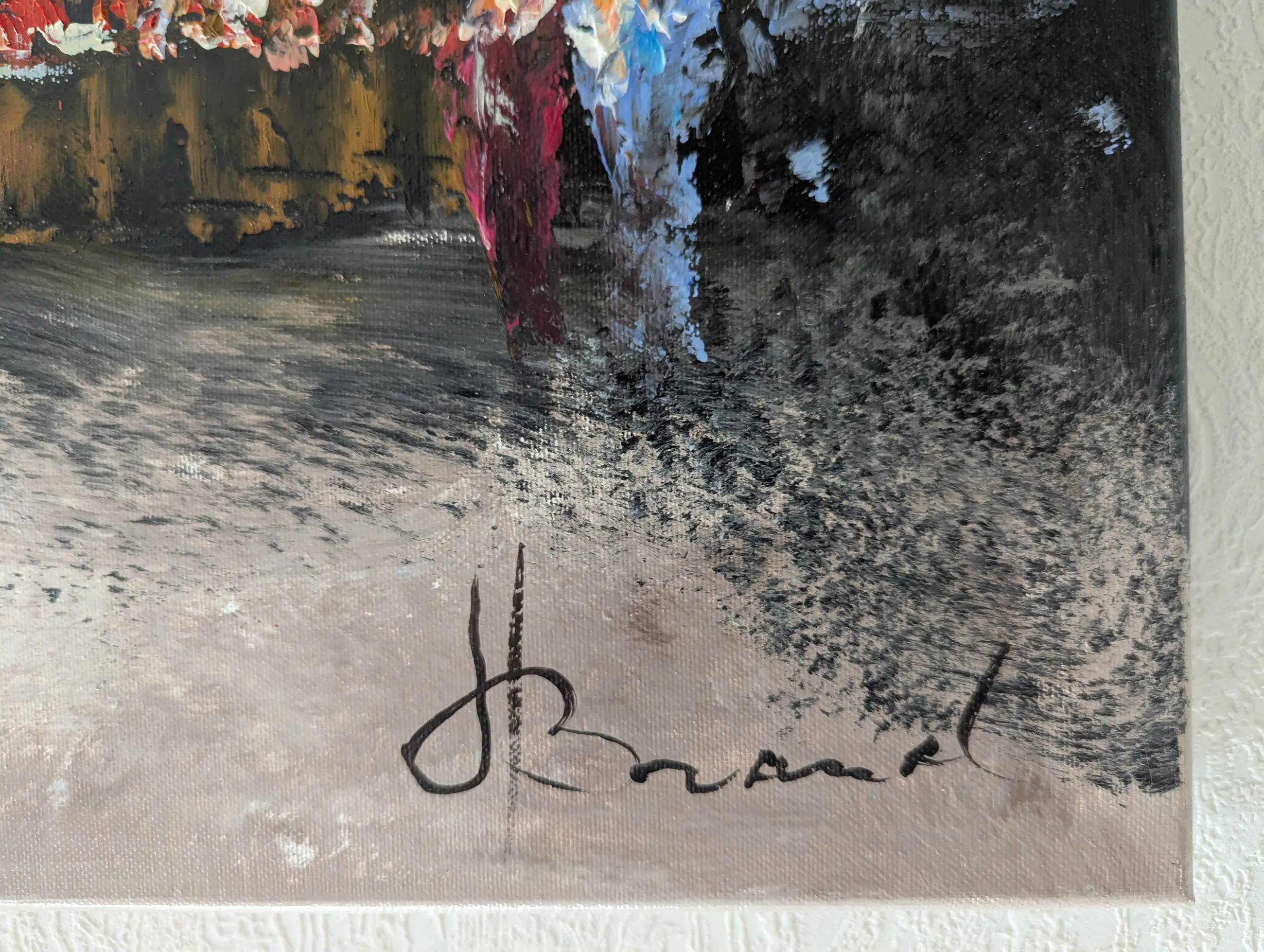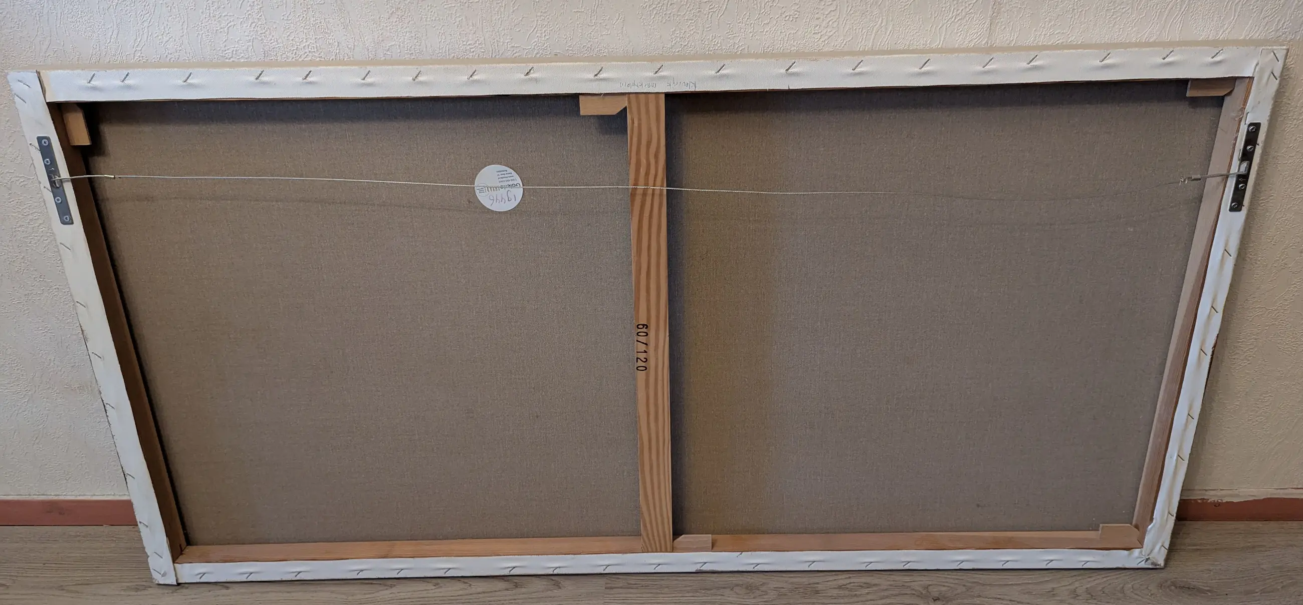 Het schilderij is in goede staat en heeft een goede metalen draad aan de achterzijde zodat het gemakkelijk opgehangen kan worden. De randen van het schilderij zijn beschilderd zodat er geen lijst omheen hoeft.