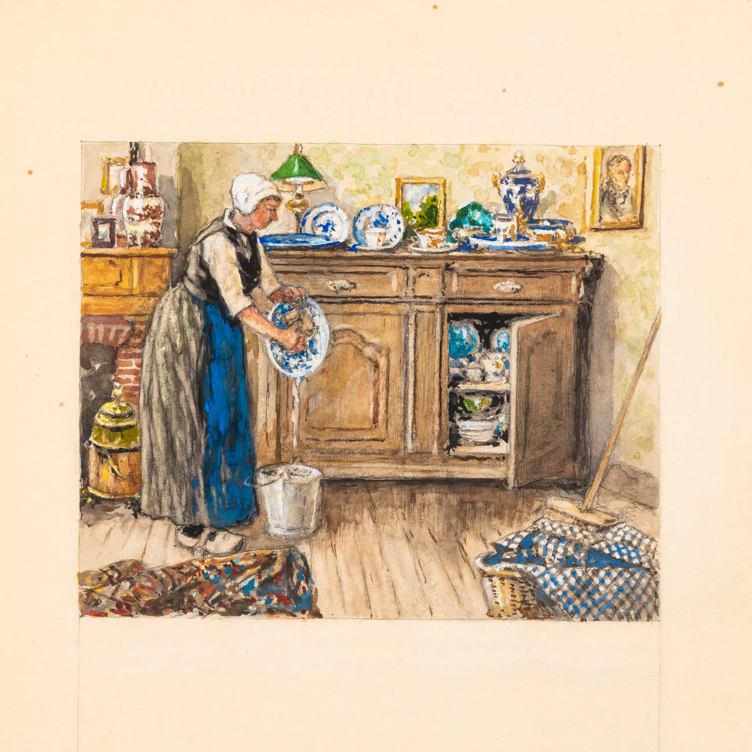 Werk is in goede staat. De aquarel heeft altijd in de originele portfolio gezeten