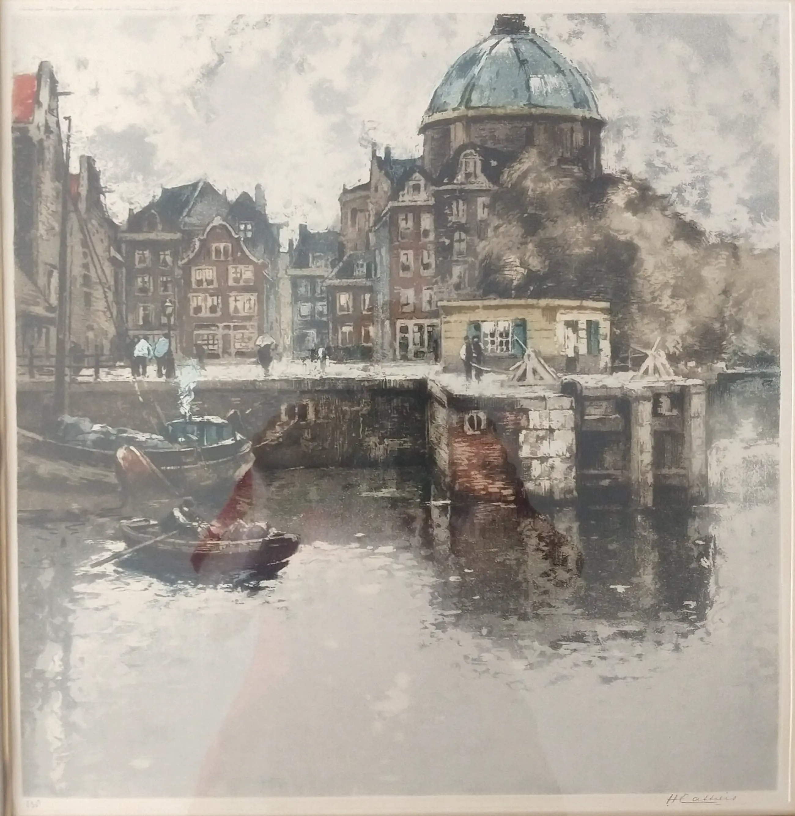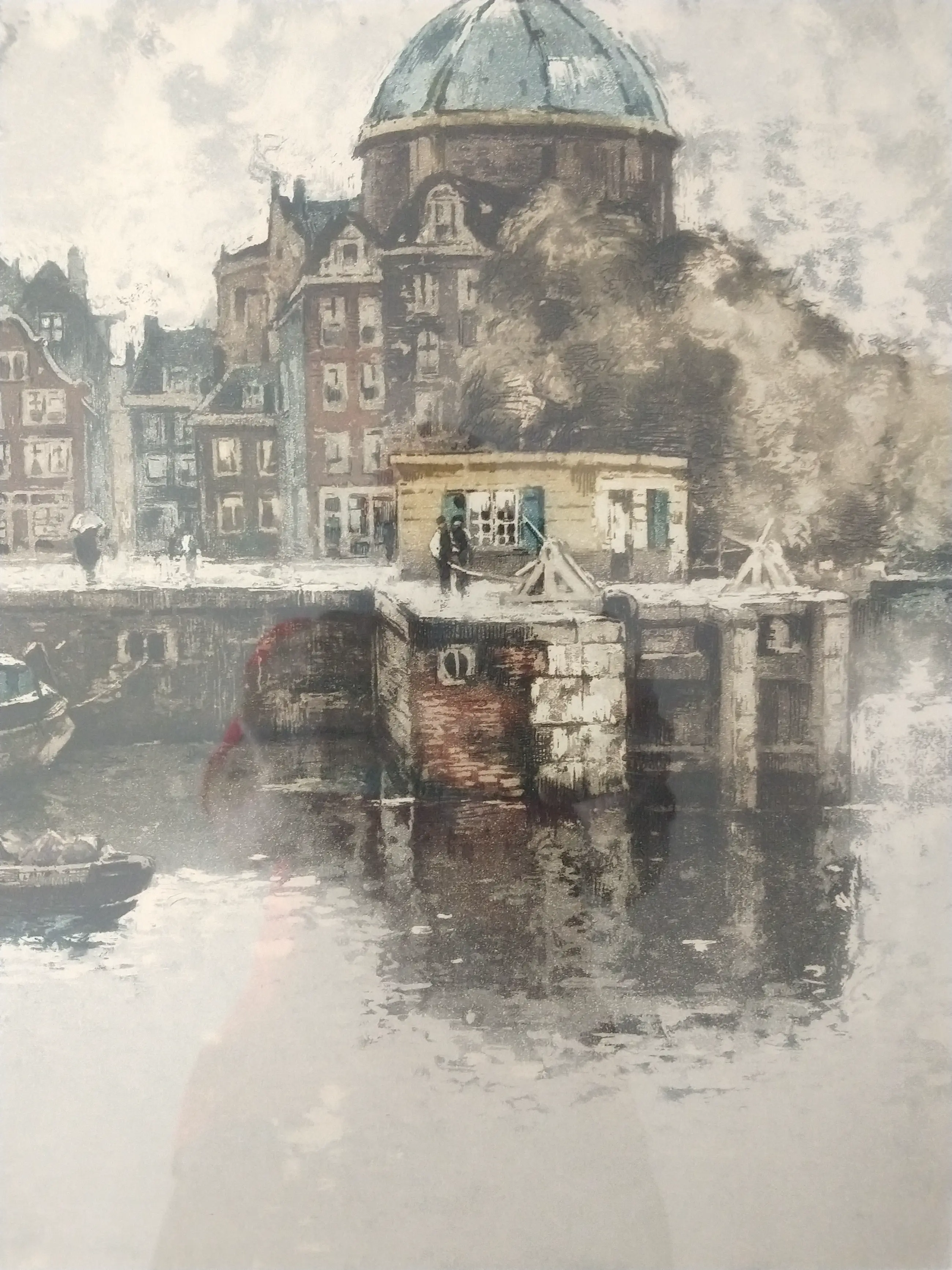 Henri Cassiers (1858-1944). Haarlemmersluis en Lutherse kerk te Amsterdam.