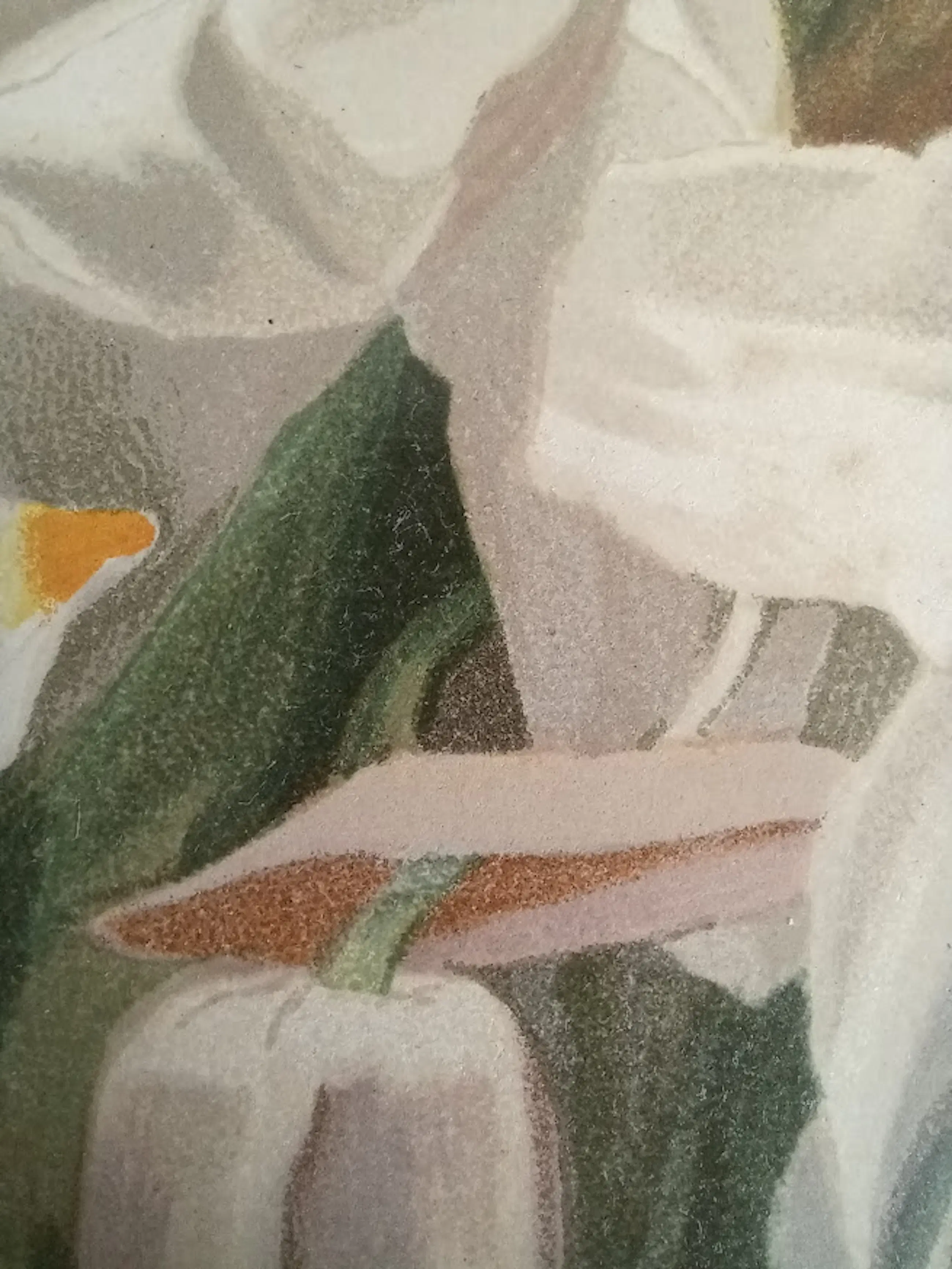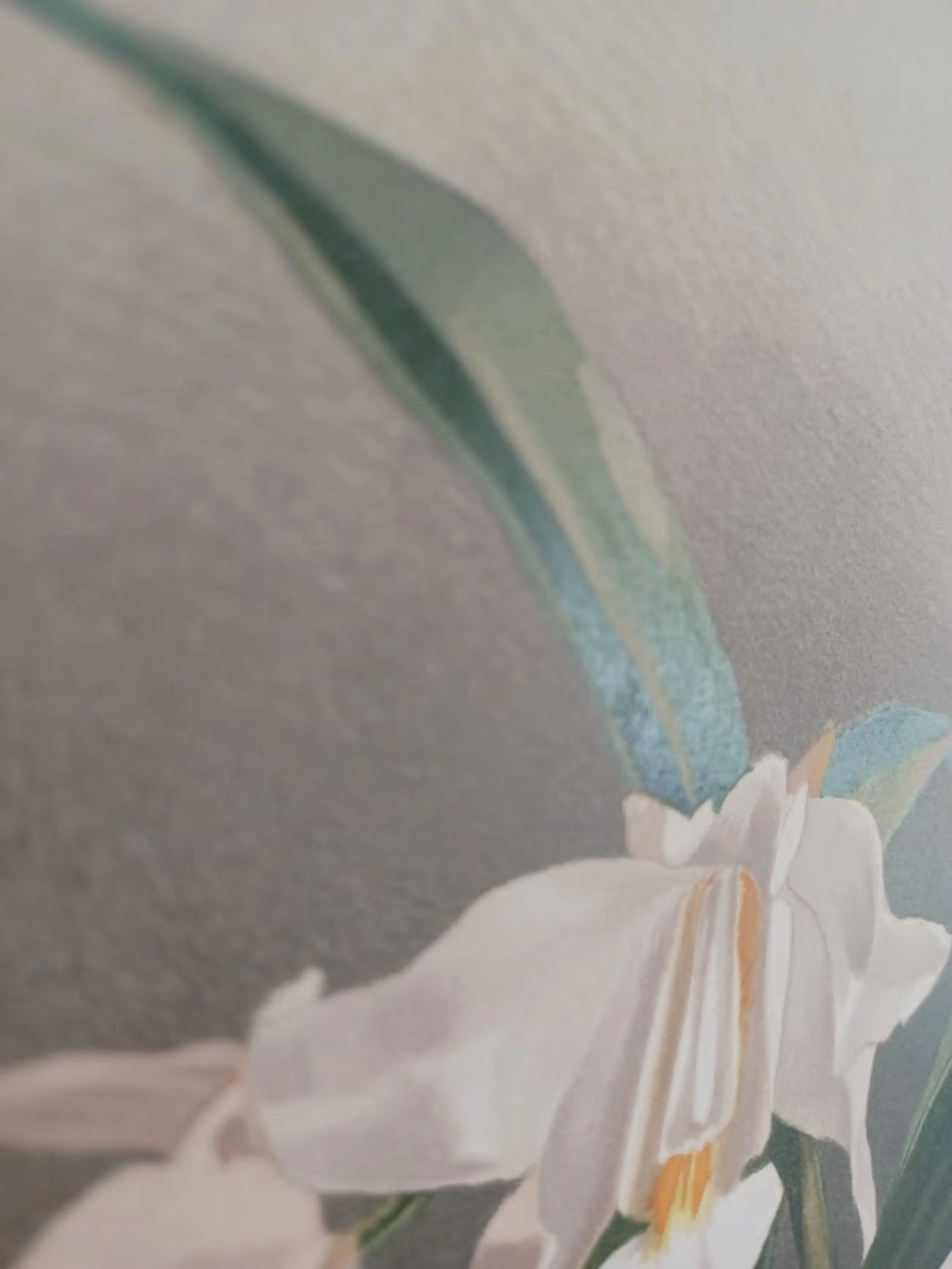 Dit betreft de Coelogyne cristata maxima (ook wel de 'Sneeuwkoningin' genoemd), een prachtig verstild en sfeervol werk met een bijzondere gelaagdheid.