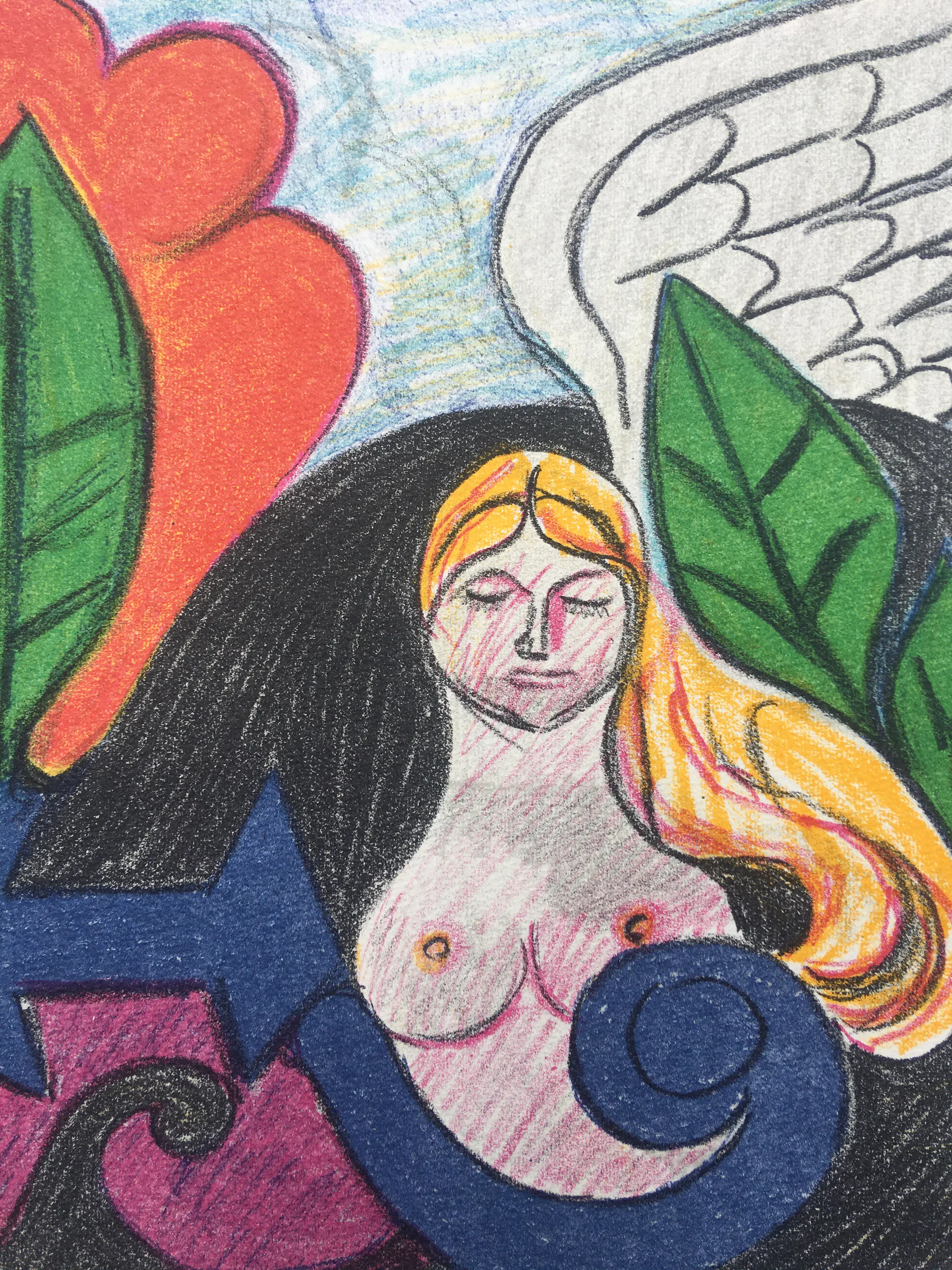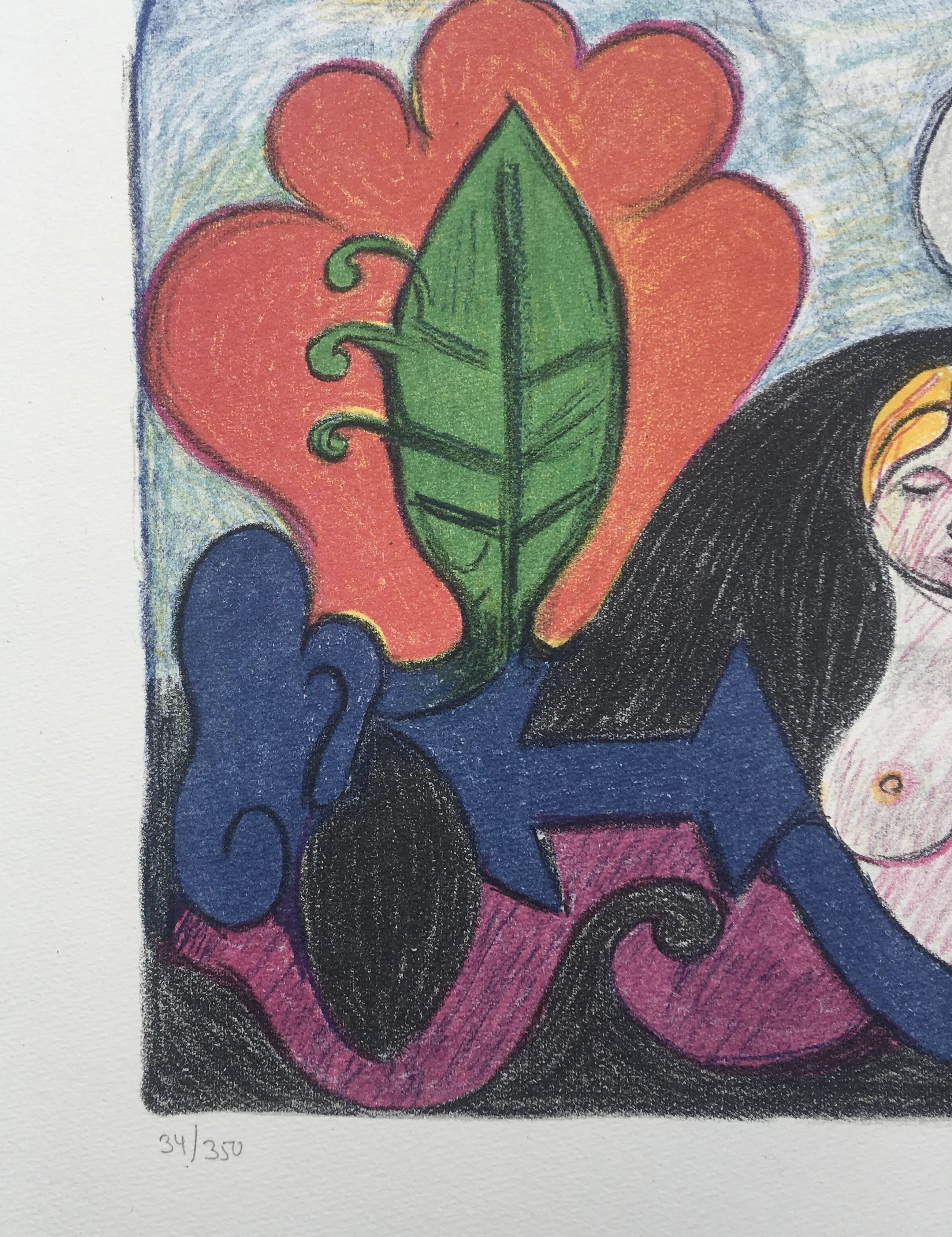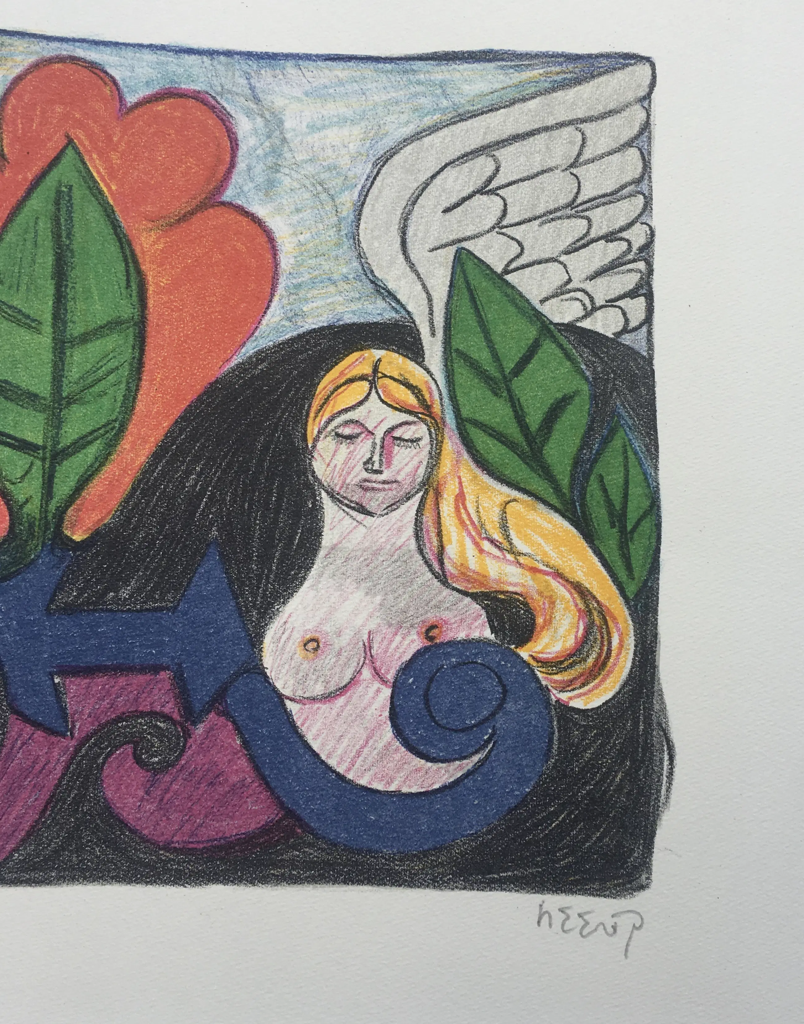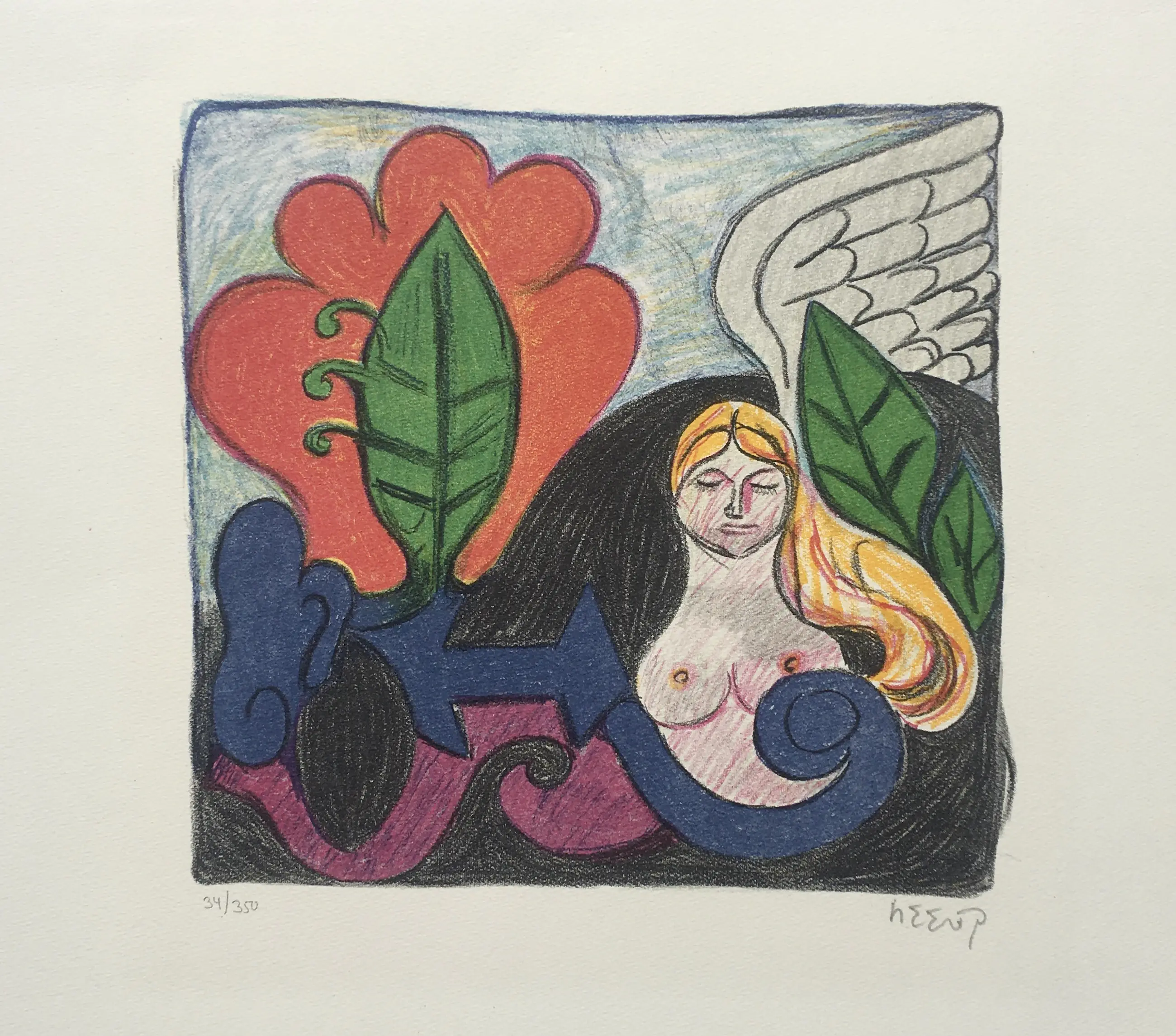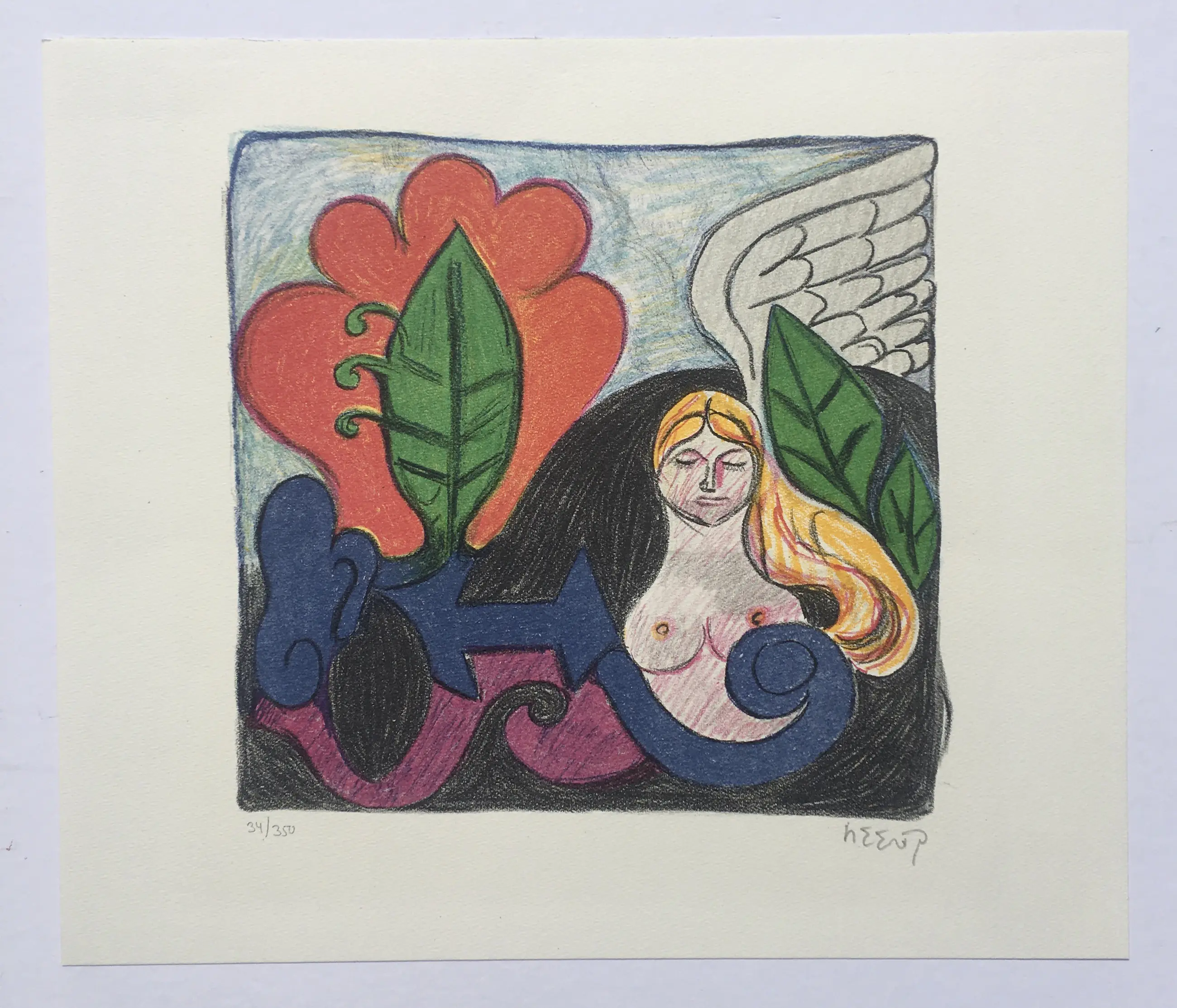 Een fraaie kleuren litho van Henry Heerup. Het werk is gesigneerd en genummerd, oplage 350 ex.
