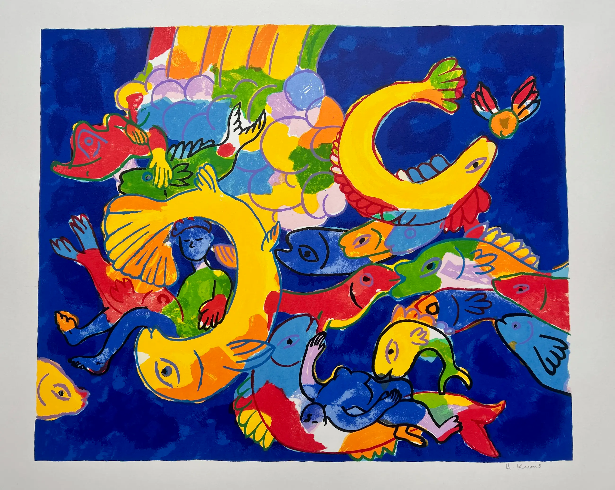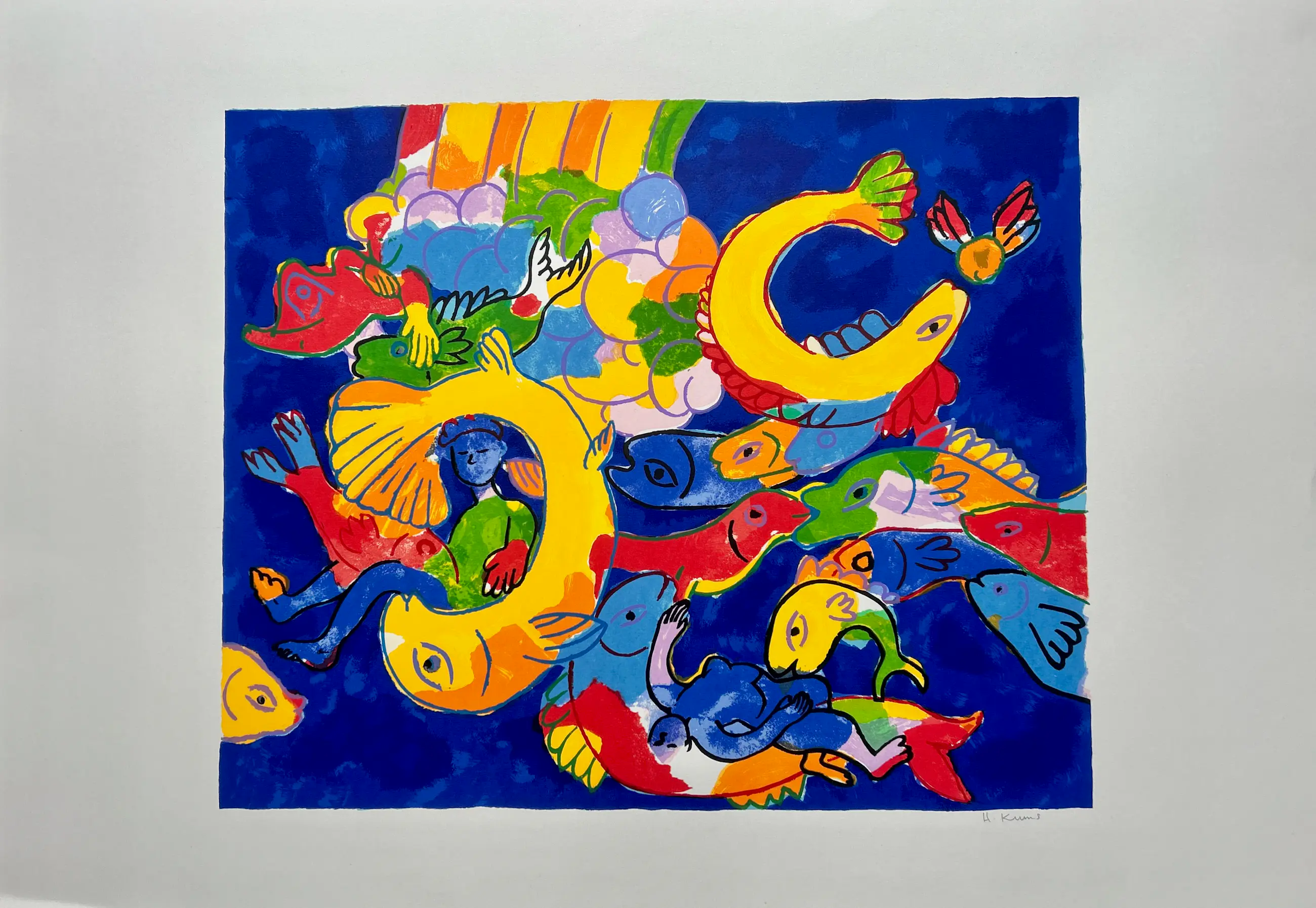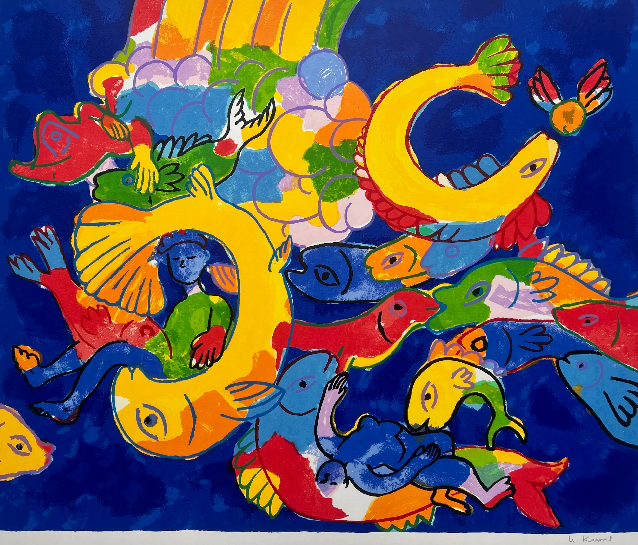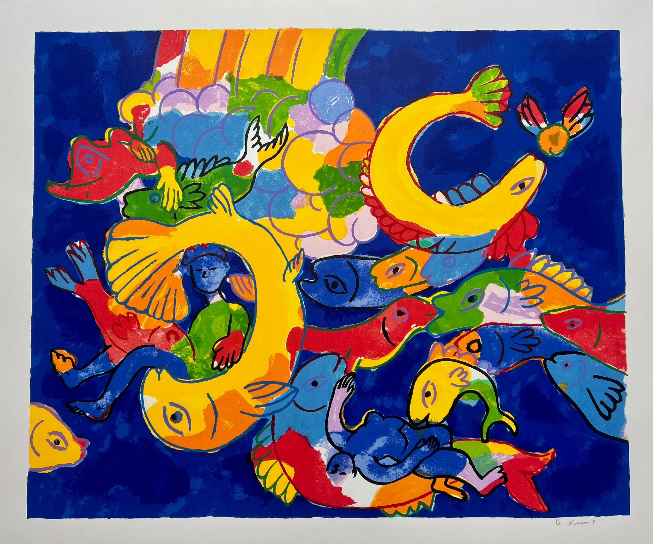 Conditie: zeer goed. Vouwtje linksonder hoek, zie foto. Afmeting: afbeelding 53 x 65 cm. Wordt zorgvuldig verpakt en verzekerd verzonden.