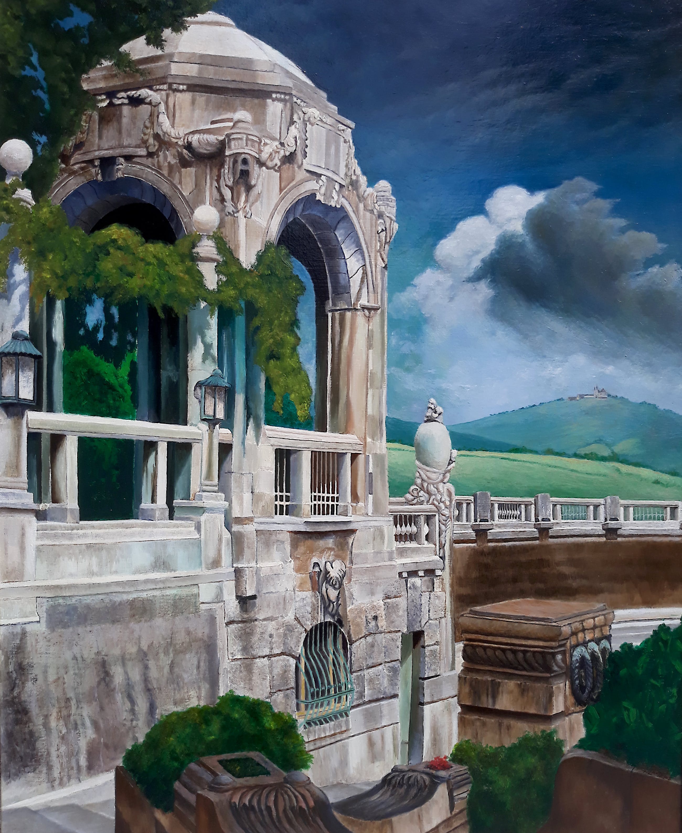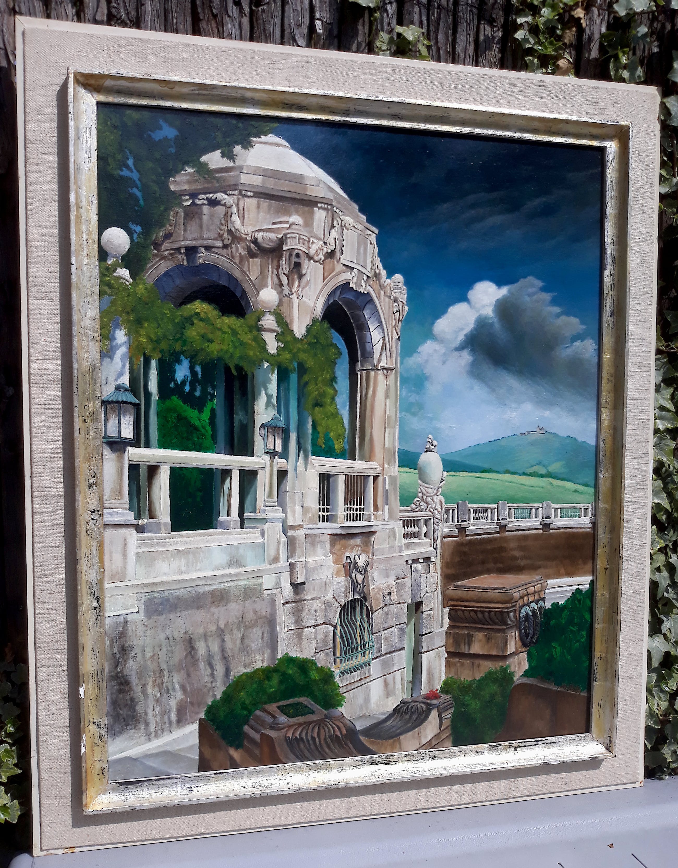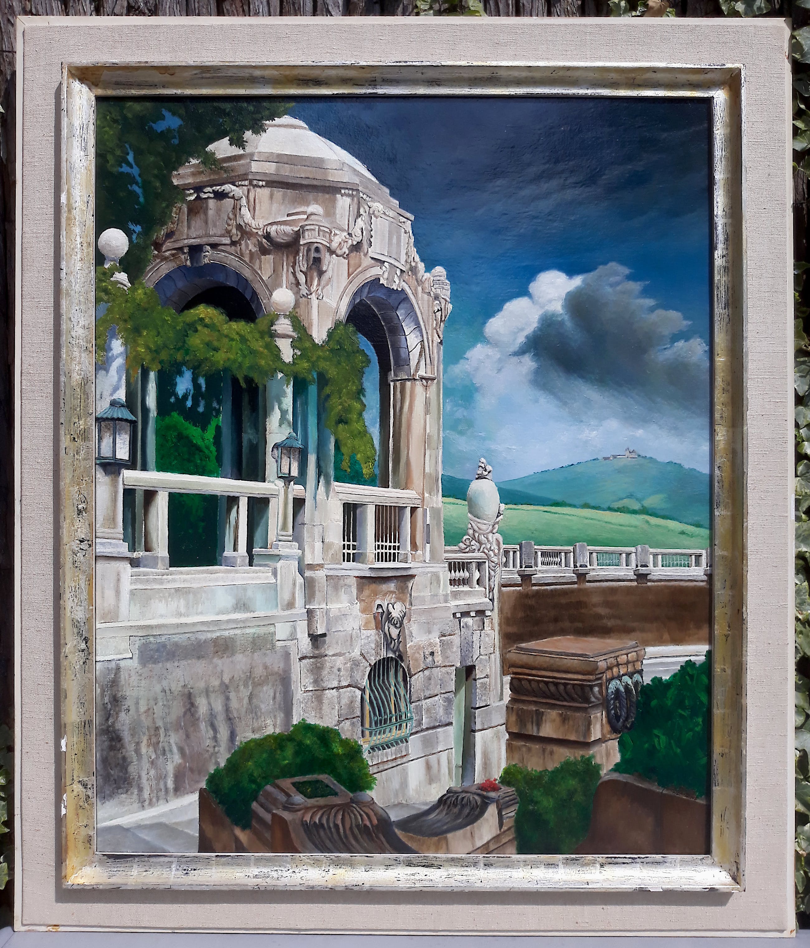 Zeer mooi, fijn geschilderd landschap van Henry Lantzius, die vooral beinvloed werd door magisch realisten als Carel Willink en Pyke Koch. Olieverf op doek, gesigneerd rechtsonder, te dateren jaren 80-90, in complementerende lijst. In zeer goede conditie; doek in uitstekende conditie, lijst paar hele kleine beschadigingen.