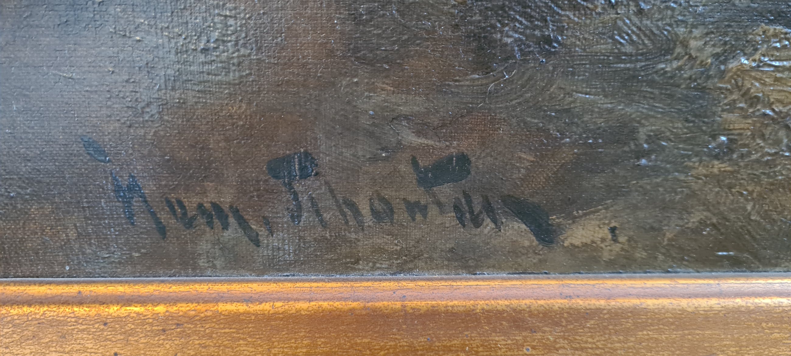 Schilderij, Herder met schapen, olie op doek, gesigneerd links onder, vermoedelijk originele kader