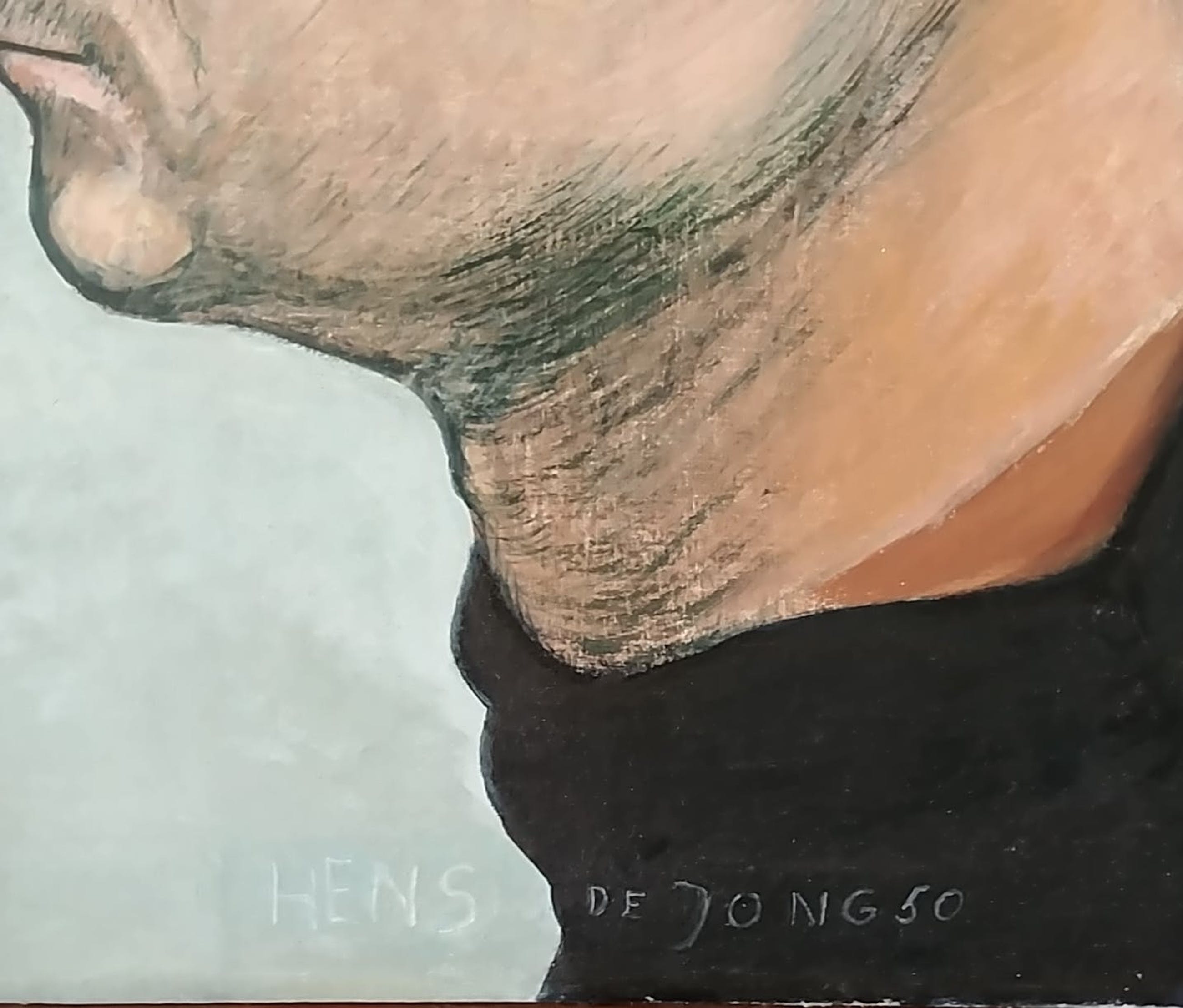 Volgens de familie in een boze bui in 1950 expres niet gelijkend op toenmalige echtgenoot Co Westerik geschilderd portret.