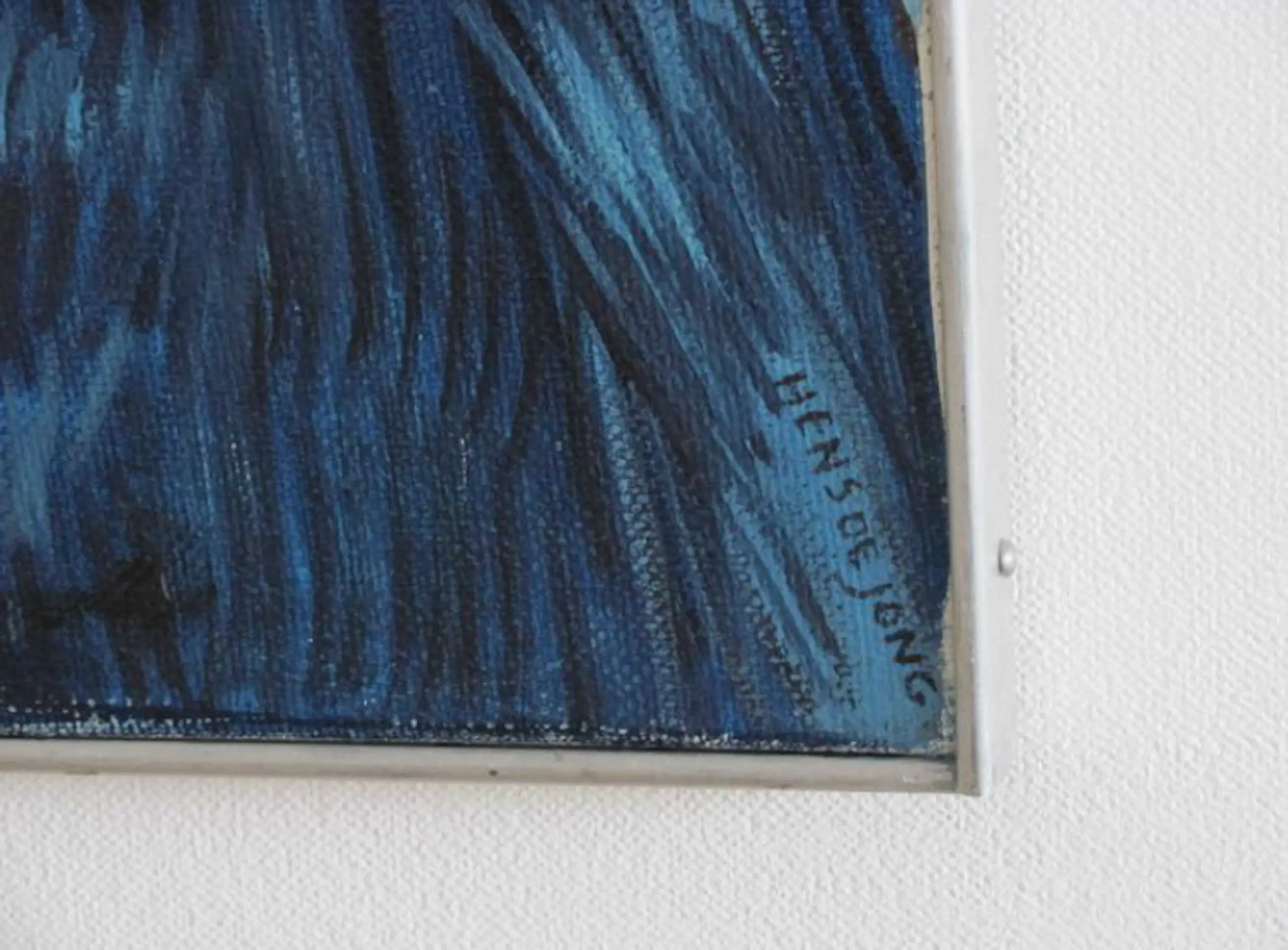Mooi naïef olieverf schilderij van Hens de Jong inclusief boekje met overzicht van haar werk.