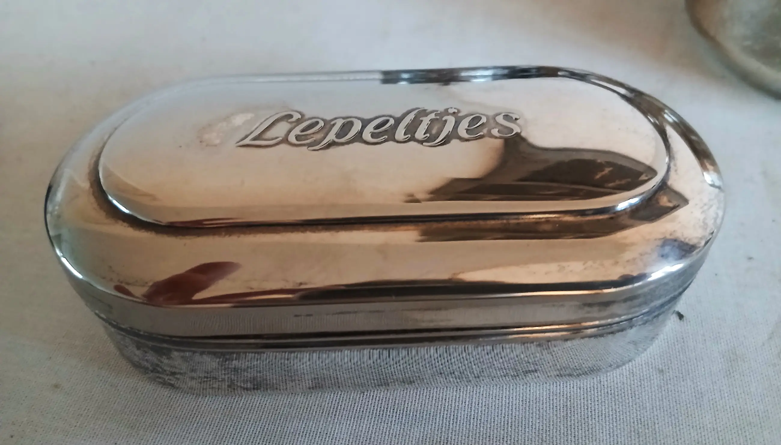 Lepeldoosje heeft een los scharnier, maar is bruikbaar.