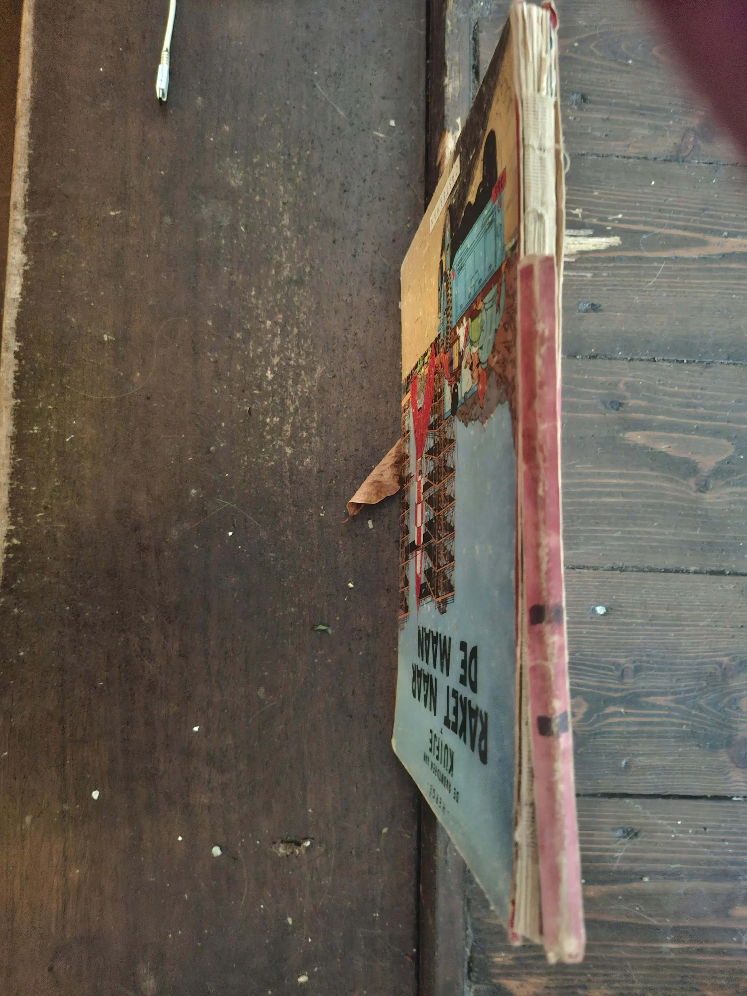 het boek heeft aan de voorkant en achterkant gebruikssporen door de jaren heen.
