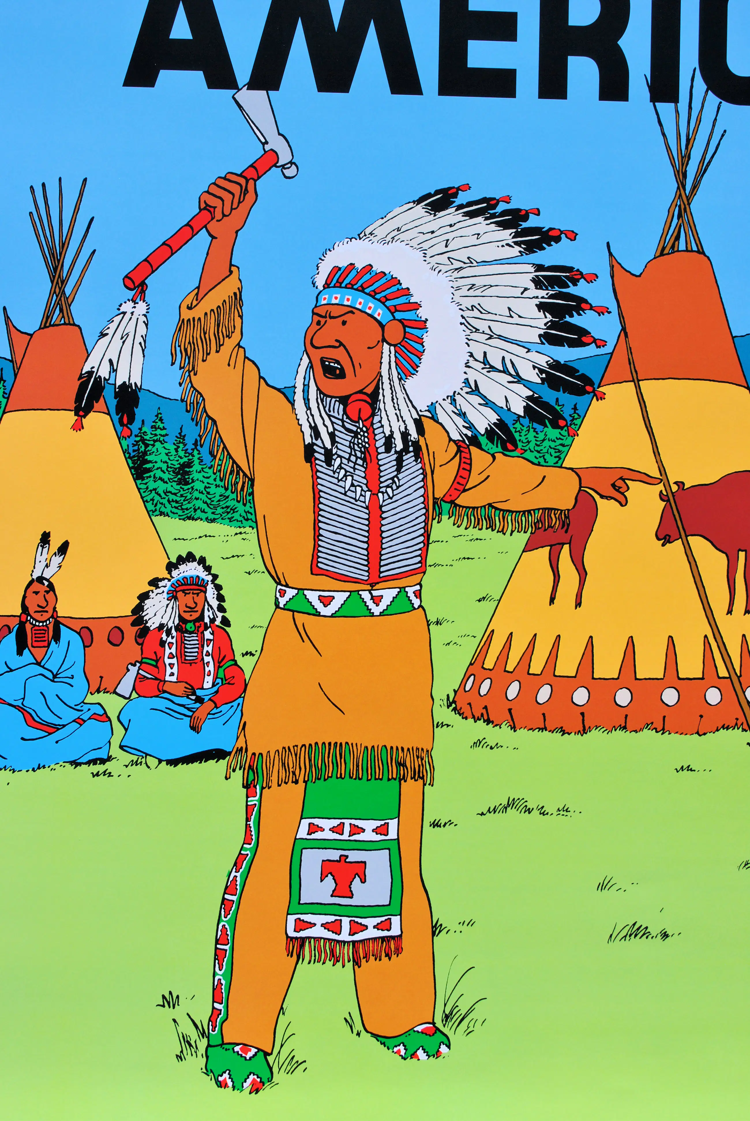INFORMATIE: Deze poster gebruikt de afbeelding van de cover van het album Kuifje in Amerika, het derde album van de avonturen van Kuifje, gepubliceerd in 1946.