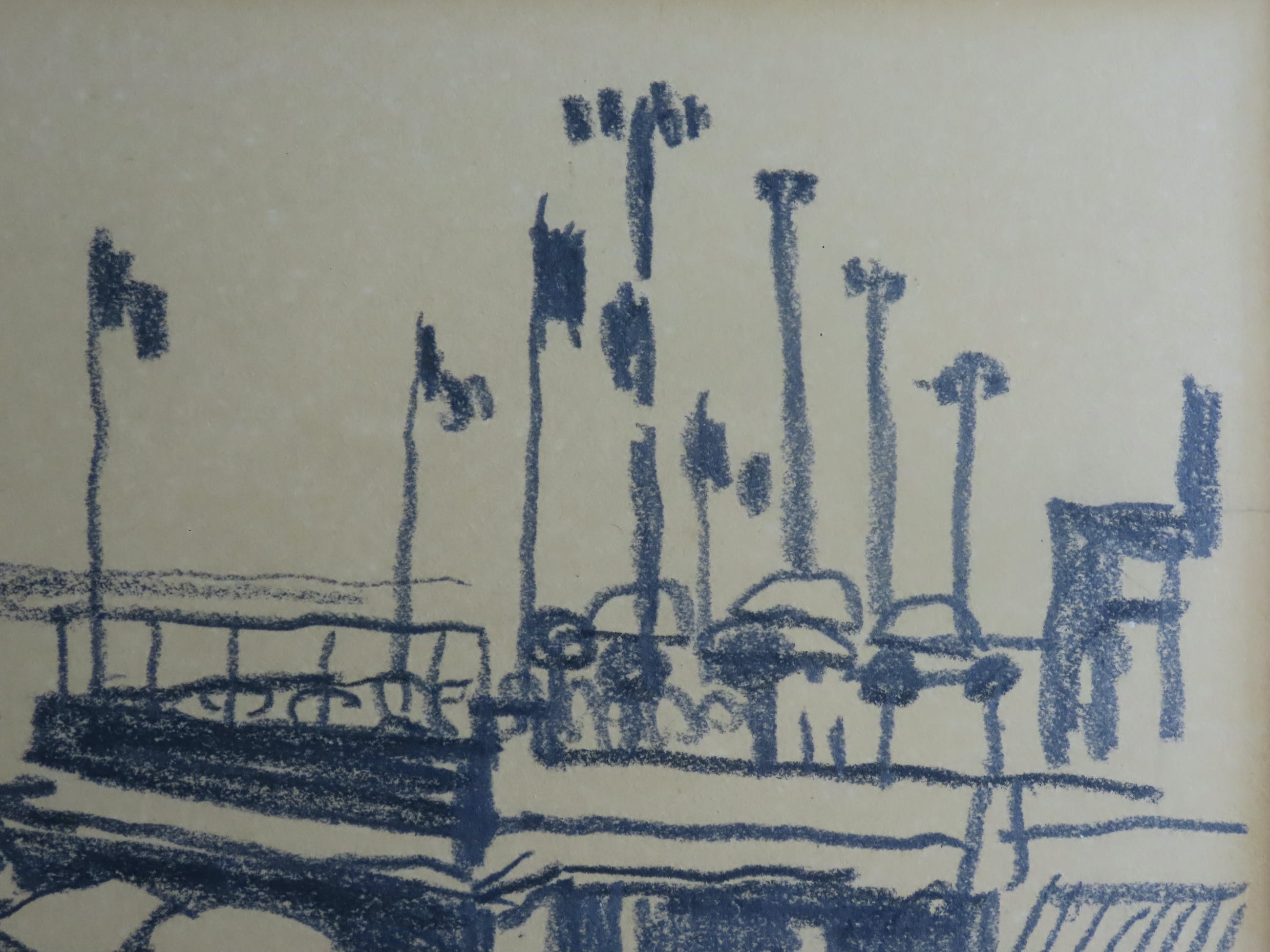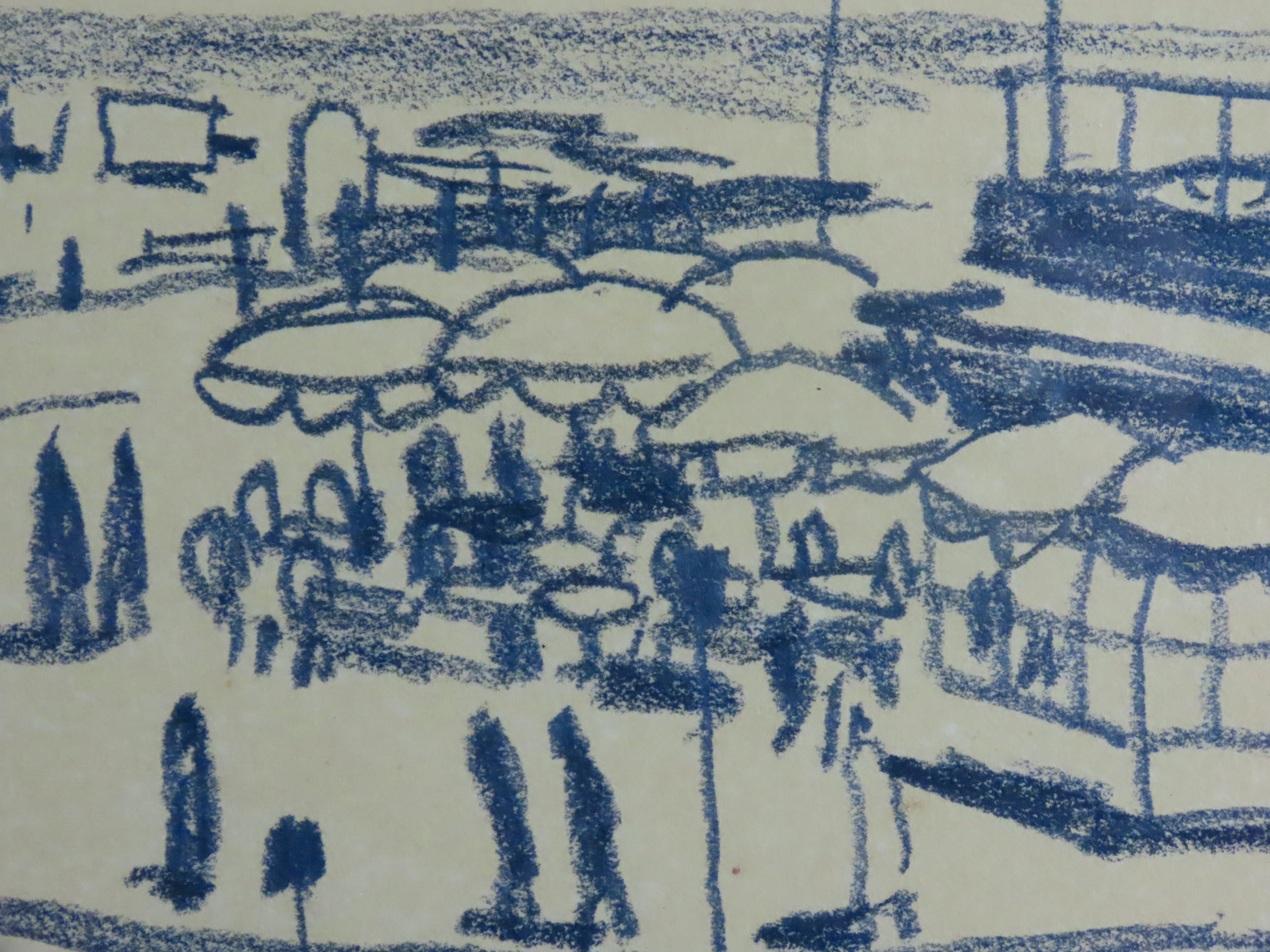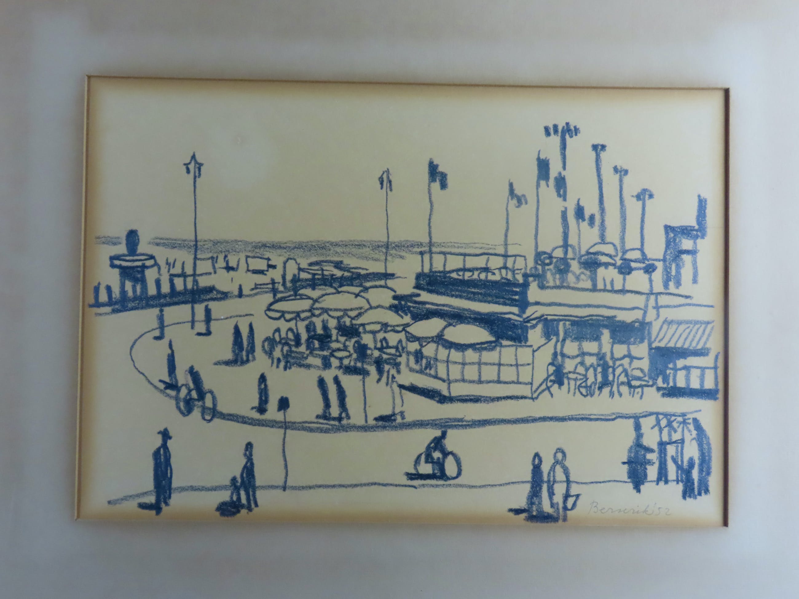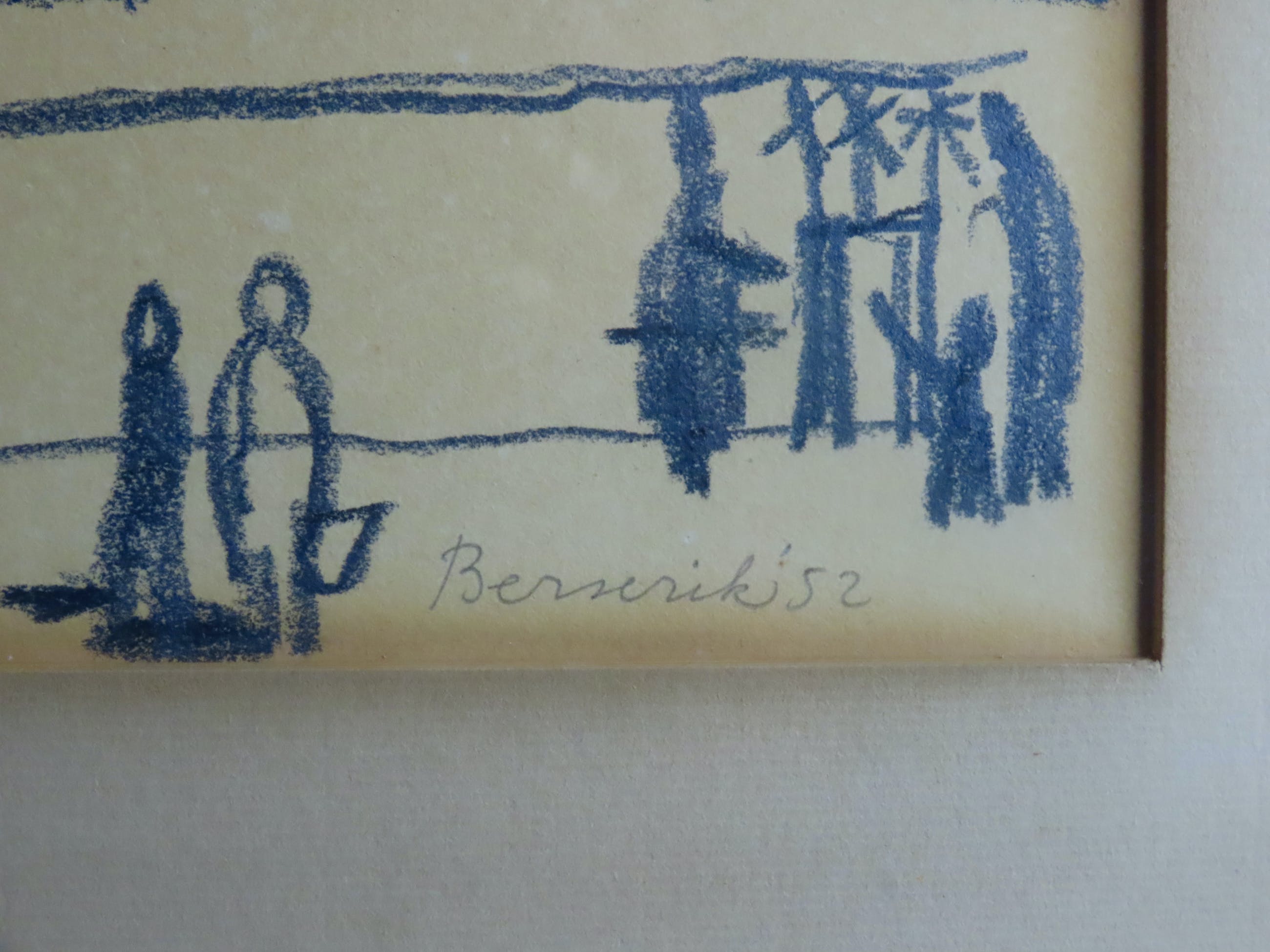 Duidelijk gesigneerde studie uit 1952 voor de serie over het Scheveningse stand door Herman Berserik - Nederlands kunstschilder en graficus. Zijn werk is aangekocht door verschillende toonaangevende musea. Uitzonderlijk werk.
