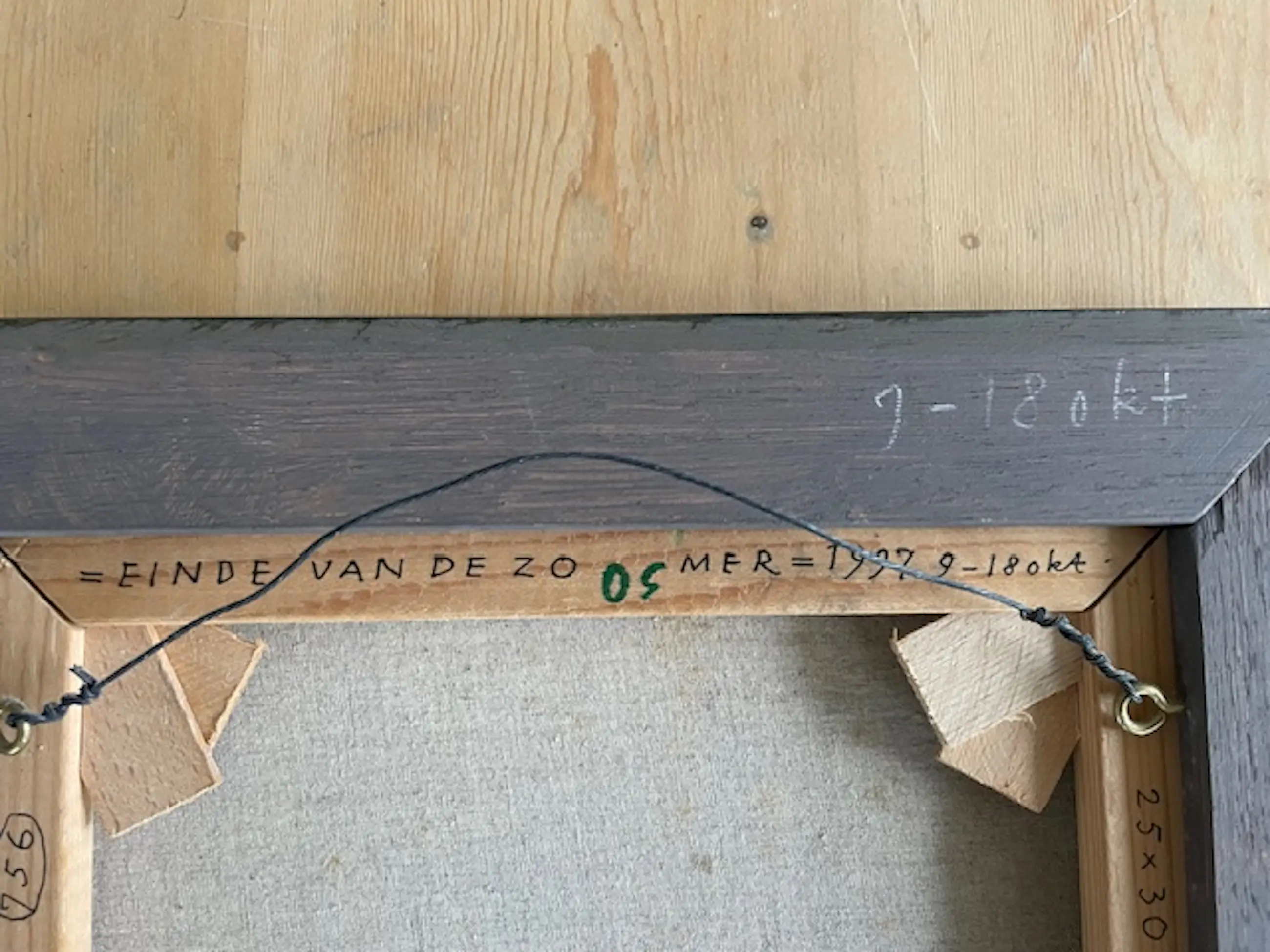 Dit werk is gekocht tijdens een tentoonstelling (?) in Marie Tak van Poortvliet Museum in Domburg (jaar niet bekend) en is waarschijnlijk van de eerste eigenaar. Er zijn geen beschadigingen aanwezig. Ook de lijst is geheel intact.