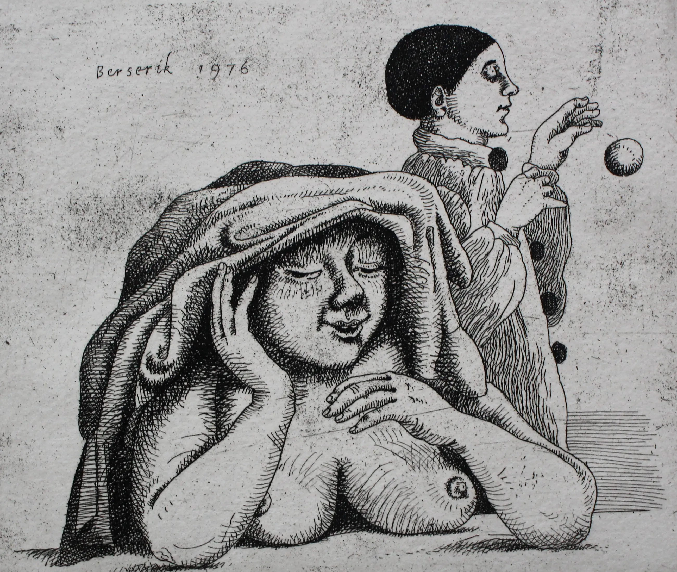 Ets van Herman Berserik. Jaar: 1976. Oplage: 5/30. Afmetingen blad: H28.5 x b32cm. Afmetingen voorstelling: H14.5 x b16.5cm. Het werk is midden onderaan en links boven aan, gesigneerd door de kunstenaar. De authenticiteit van het aangeboden werk wordt volledig gegarandeerd. Een certificaat van echtheid kan, op aanvraag, worden gemaild.