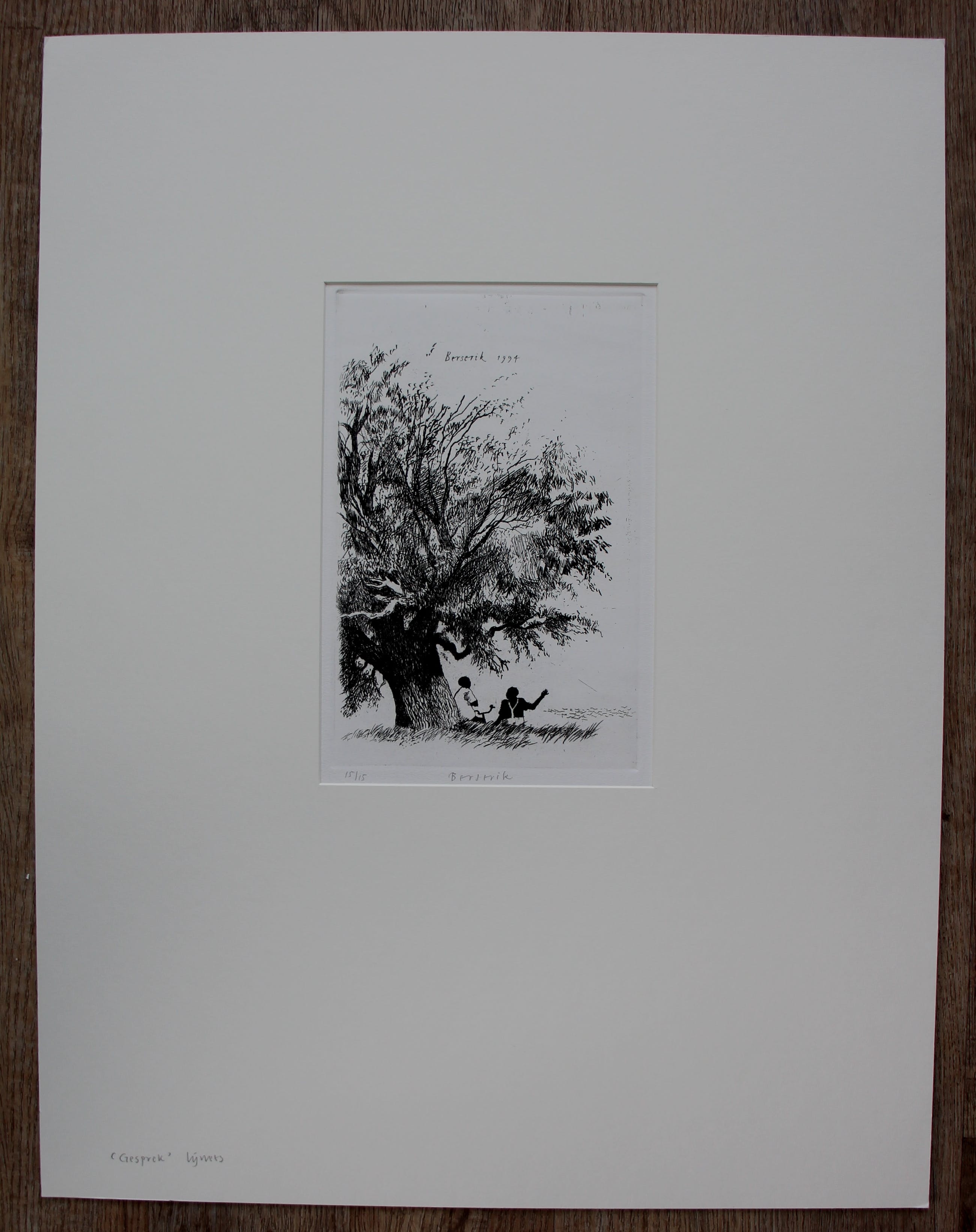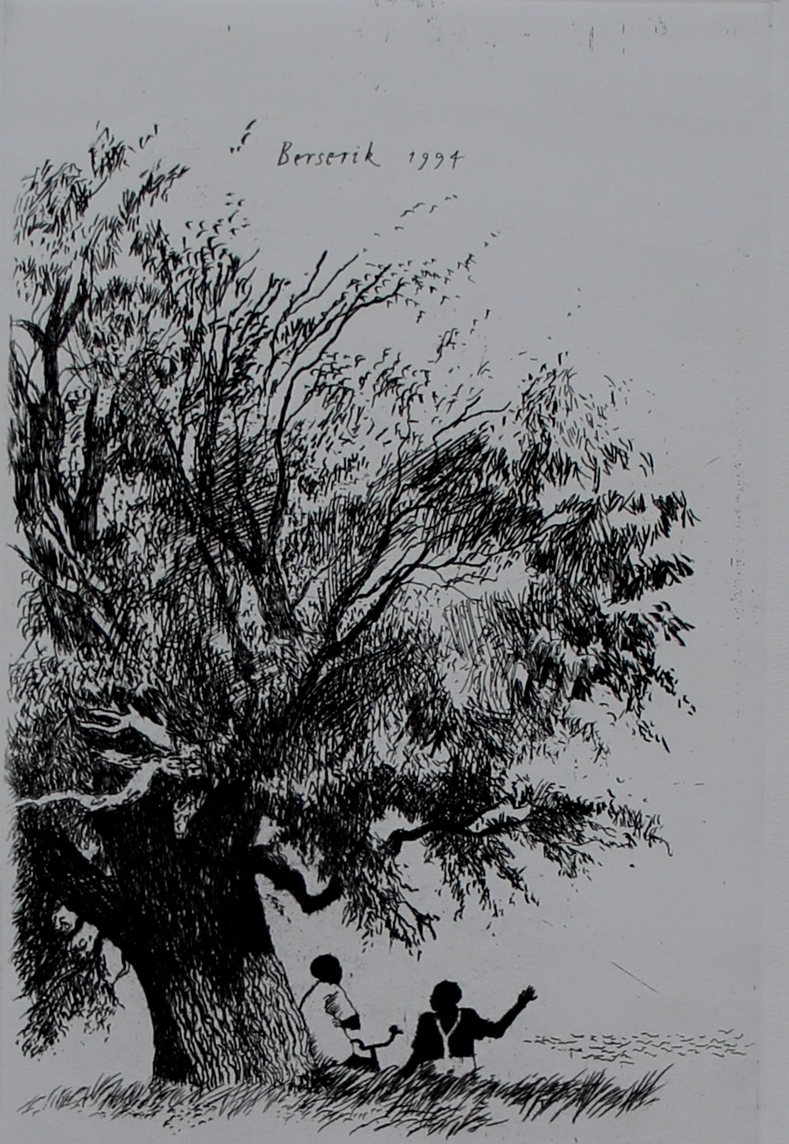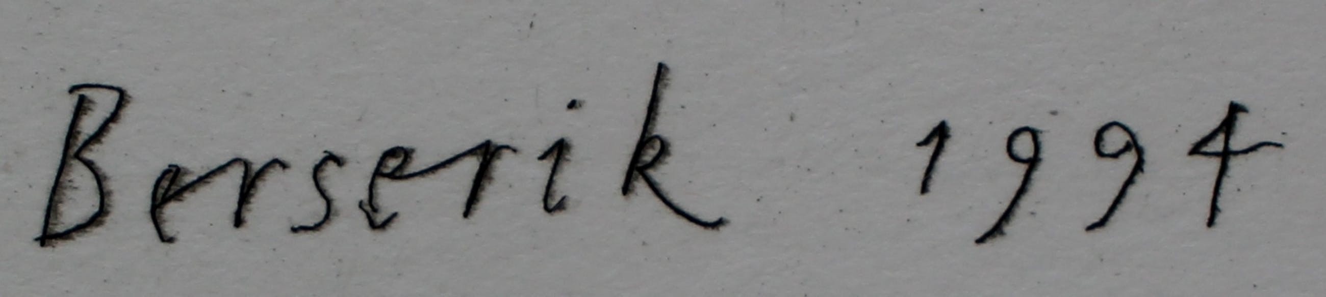 Ets van Herman Berserik. Titel: 'Gesprek'. Jaar: 1994. Oplage: 15/15. Afmetingen incl passe-partout: H65 x b50cm. Afmetingen voorstelling: H25.5 x b16.5cm. Het werk is, midden onderaan, gesigneerd door de kunstenaar. De authenticiteit van de aangeboden werken wordt volledig gegarandeerd. Een certificaat van echtheid kan, op aanvraag, worden gemaild.