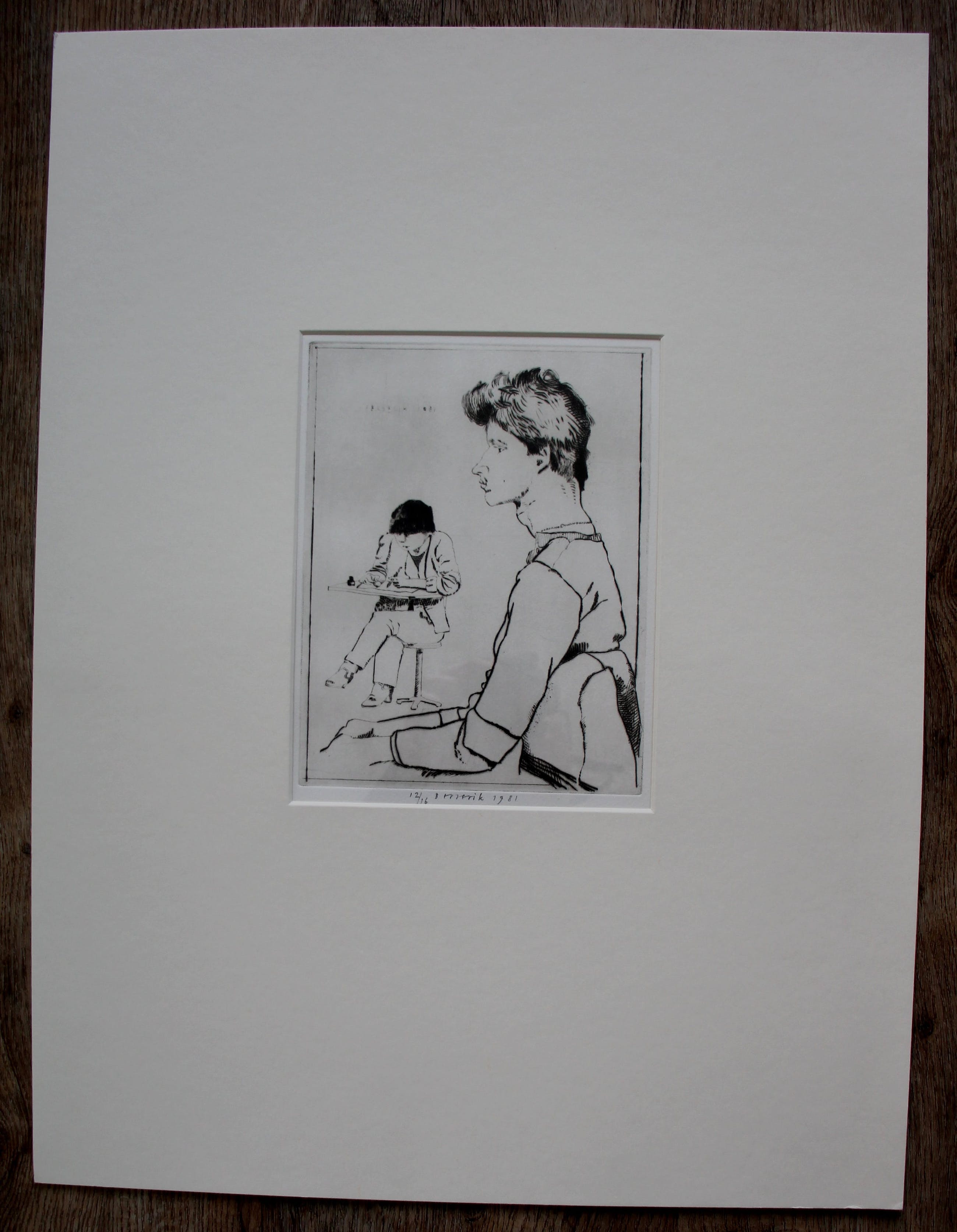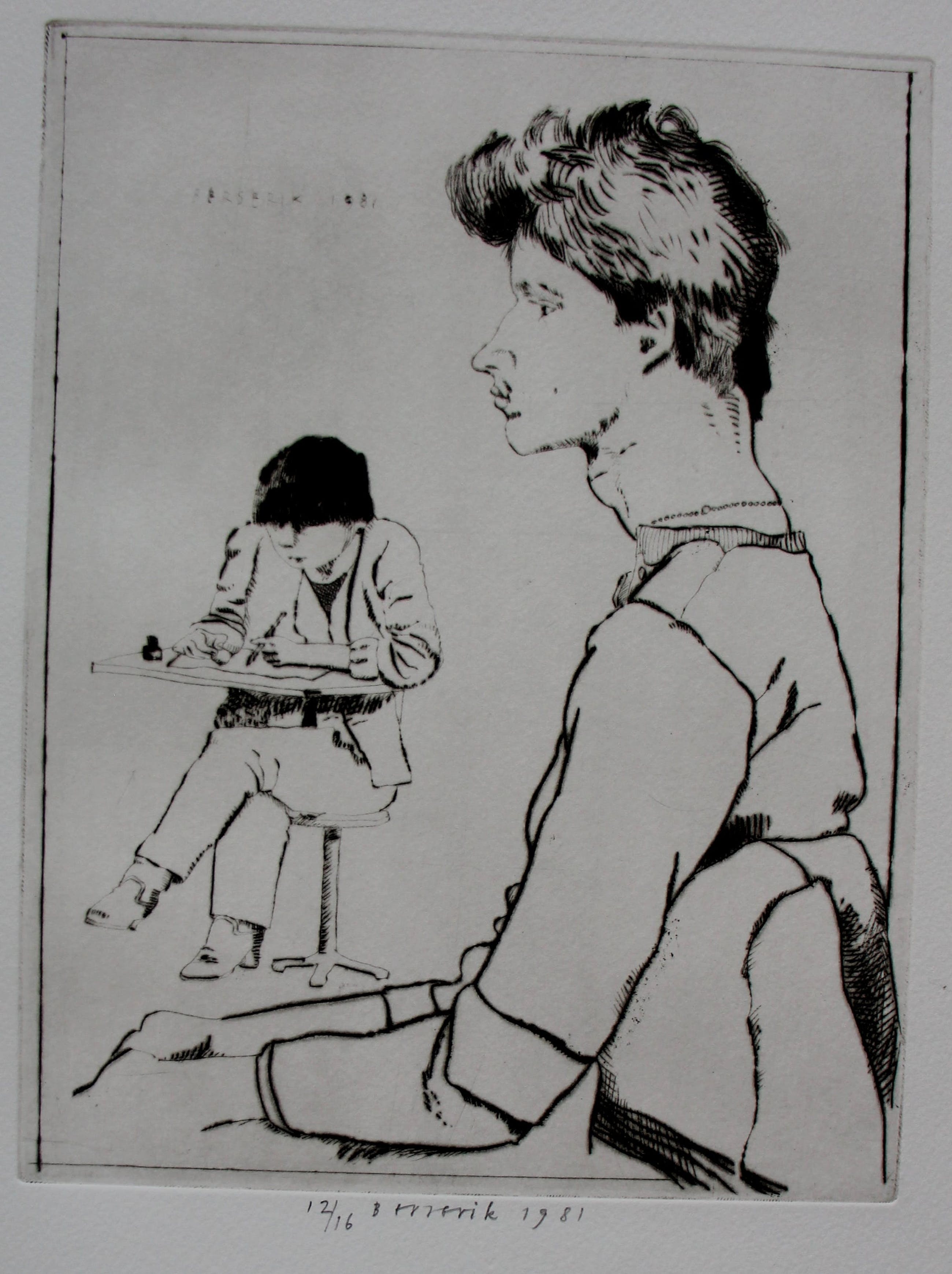 Ets(droge naald) van Herman Berserik. Titel: Leerlingen in de klas. Jaar: 1981. Oplage: 12/16, eigen druk. Afmetingen incl passe-partout: H64.5 x b48.5cm. Afmetingen voorstelling: H23.5 x b16.5cm. Het werk is, midden onderaan, gesigneerd door de kunstenaar. De authenticiteit van de aangeboden werken wordt volledig gegarandeerd. Een certificaat van echtheid kan, op aanvraag, worden gemaild.