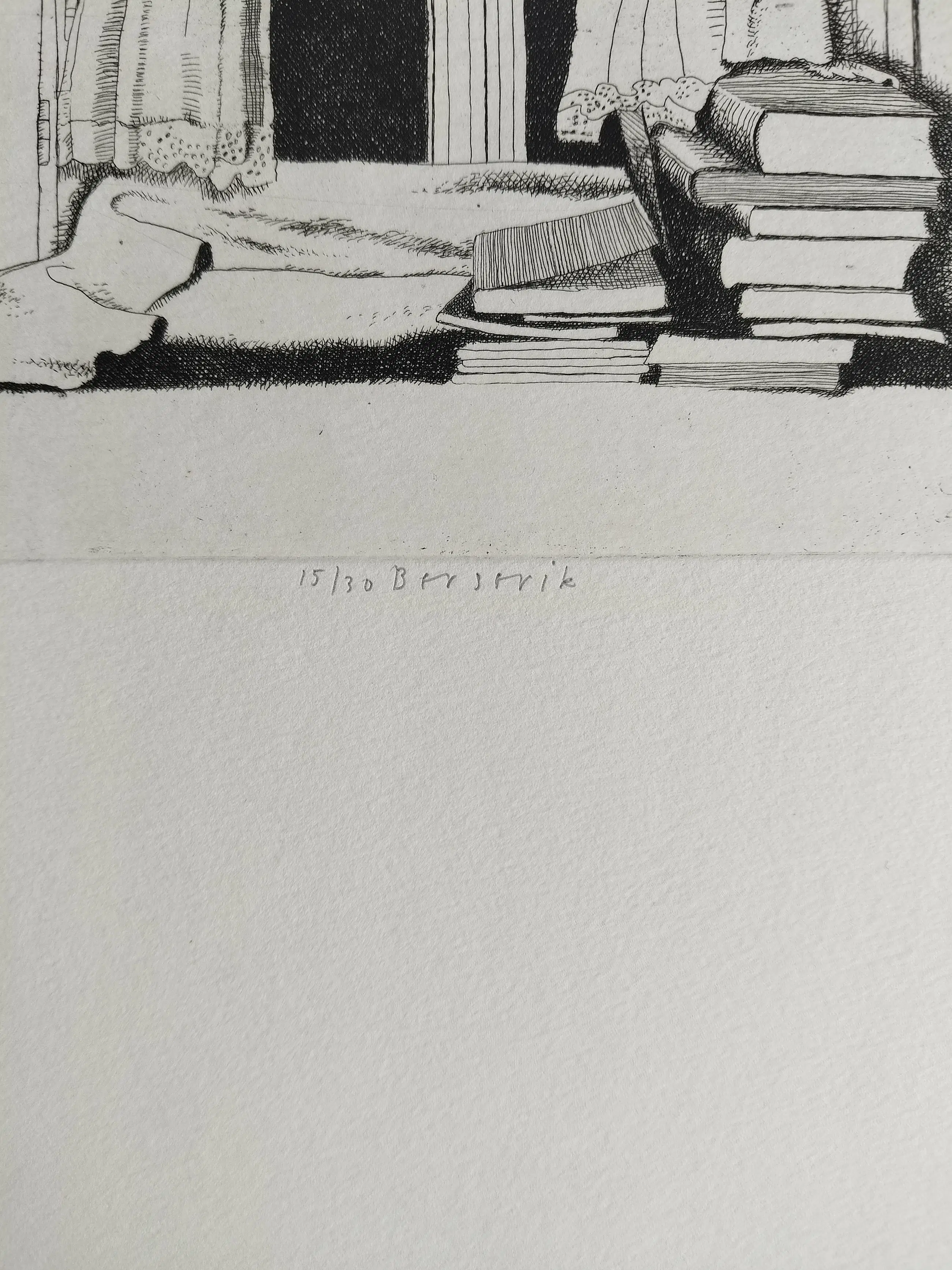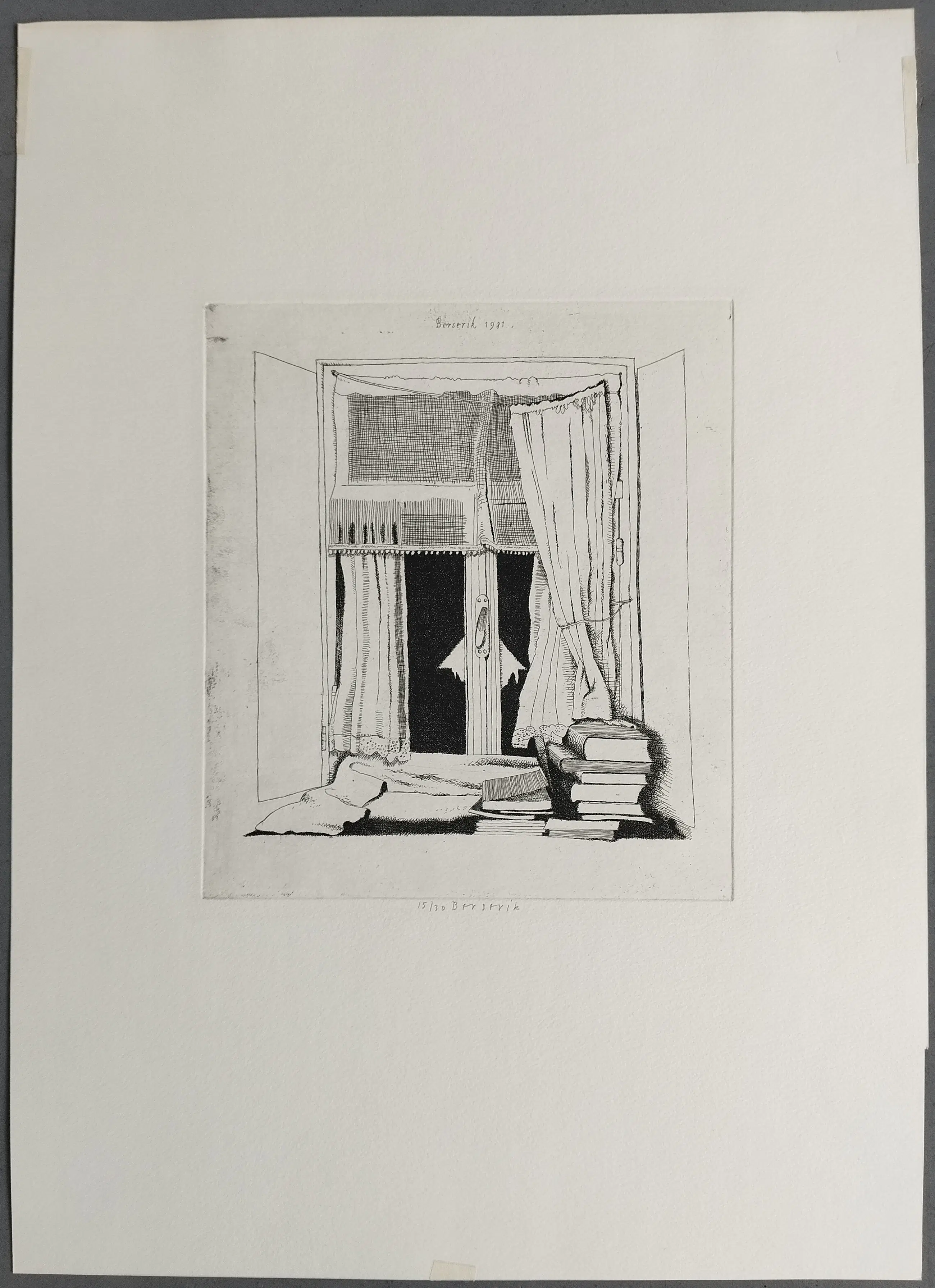 Gesigneerde ets van de kunstenaar Herman Berserik (1921-2002) uit 1981, gedrukt in een oplage van 30 stuks. In het midden is het werk gesigneerd in potlood en genummerd met 15/30. Afmeting werk 21 x 20 cm (hxb) Afmeting papier 54.5 x 39 cm (hxb) Er zitten 3 stukjes tape op het papier geplakt en aan de bovenrand van het papier is een lichte verkleuring en een klein streepje zichtbaar. Rechtsonder is het papier een stukje uitgeknipt of gesneden. Verder is de ets in prima staat.