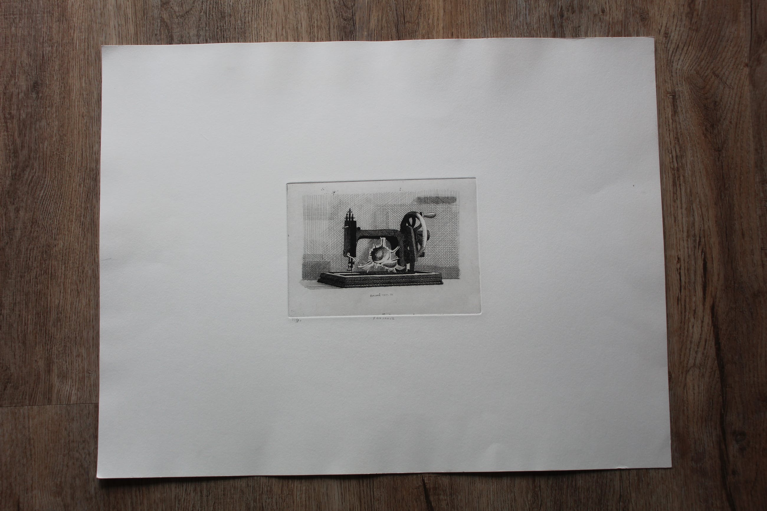 Grote ets van Herman Berserik uit 1971/1972. Voorstelling van een oude naaimachine. Oplage: 37/80. Afmetingen blad: H50 x b65cm. Afmetingen voorstelling: H16 x b22cm. Het werk is middenonder, met potlood gesigneerd door de kunstenaar. De authenticiteit van het aangeboden werk wordt volledig gegarandeerd.