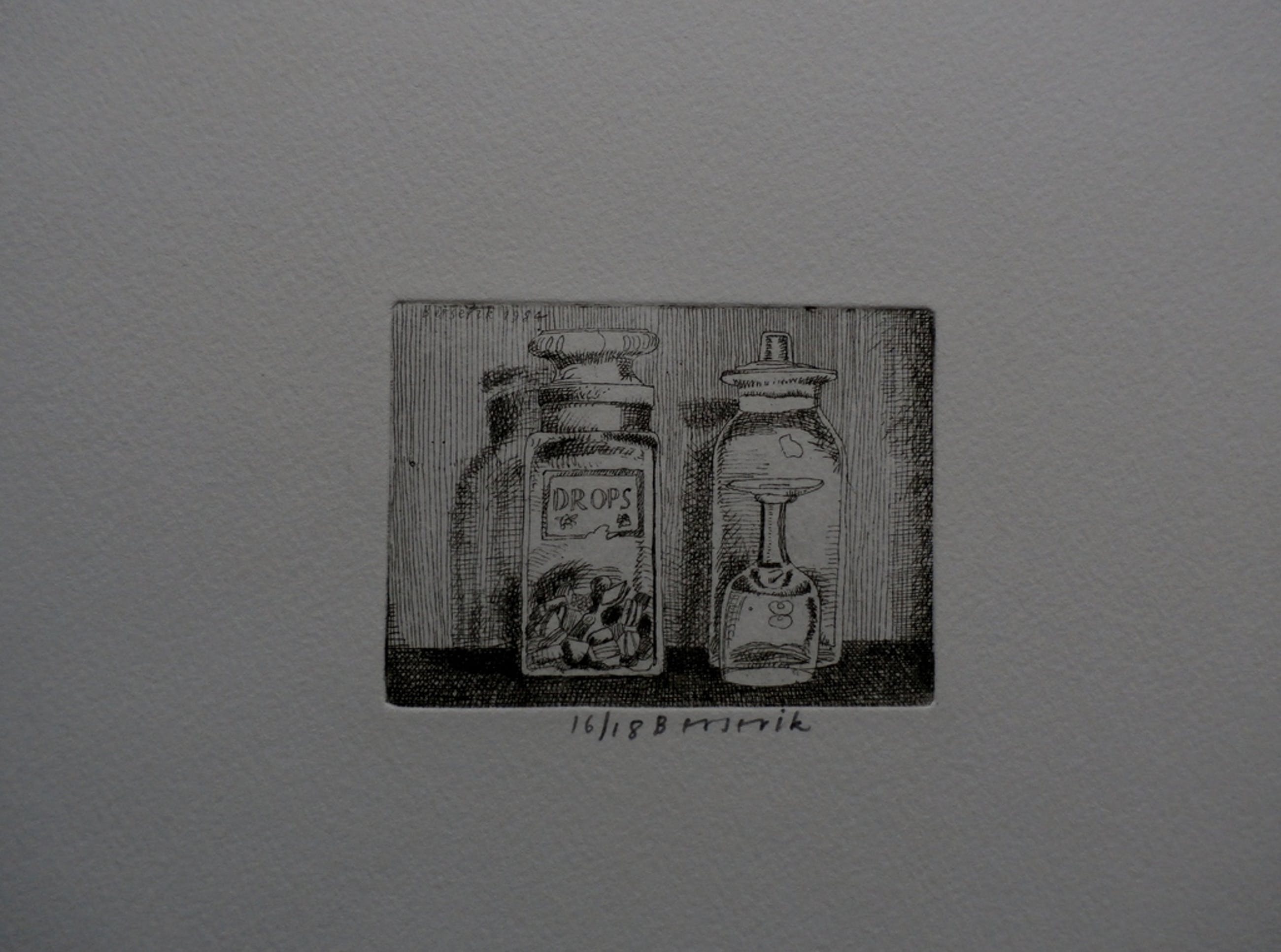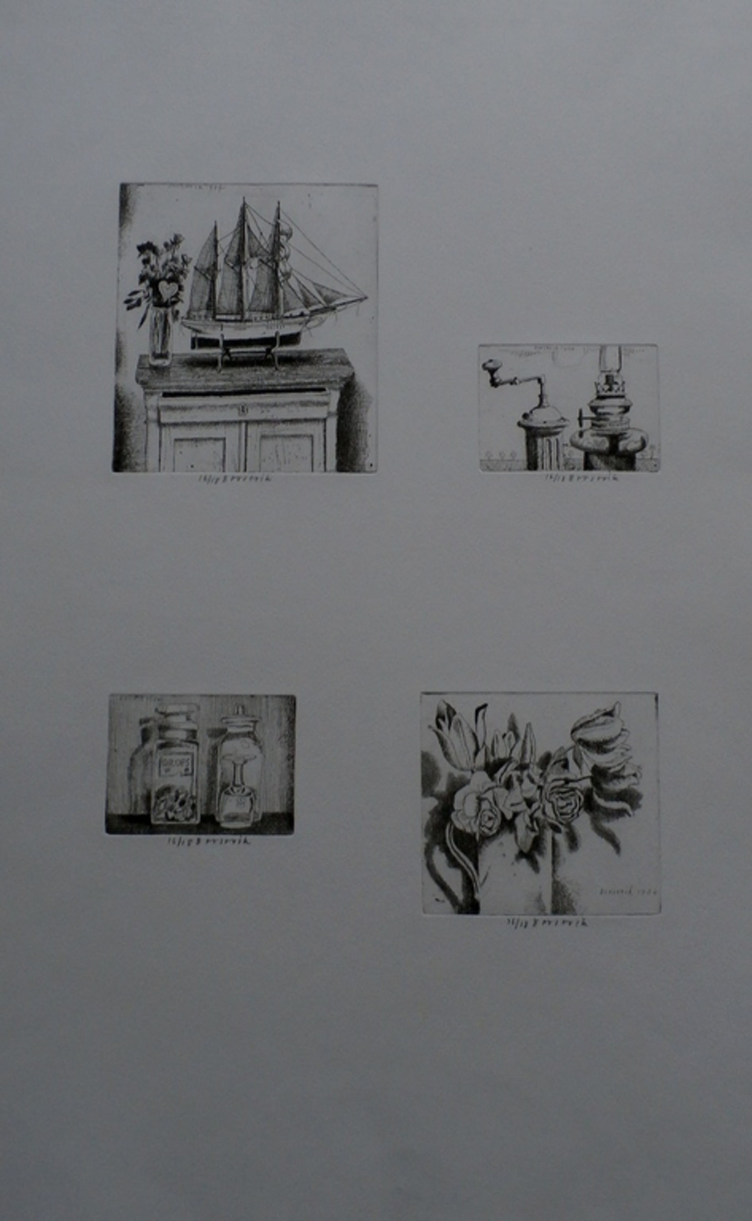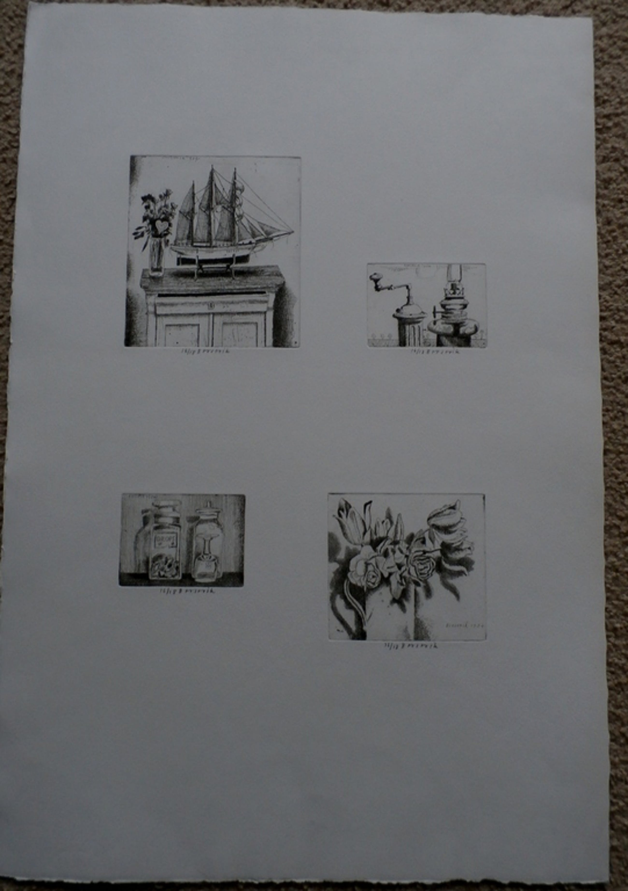 Afmetingen etsen: ets 1: 13,5 x 12 cm, ets 2 en 3: 6 x 8,3 cm, ets 4: 9,7 x 10,5 cm