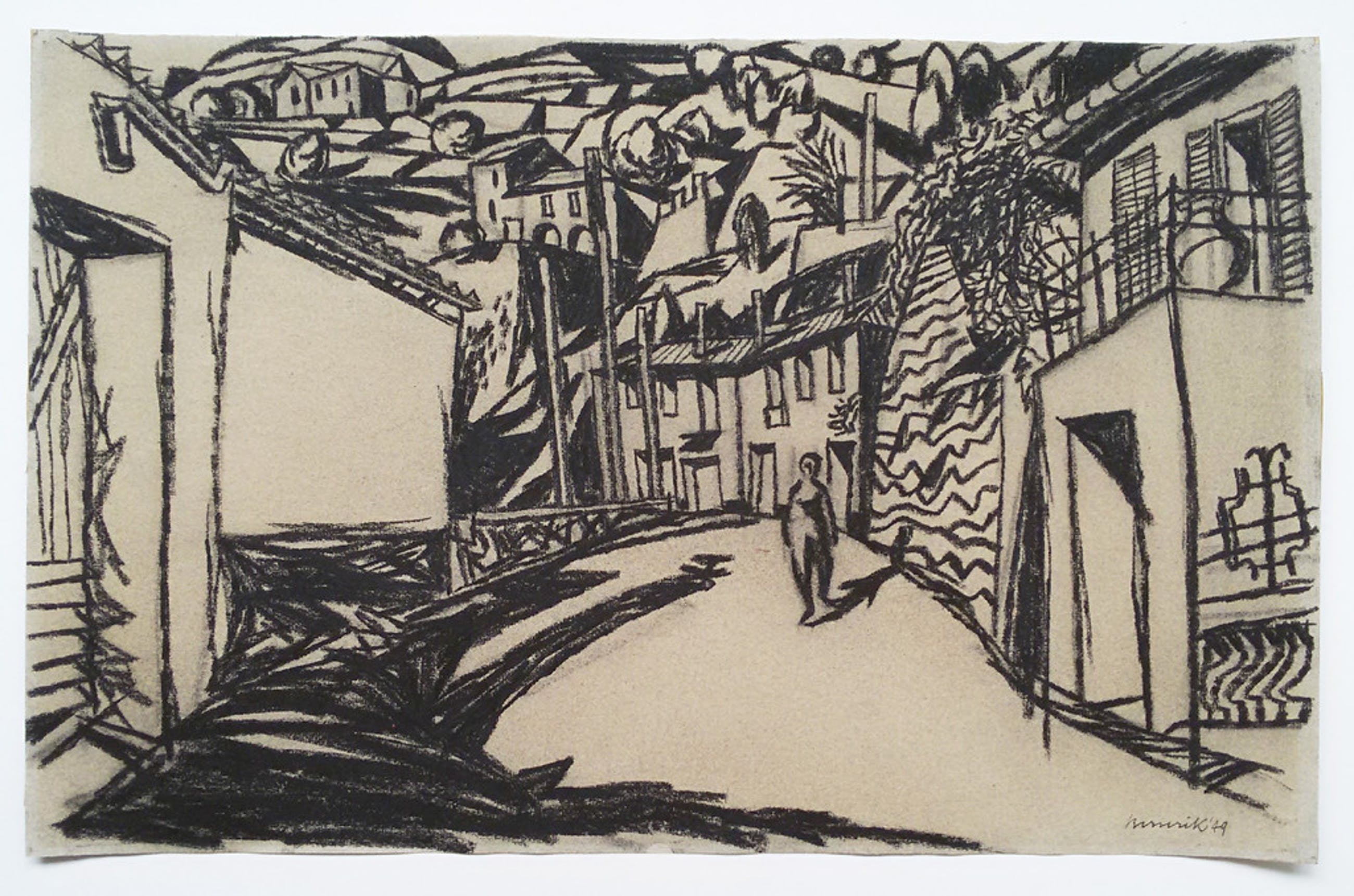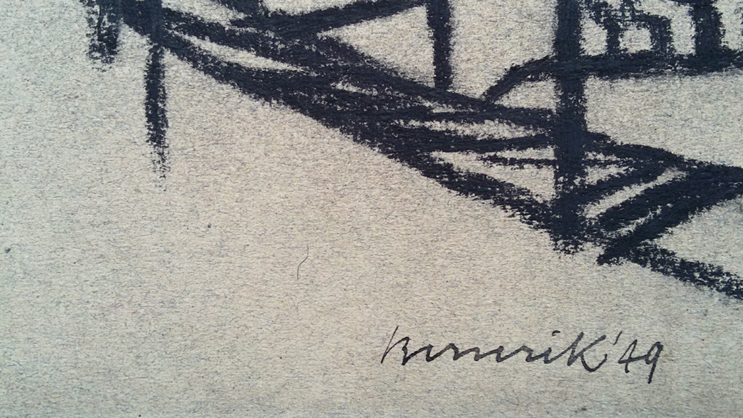 Vroeg werk van Herman Berserik. Tekening met zwart krijt op lichtbruin papier. Met pen gesigneerd en gedateerd (‘49) rechtsonder. In goede conditie.