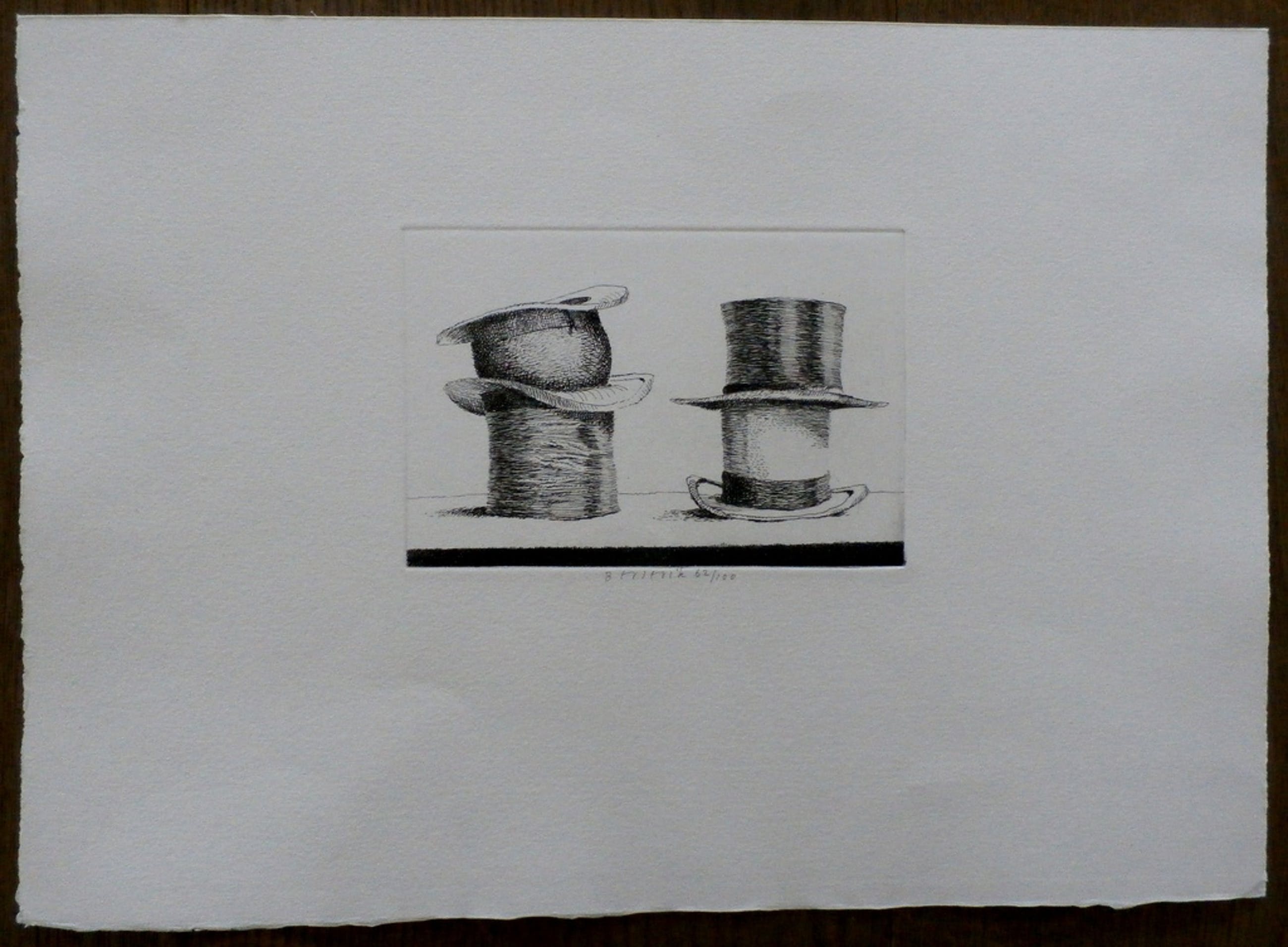 Ets van Herman Berserik: 4 bolhoeden. Nummer: 62/100. Afmetingen blad: H28 x b38,5 cm. Afmetingen ets: H10,5 x b15,5 cm. De authenciteit van het, aangeboden, werk wordt voor 100% gegarandeerd. Een certificaat van echtheid kan , op verzoek, worden meegeleverd