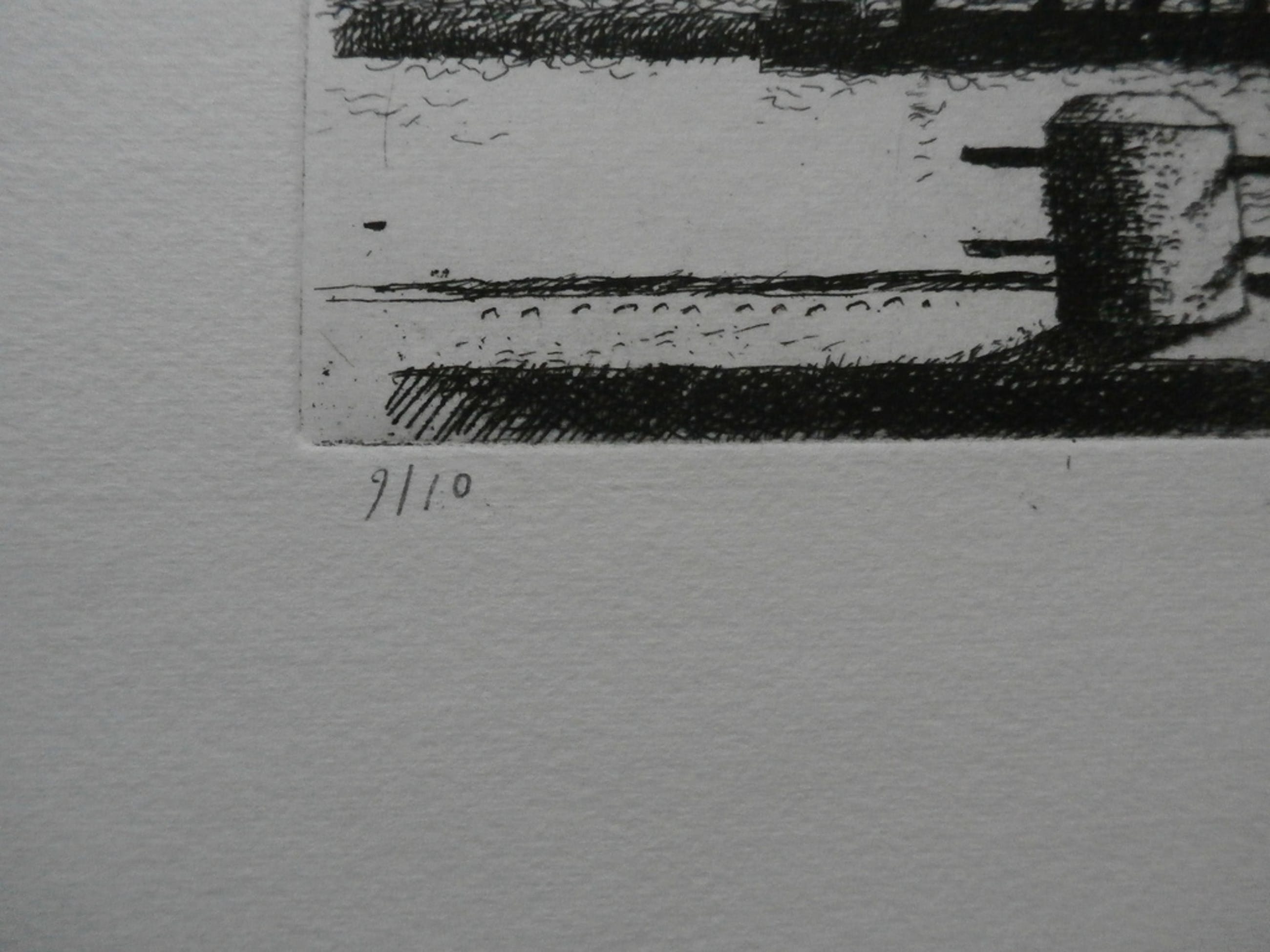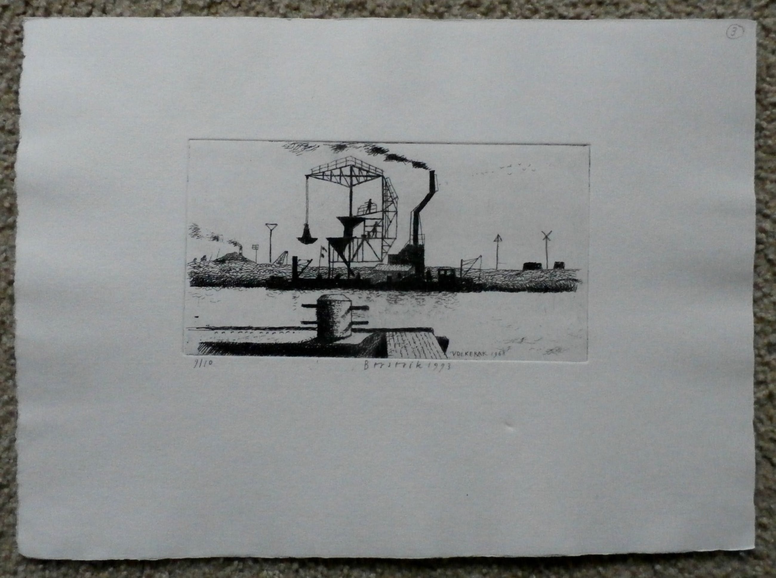 Mooie ets van Herman Berserik. Titel: Volkerak. Nummer: 9/10. De ets is middenonder gesigneerd met potlood door de kunstenaar. Jaar: 1993. In de druk gesigneerd met: Volkerak 1968. Afmetingen blad: h23,8 x b32,3 cm. Afmetingen voorstelling: h9,5 x b18 cm. De ets komt uit de collectie van de kunstenaar. De authenciteit van het, aangeboden, werk wordt voor 100% gegarandeerd. Een certificaat van echtheid kan, op aanvraag, worden meegestuurd.
