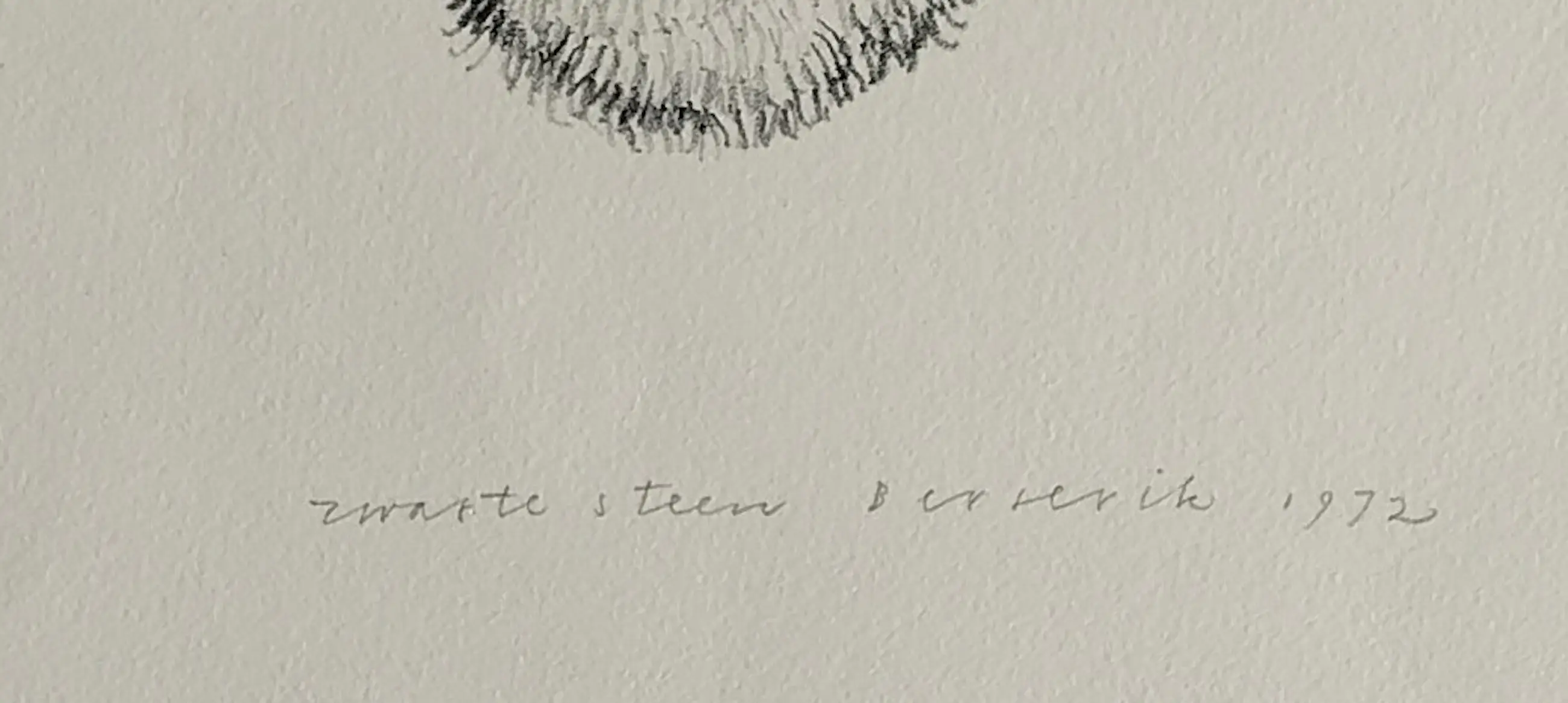 Herman Berserik (1921-2002) - zelfportret - gesigneerde litho. In het midden is het werk gesigneerd in potlood met de tekst zwarte steen en 1972 Het werk is niet genummerd. Papiermaat 52 x 38 cm. (hxb) In het midden aan de linker en rechter kant zitten 2 punaise gaatjes en er zitten wat lichte kreukjes in het papier. Verder is de litho is in prima staat en is nooit ingelijst geweest.