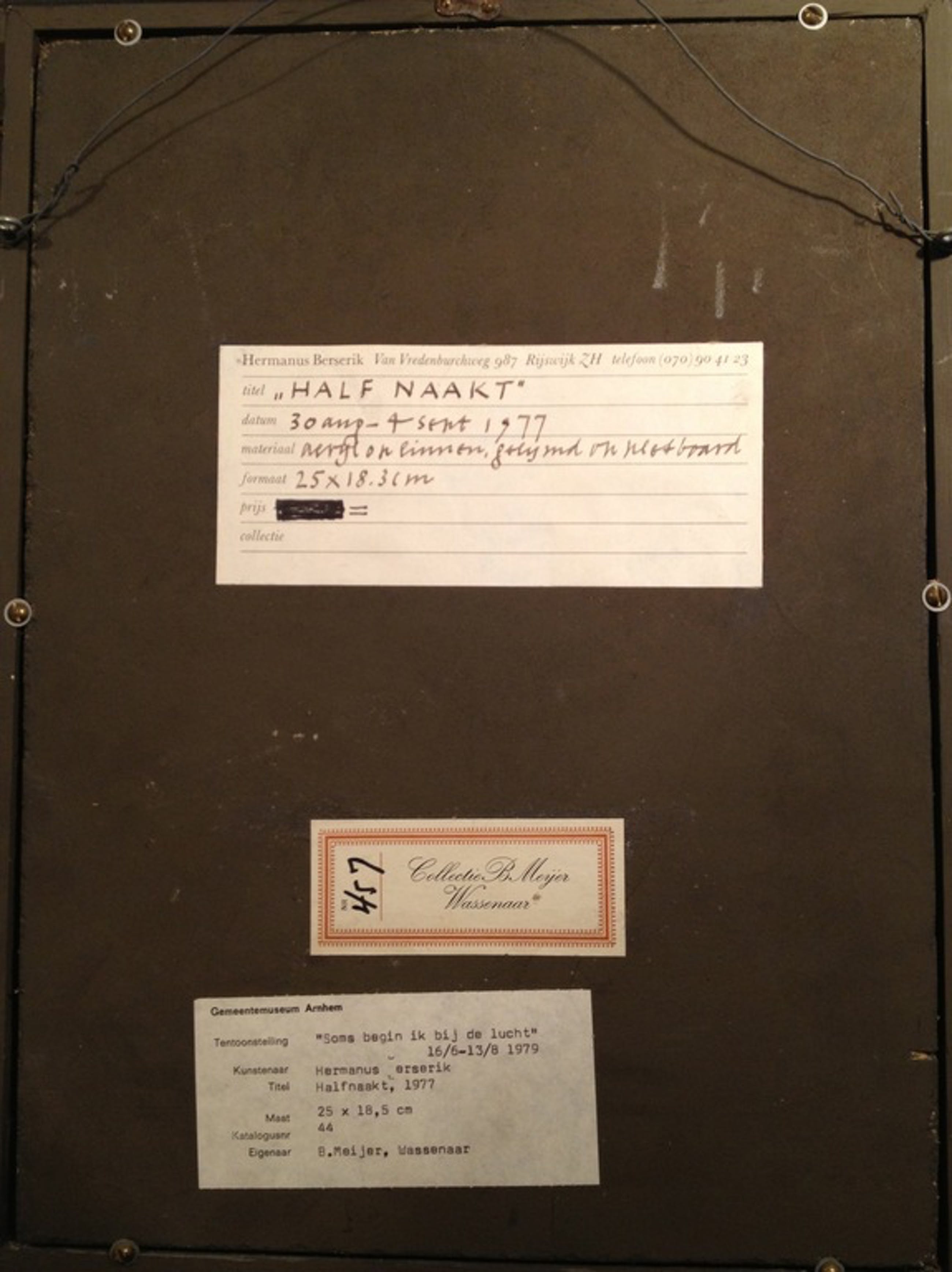 Met papierstikker van het gemeentemuseum Arnhem voor de tentoonstelling "Soms begin ik bij de lucht" 1979, catalogusnummer 44.