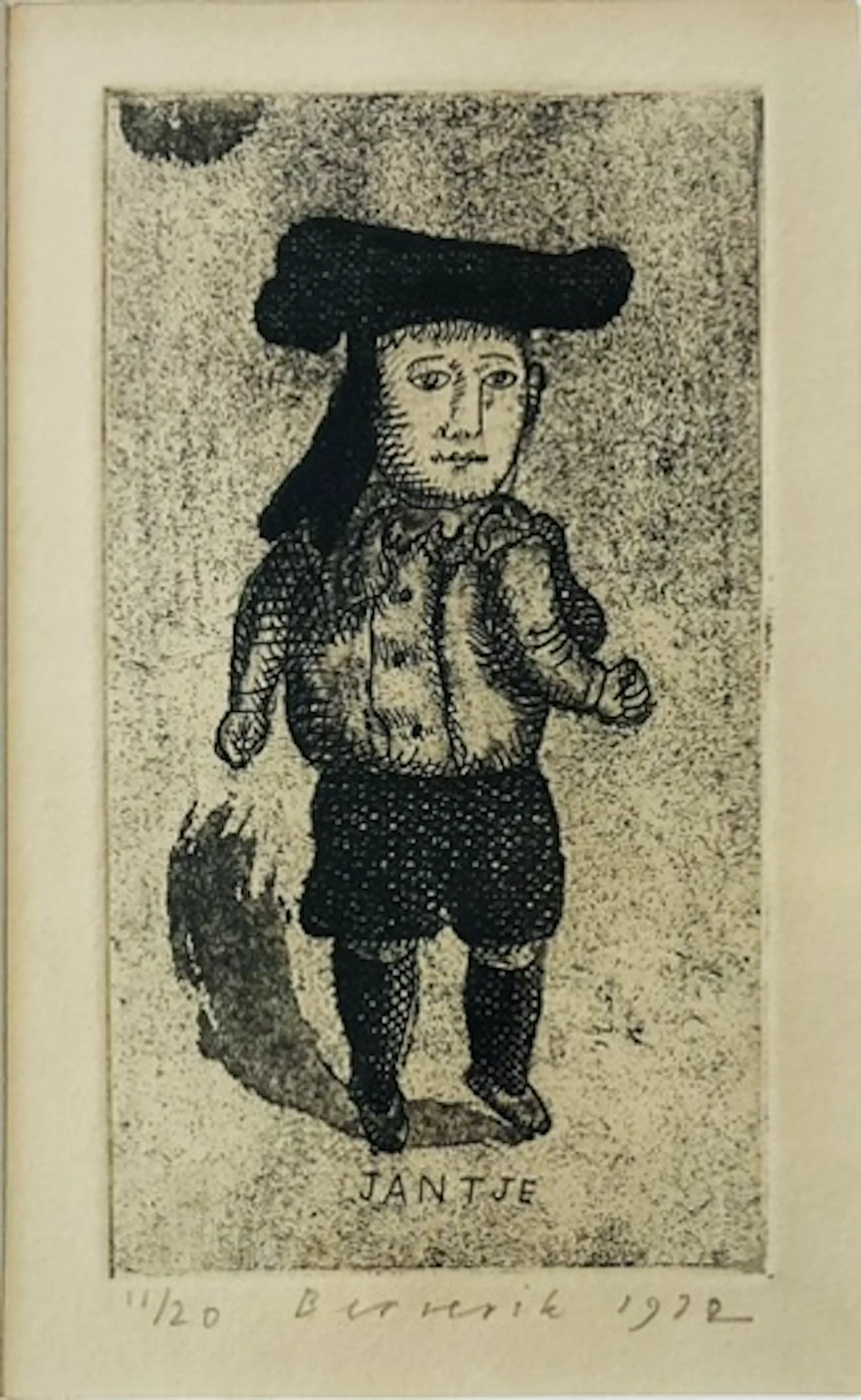 Ets van Herman Berserik (1921-2002) in goede staat. Het werk heeft een aluminium lijst en kan zo worden opgehangen aan de muur.