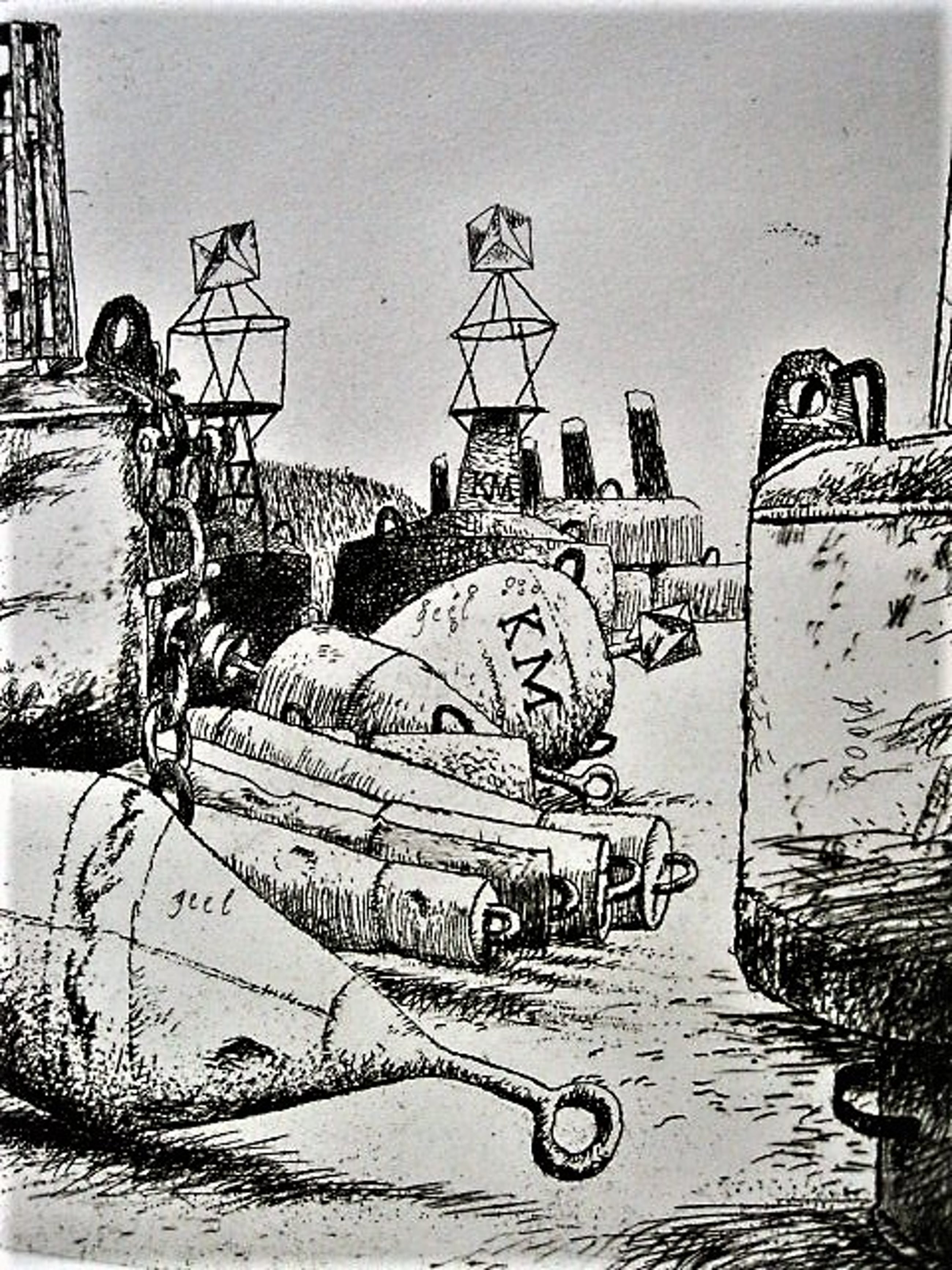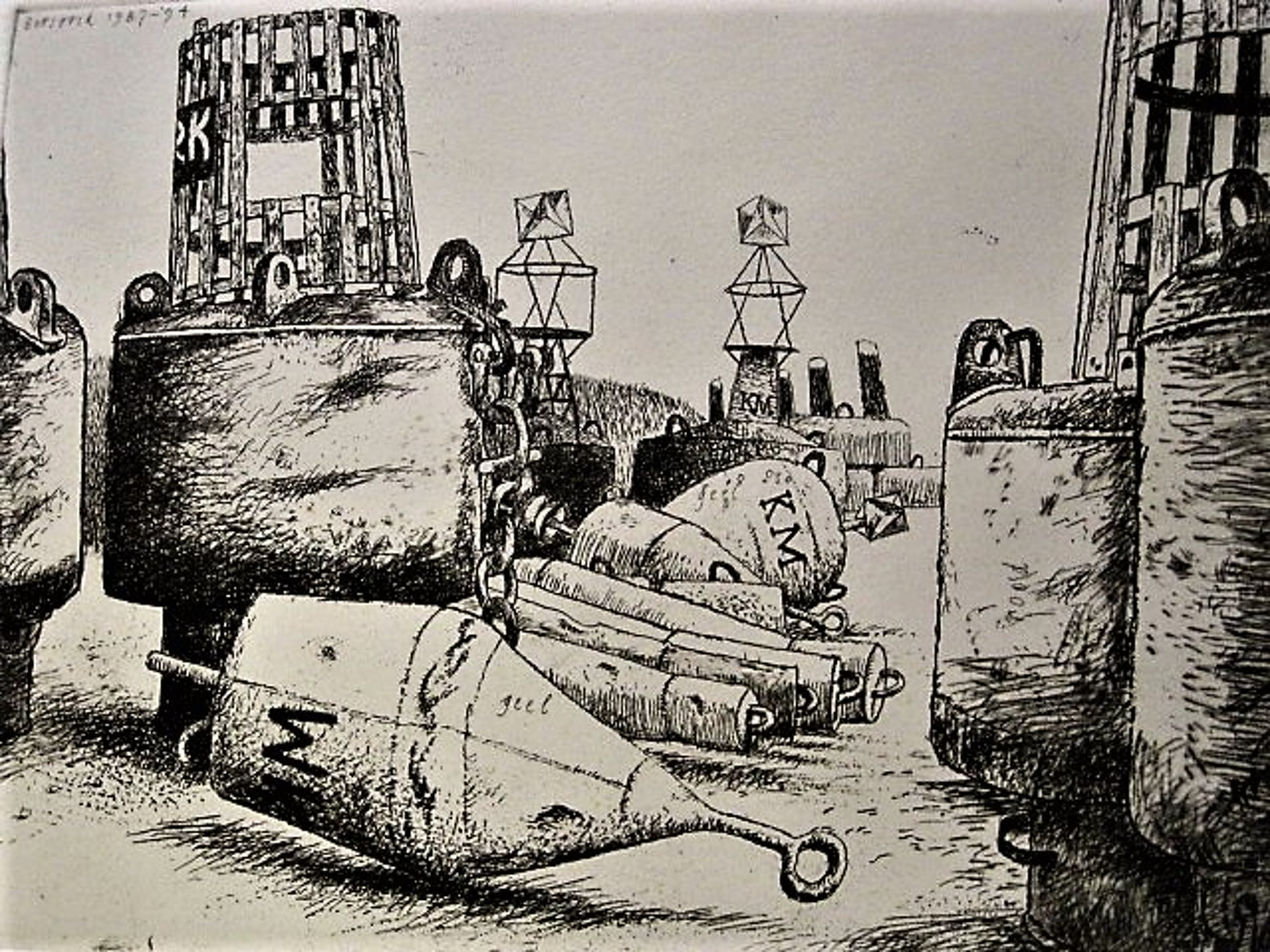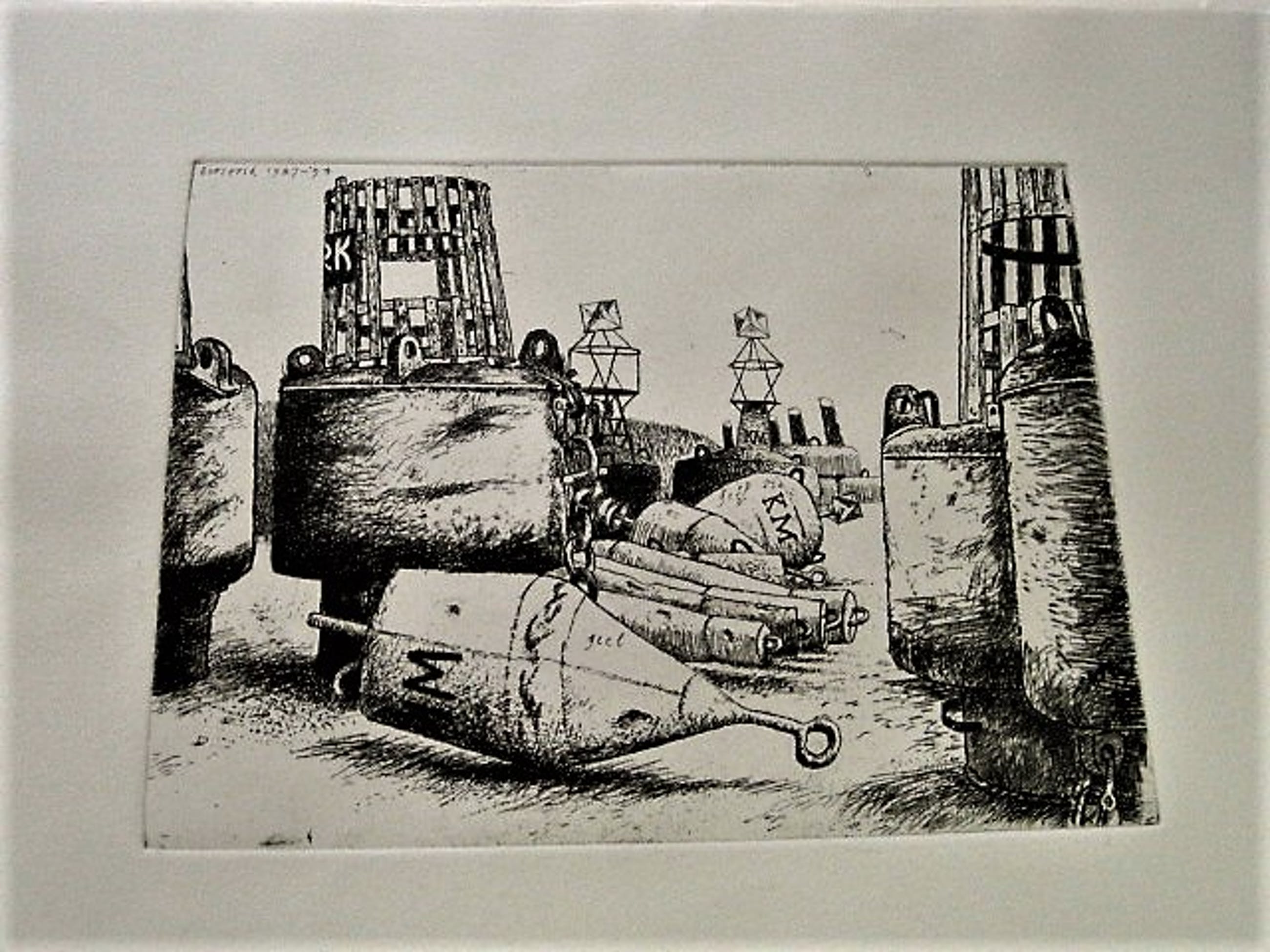 Herman Berserik - Karakteristiek Grafiek - droge naald Ets / proefdruk - "Boeien" passe partout - Verkocht