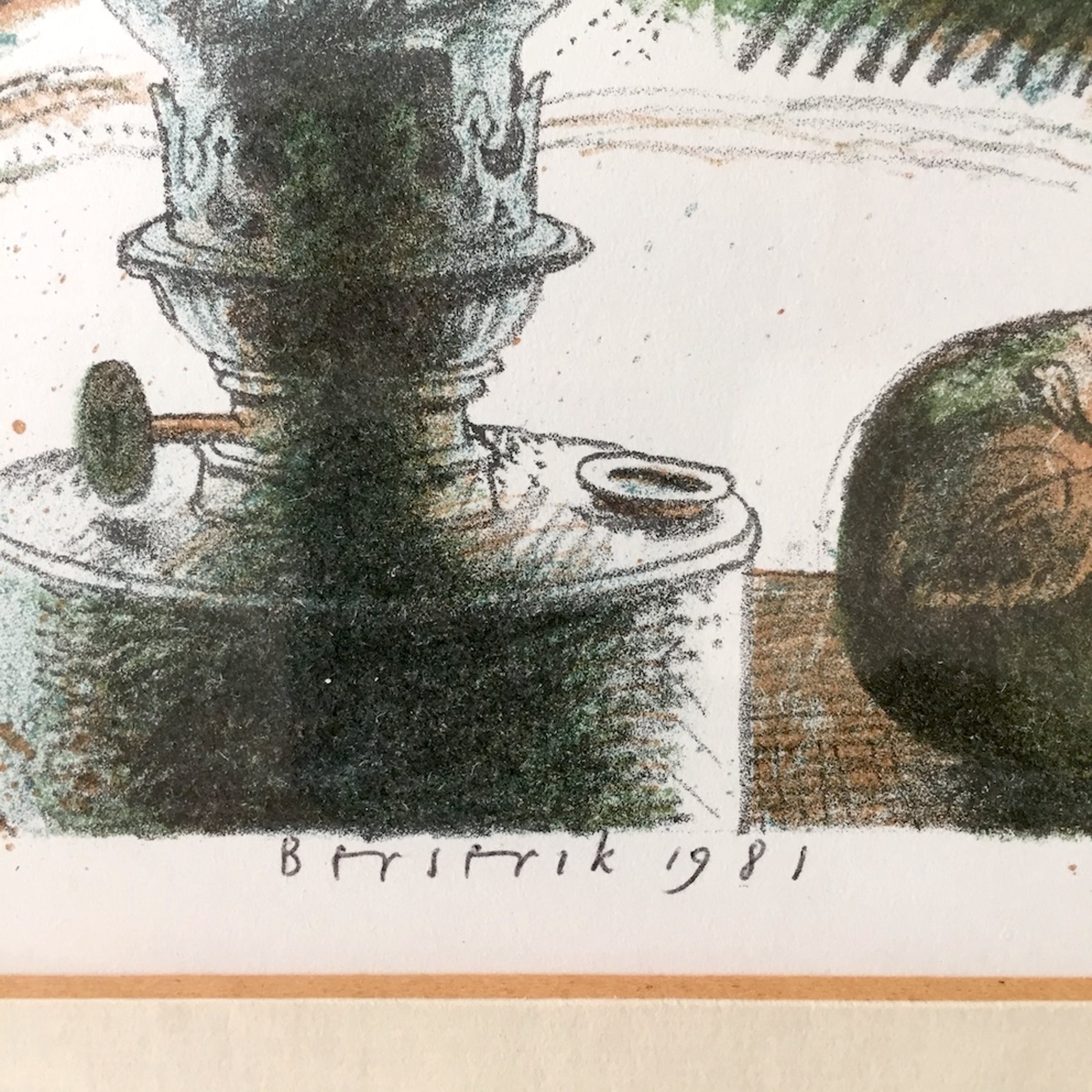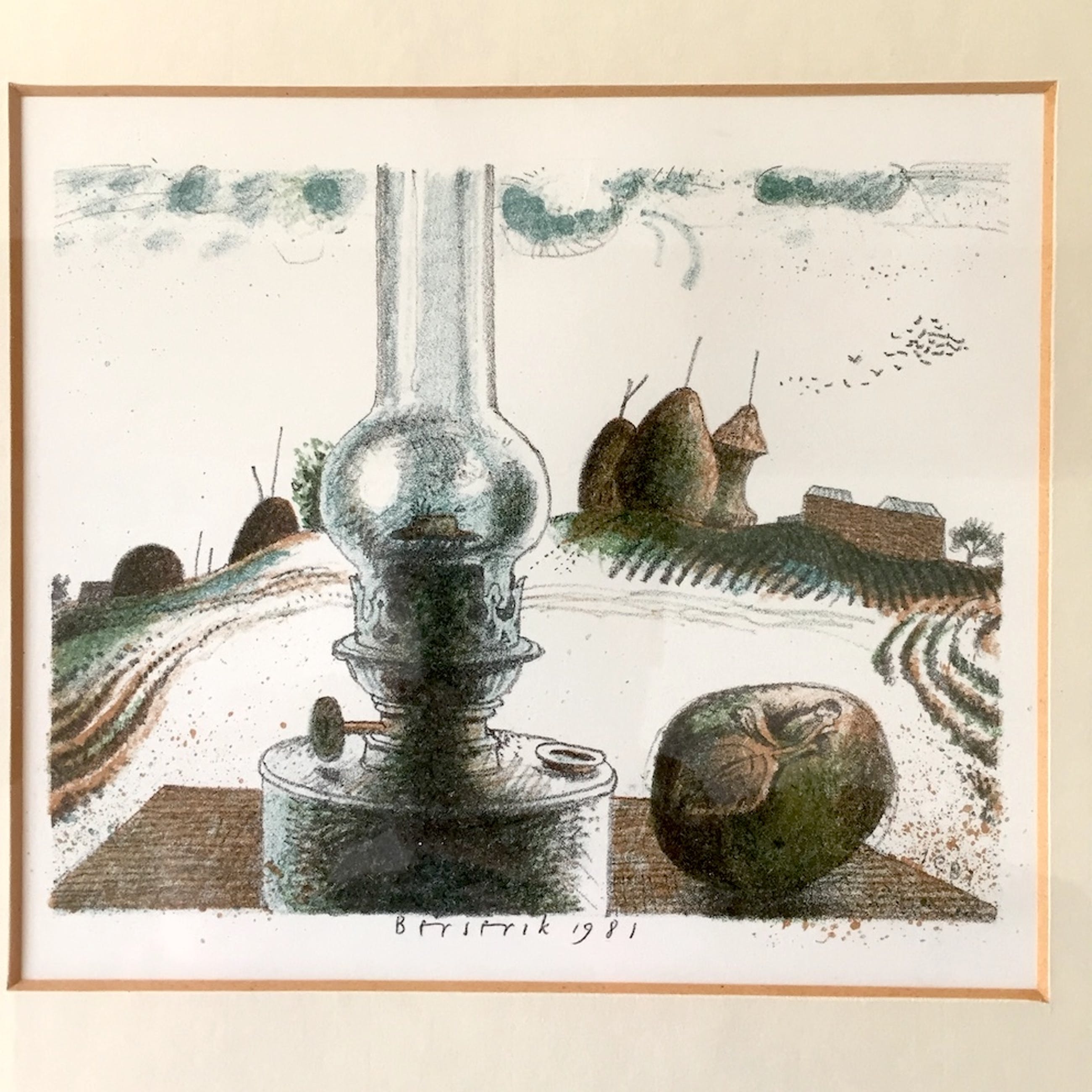 JC 508 Hermanus Berserik Olielamp met fruit Lithografie 1981 16 x 19 cm 34 x 36 cm