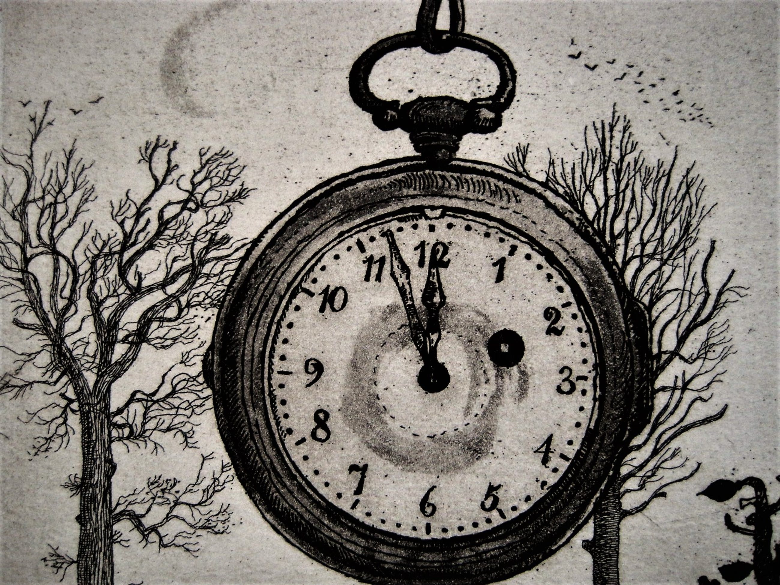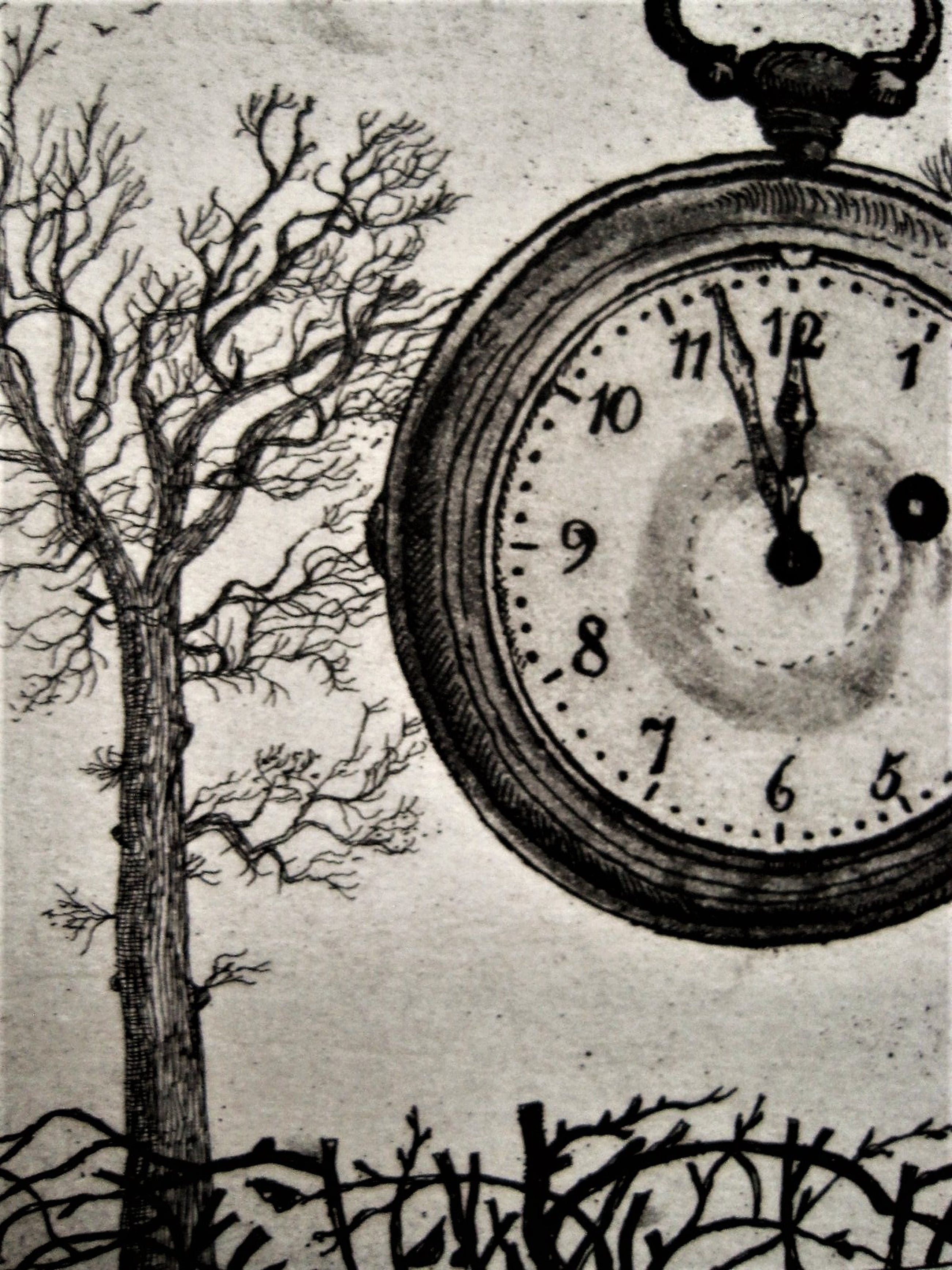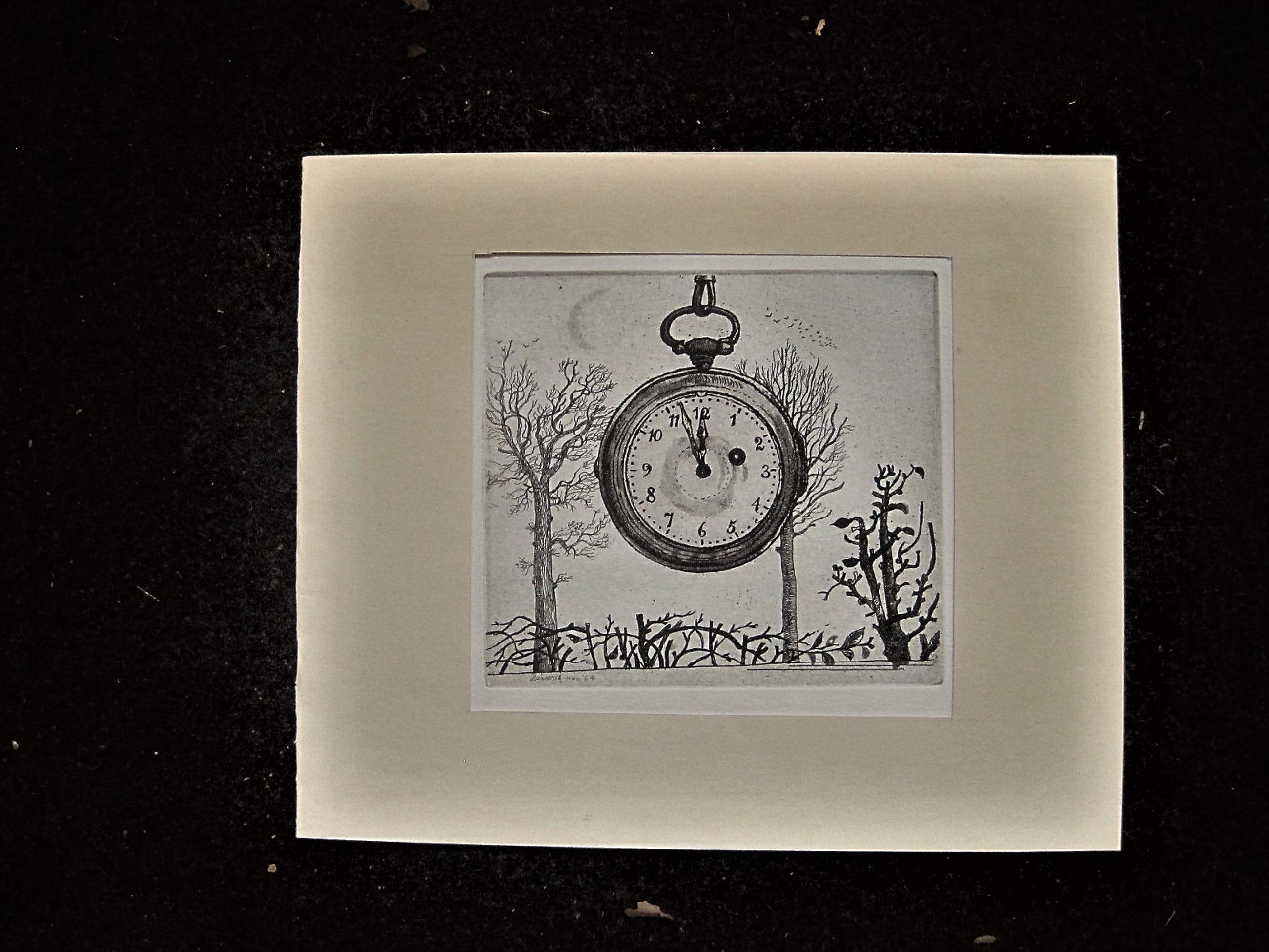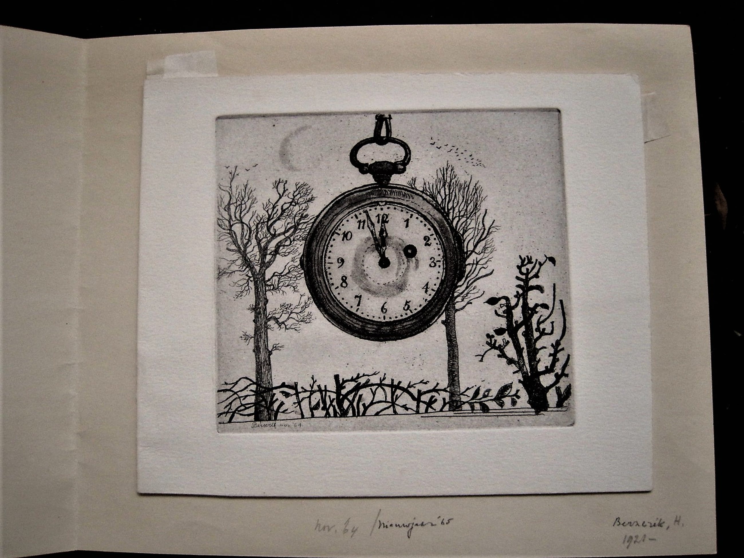 Bijzondere Ets/Nieuwjaarskaart van herman Berserik (1921-2002). Prominent vertegenwoordiger van de "nieuwe Haagse School" en vooral als graficus tot grote artistieke hoogte gekomen.