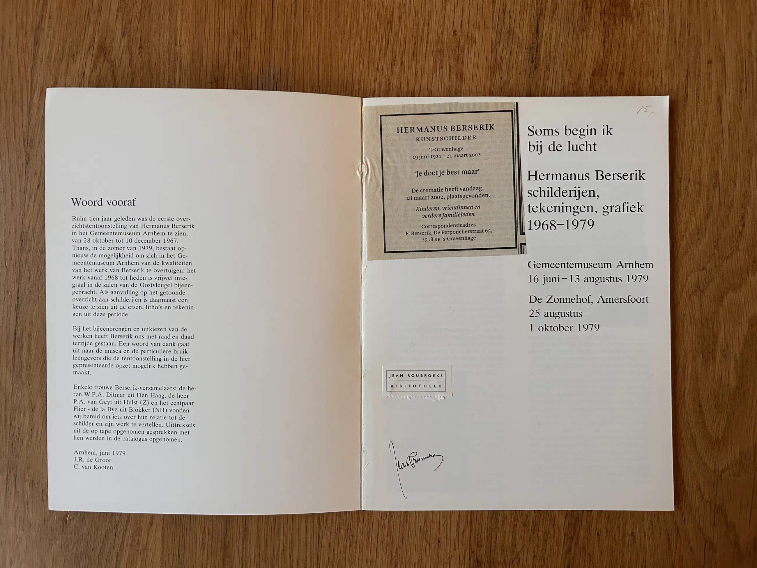 Officiële tentoonstellingscatalogus bij de expositie gewijd aan het werk van Hermanus Berserik, gehouden in het Gemeentemuseum Arnhem (16 juni – 13 augustus 1979) en aansluitend in De Zonnehof, Amersfoort (25 augustus – 1 oktober 1979).