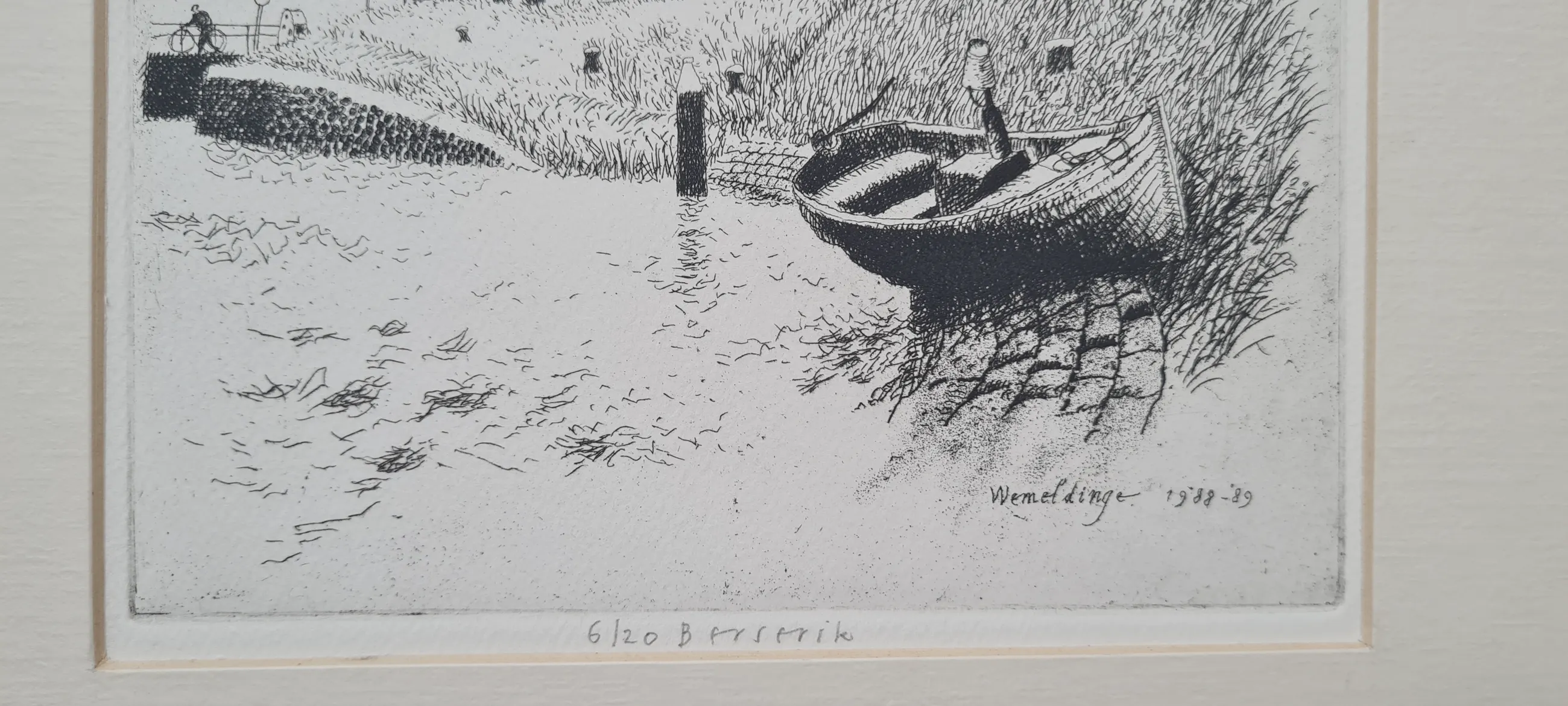 Leuke ets van Hermanus Berserik, handgesigneerd en genummerd en keurig onder passepartout gezet