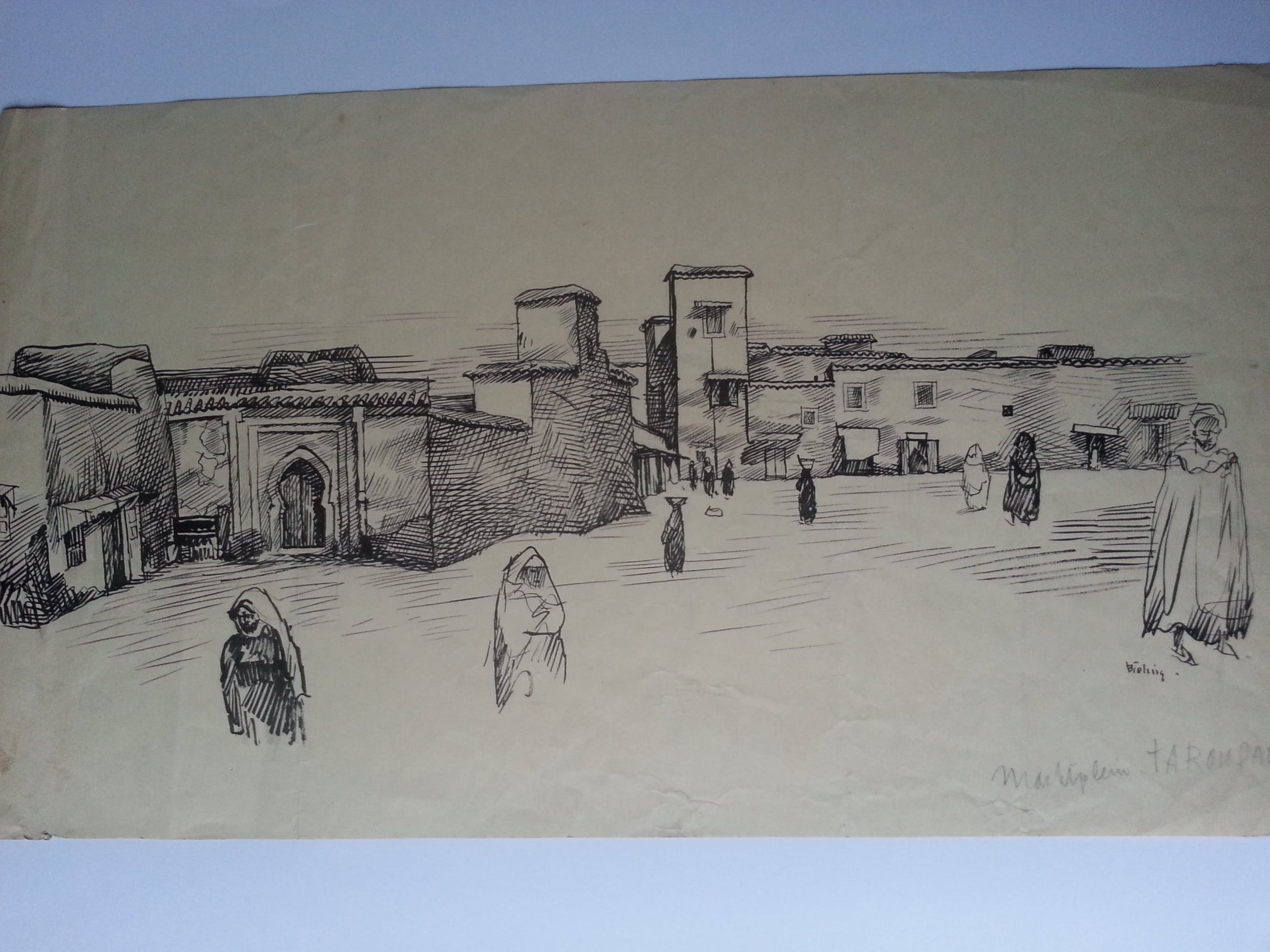 schets nr. 1- Afbeelding van marktplein Taroudant Marokko gesigneerd