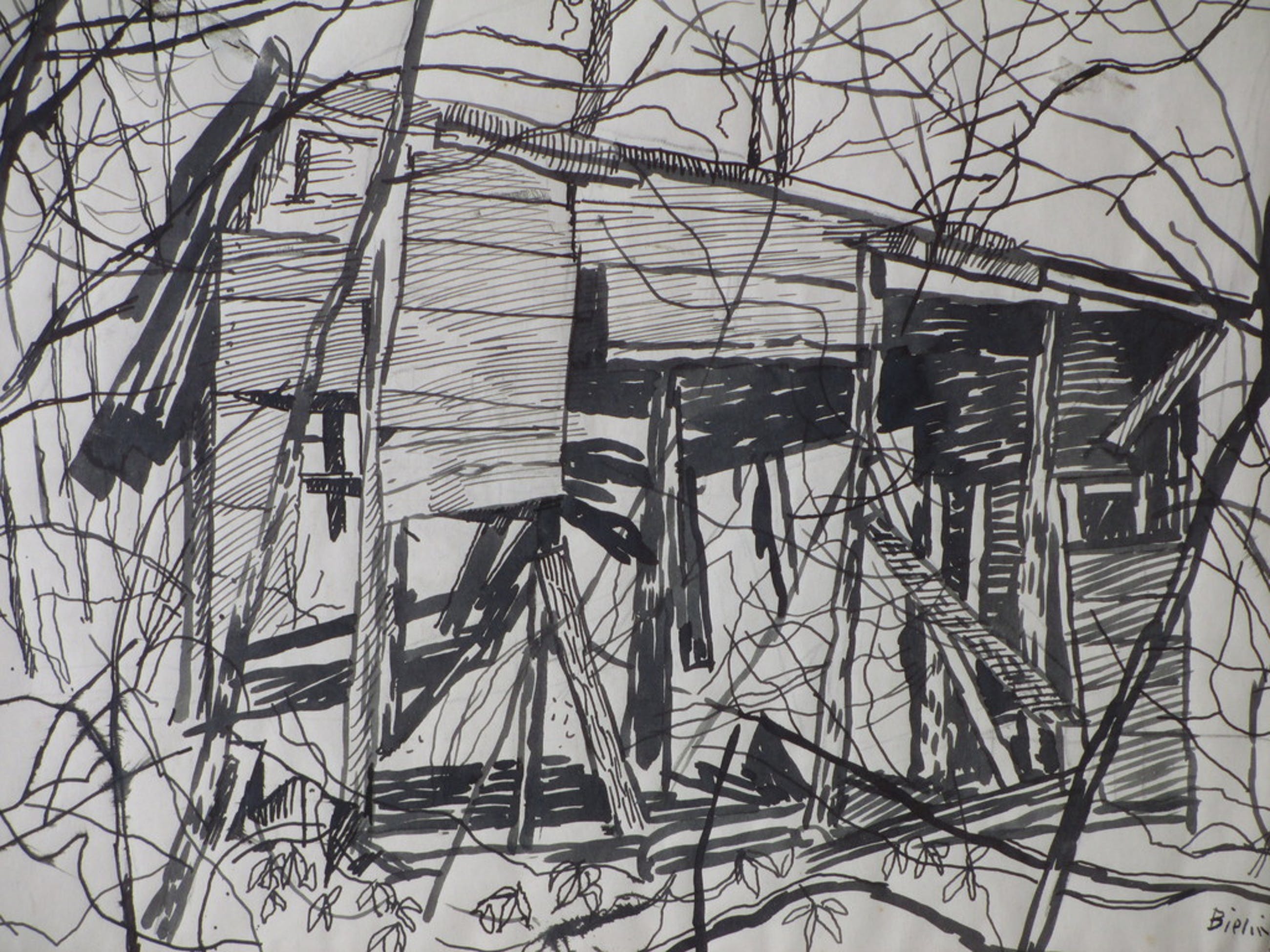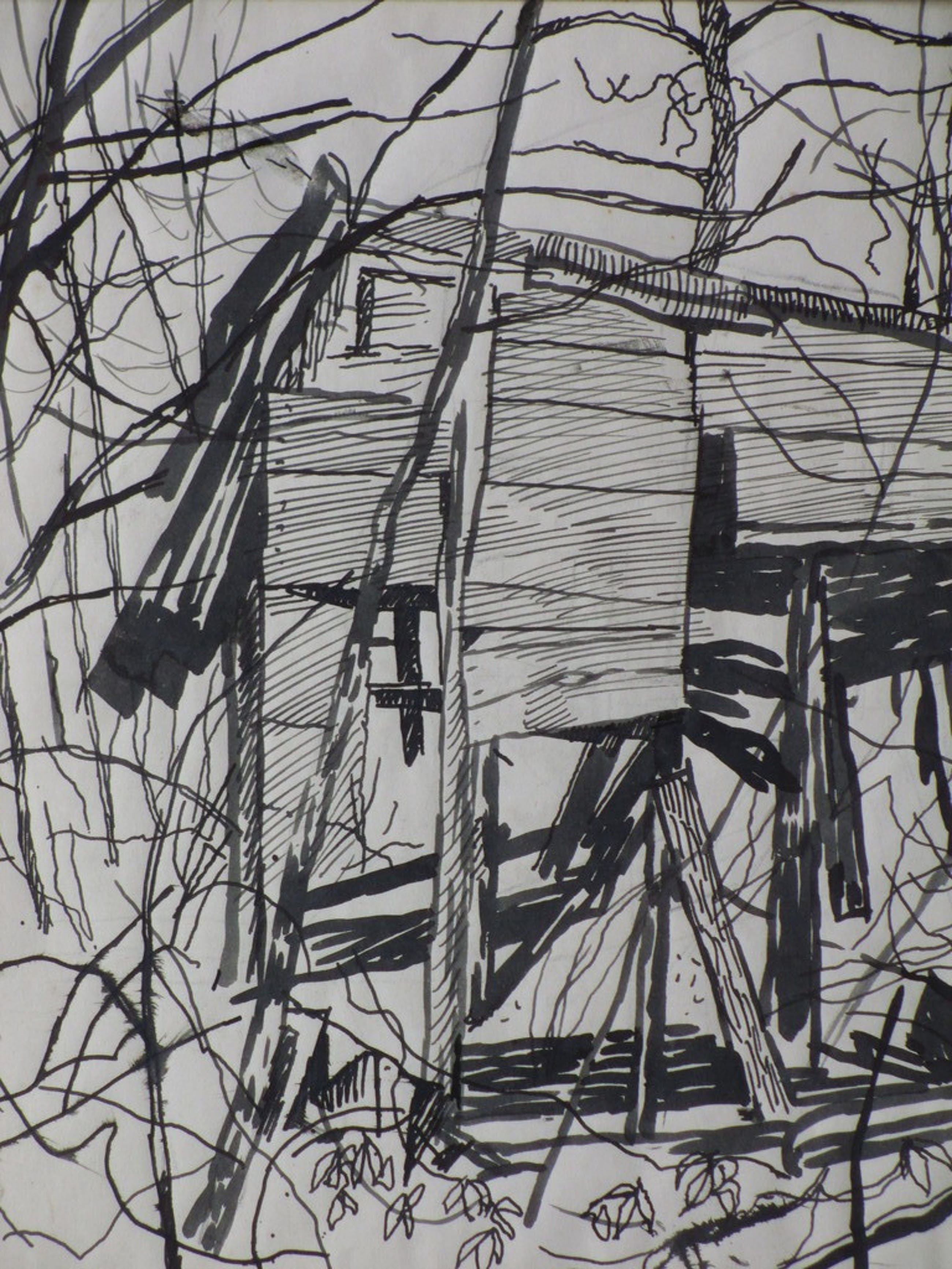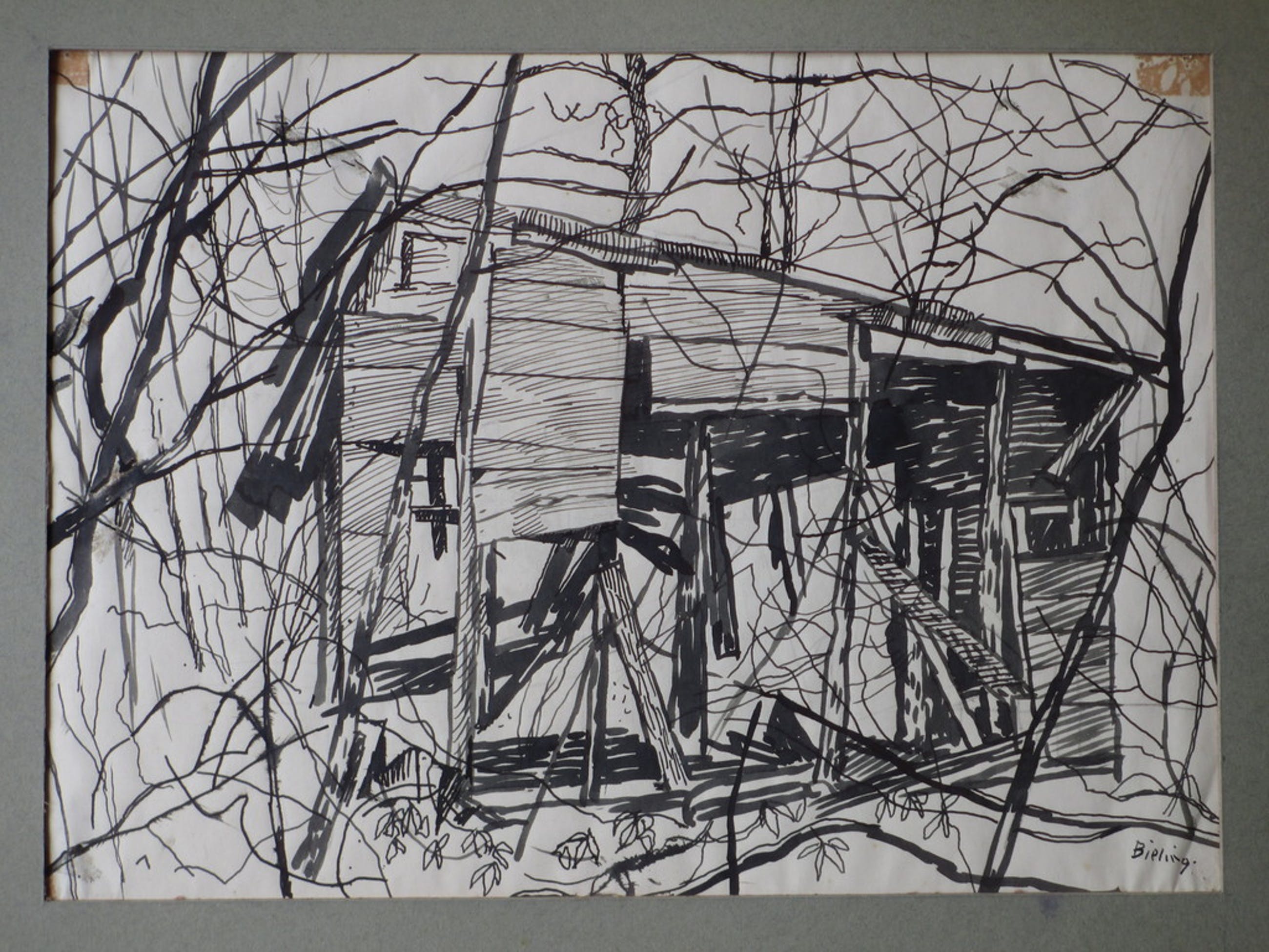Tekening onder passepartout, beeldmaat 26x36, p.p.maat 50x56