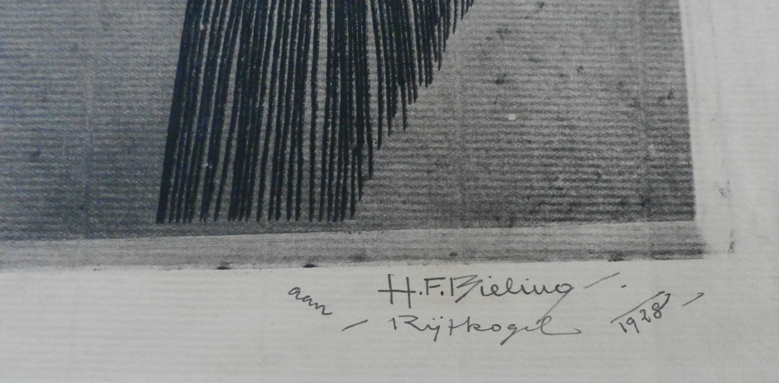 Houtsnede op japans papier van Herman Bieling uit 1928. Afmetingen blad H48 x b38.5. Afmetingen voorstelling H43 x b34.5. Het werk is rechtsonder gesigneerd door de kunstenaar. De authenciteit van het aangeboden werk wordt voor 100% gegarandeerd. Een certificaat van echtheid kan, op aanvraag worden meegestuurd. Conditie: in goede staat. Wat plakresten rechts en linksboven. Deze vallen bij inlijsting onder de passepartout