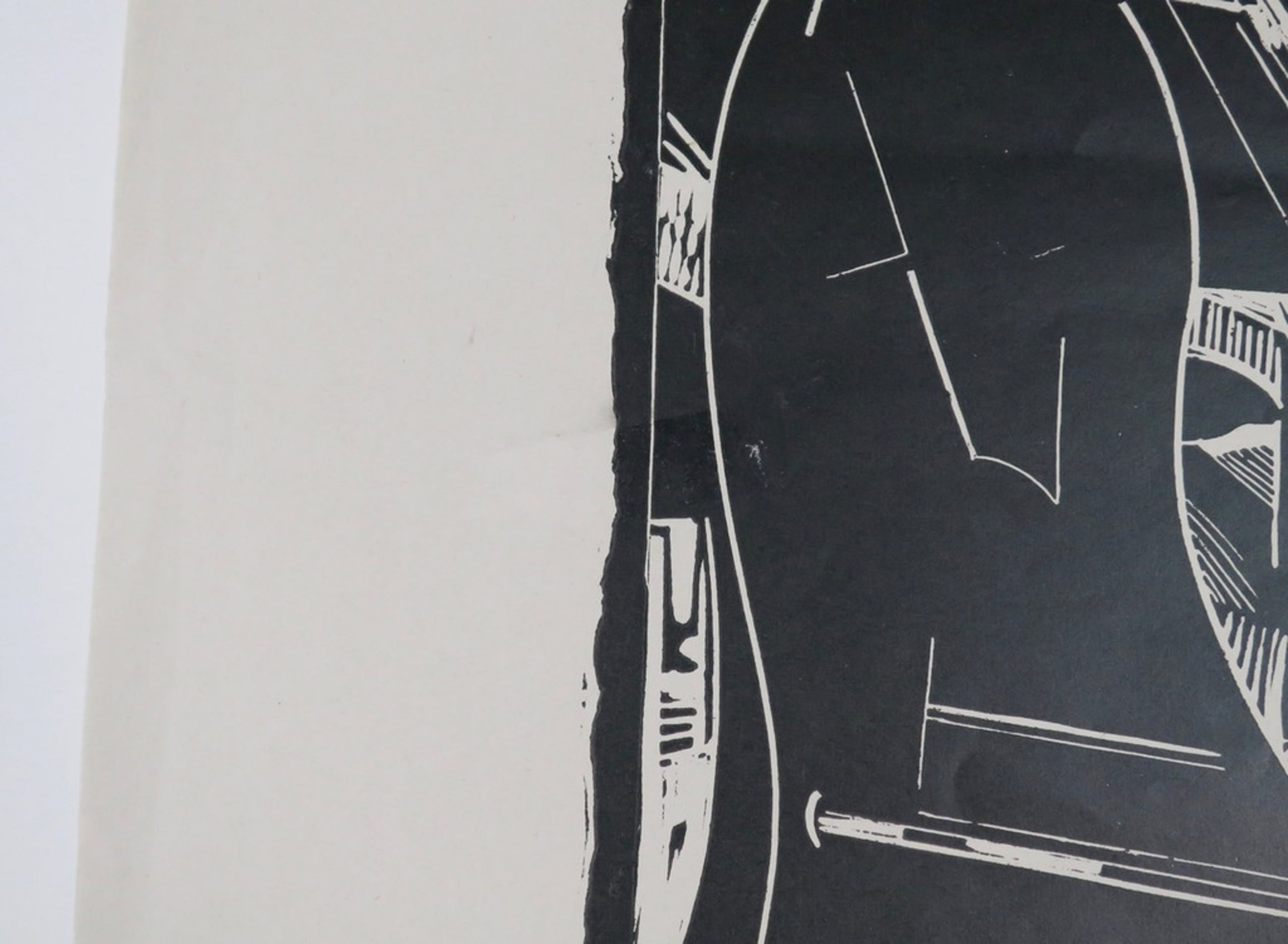Materiaal: Zinkografie op papier dun lichtgrijs papier velin