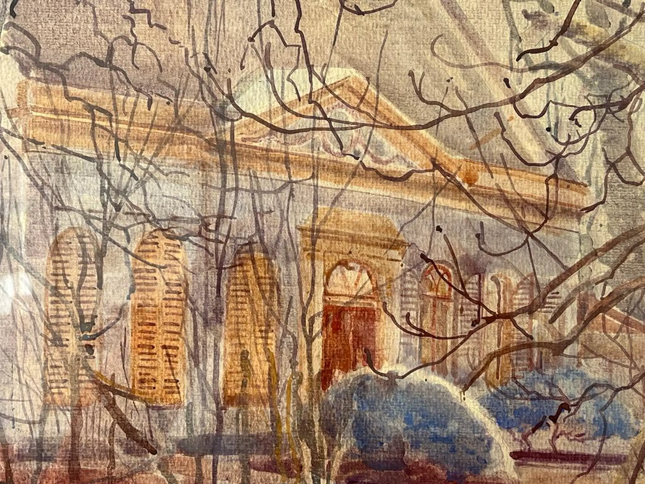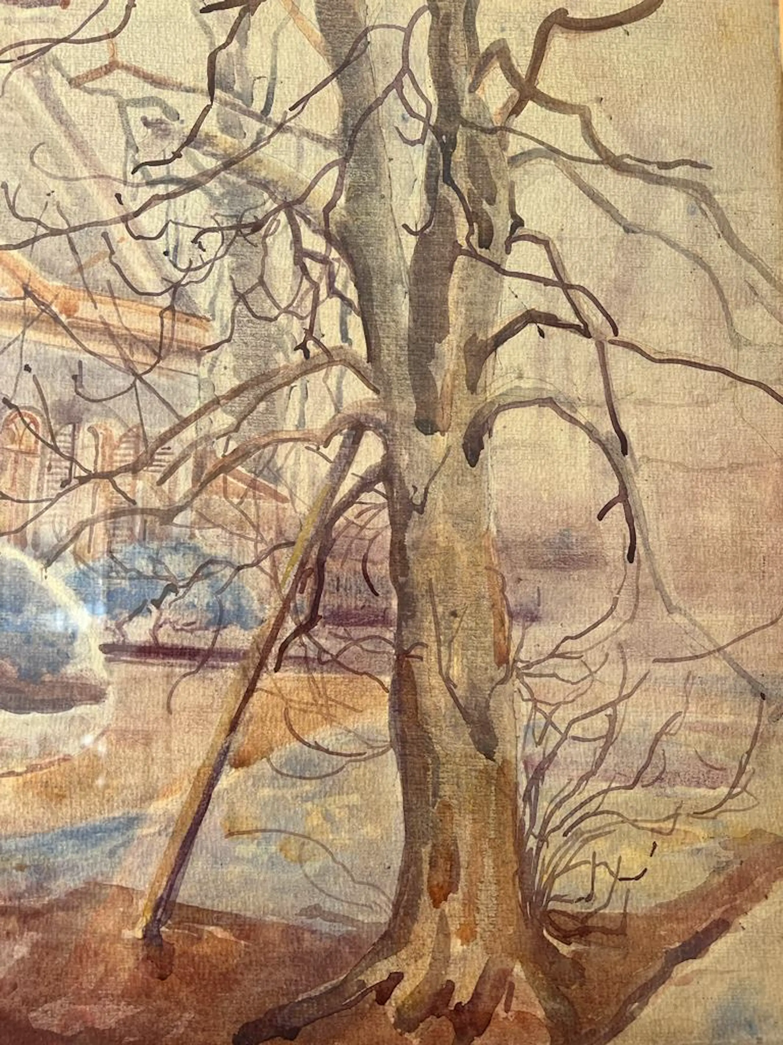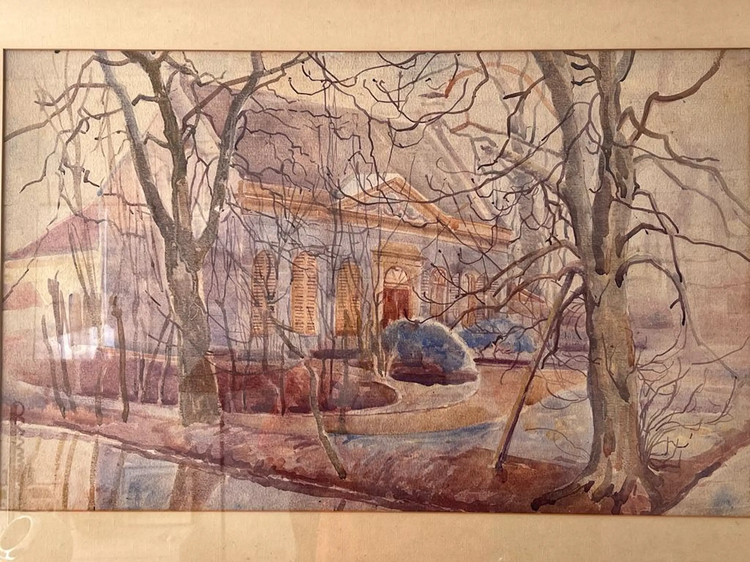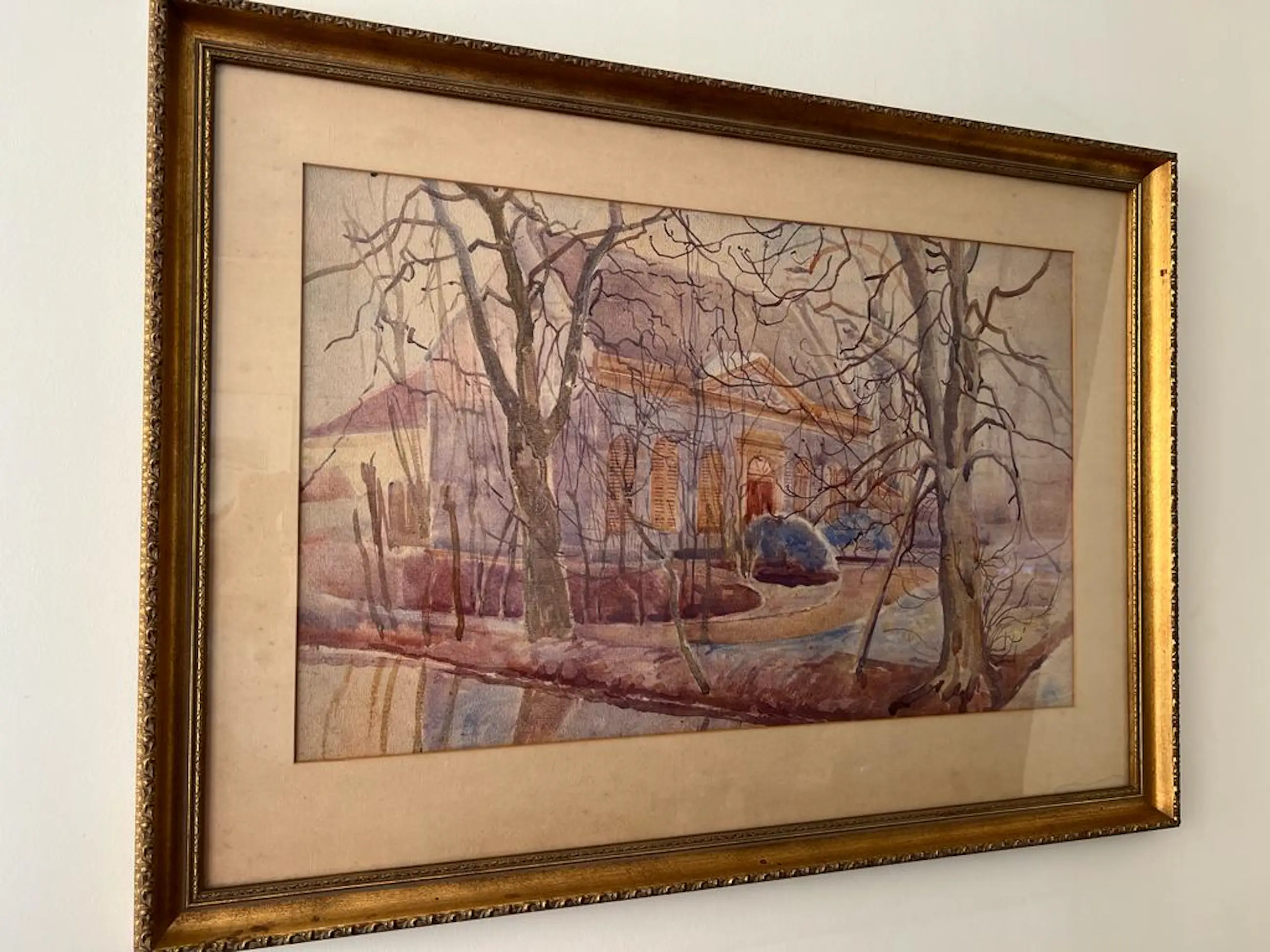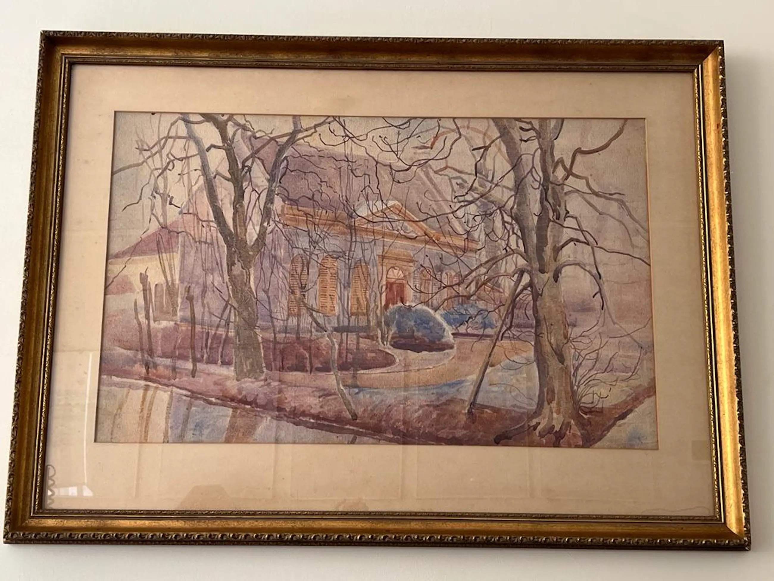 prachtige aquarel van zijn woonhuis en tuin te Hillegersberg