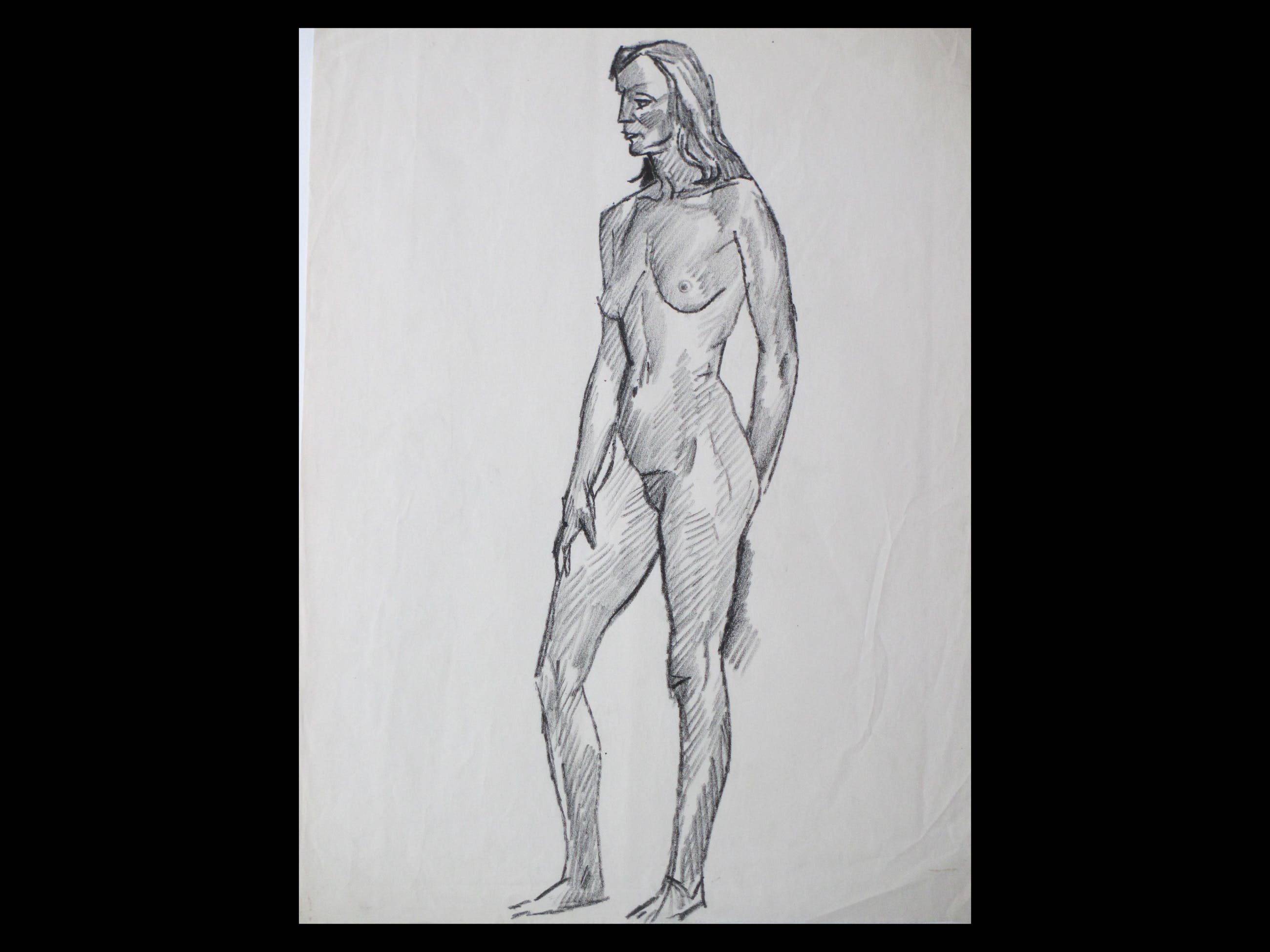 Tekening door Herman BielingVoorstelling van een staand naaktTekening onder passe-partout, beeldmaat 47x17, p.p.maat 65x50Niet gesigneerdDirect uit familiebezit kunstenaarAuthenticiteit volledig gegarandeerd
