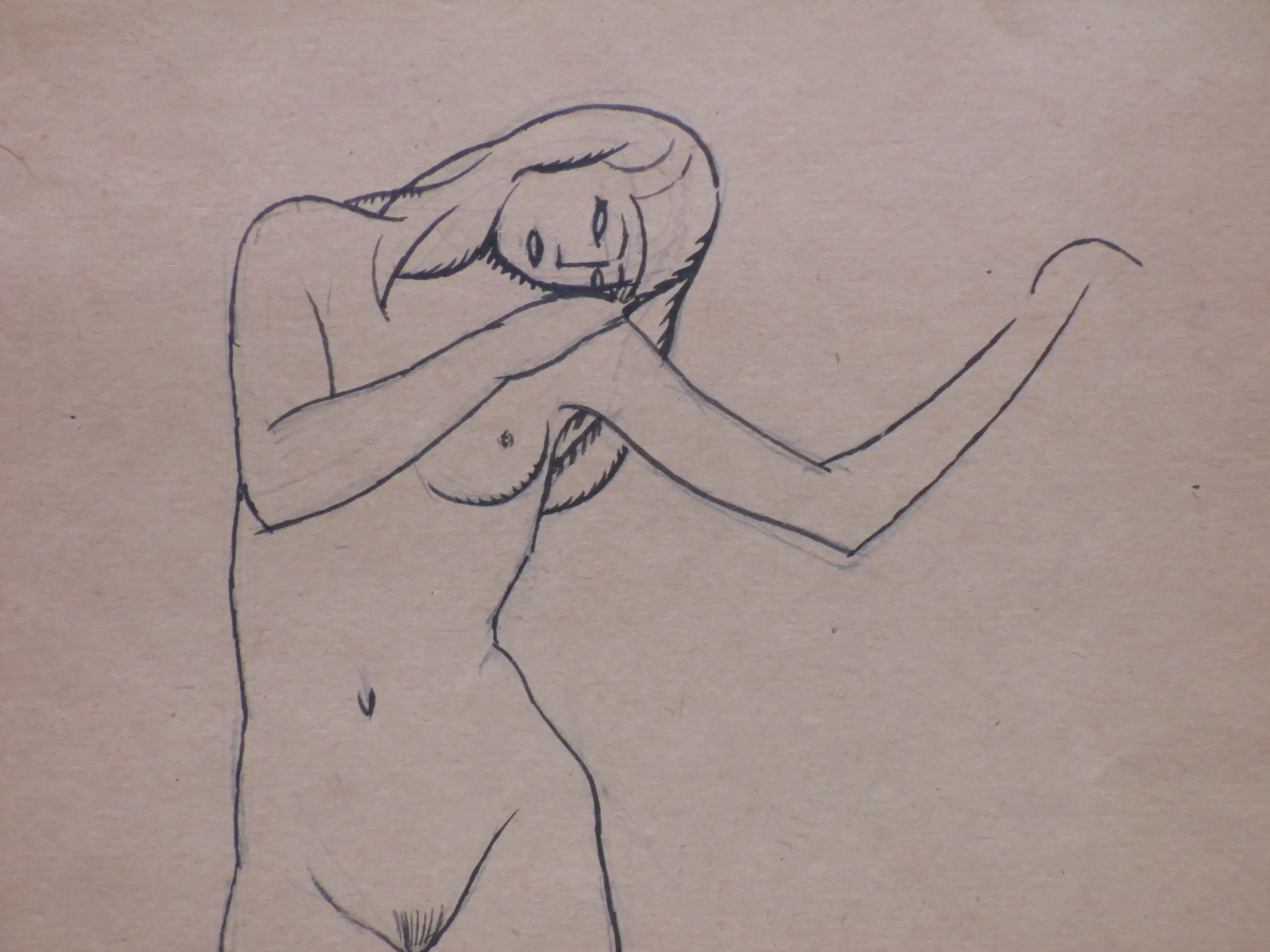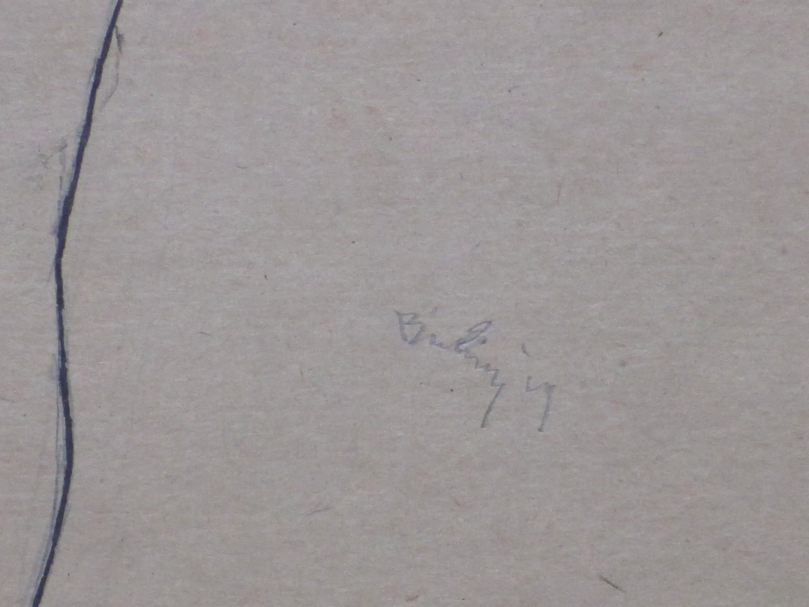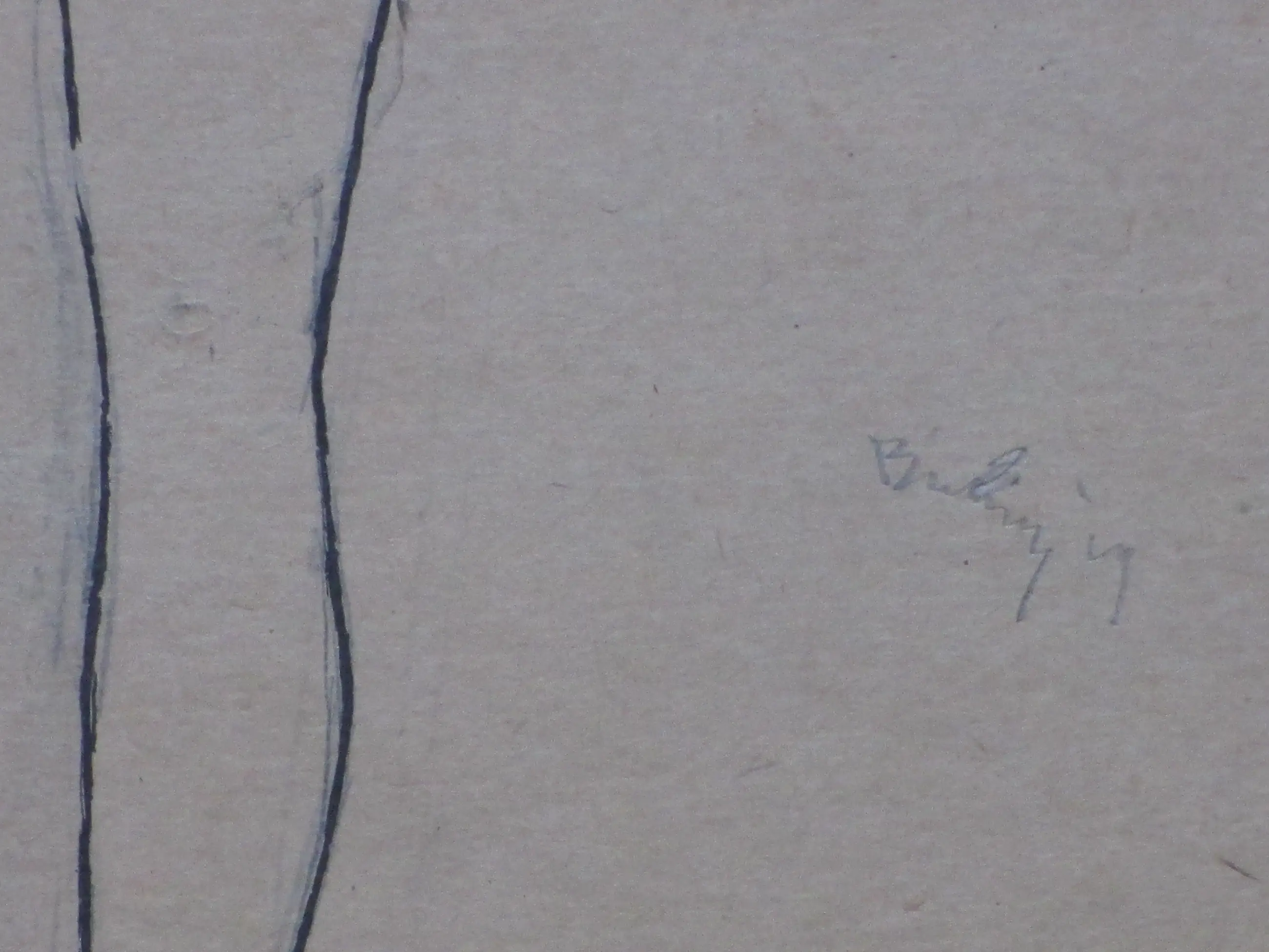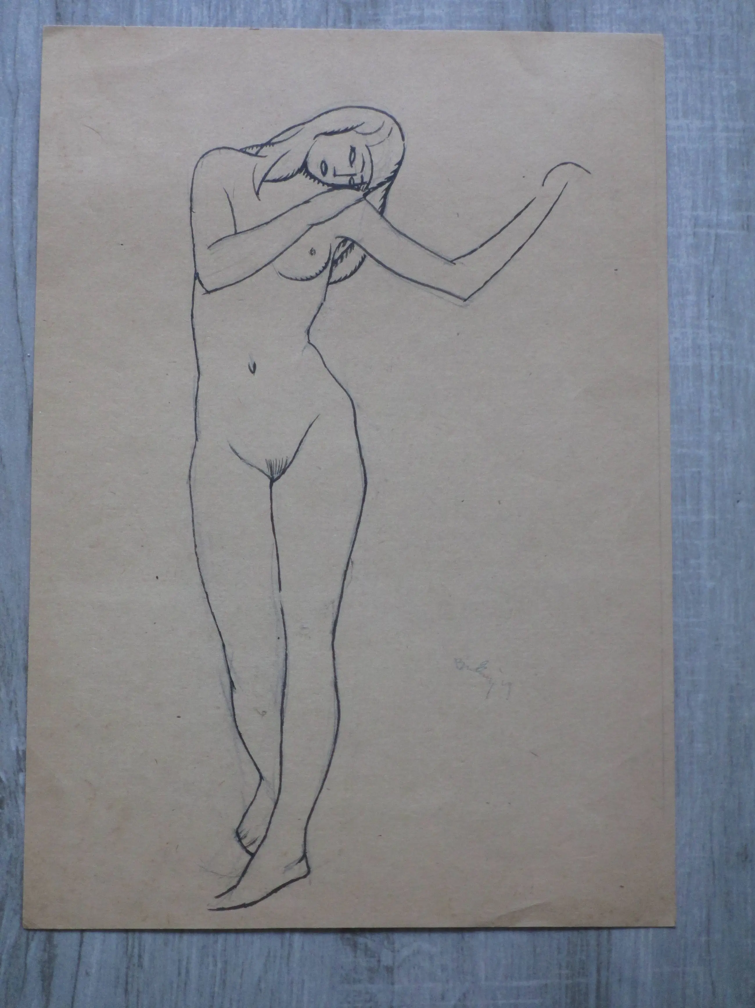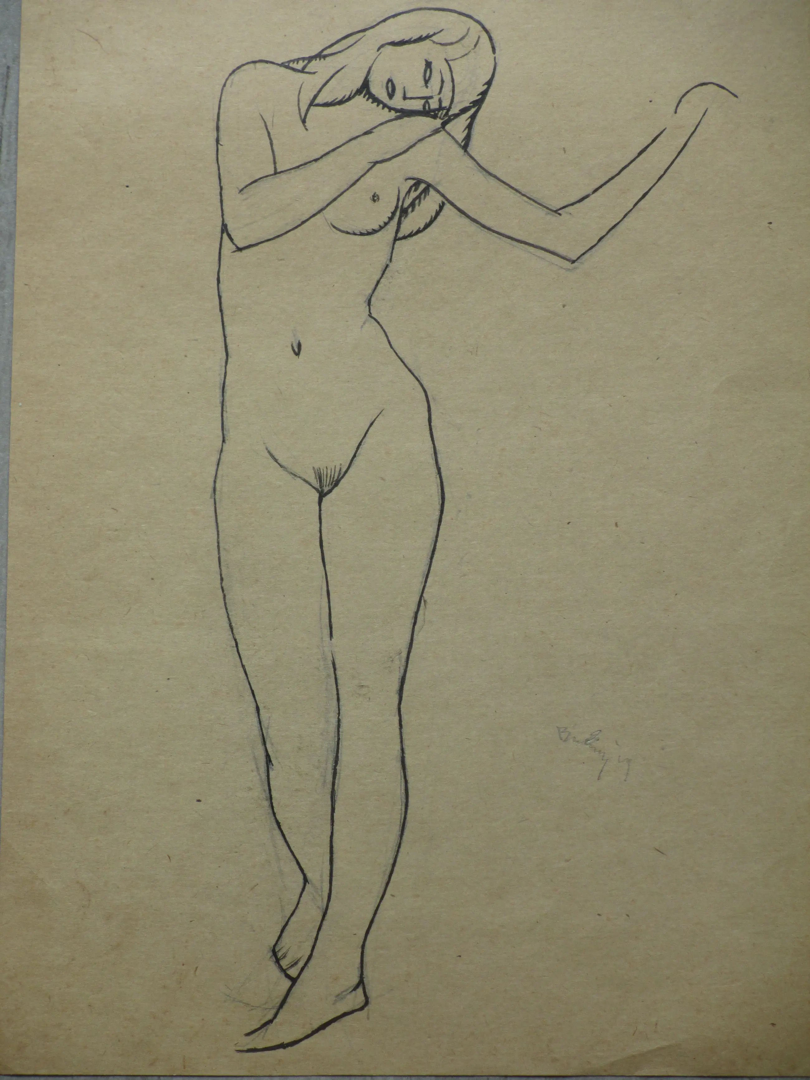 Inkttekening door Herman Bieling Voorstelling van een staand vrouwelijk naakt Losbladig, beeldmaat 28x13, bladmaat 31.5x22 Gesigneerd en gedateerd in potlood r.o.: 'Bieling '29' Deel schets op achterzijde Papier is egaal verkleurd Authenticiteit volledig gegarandeerd