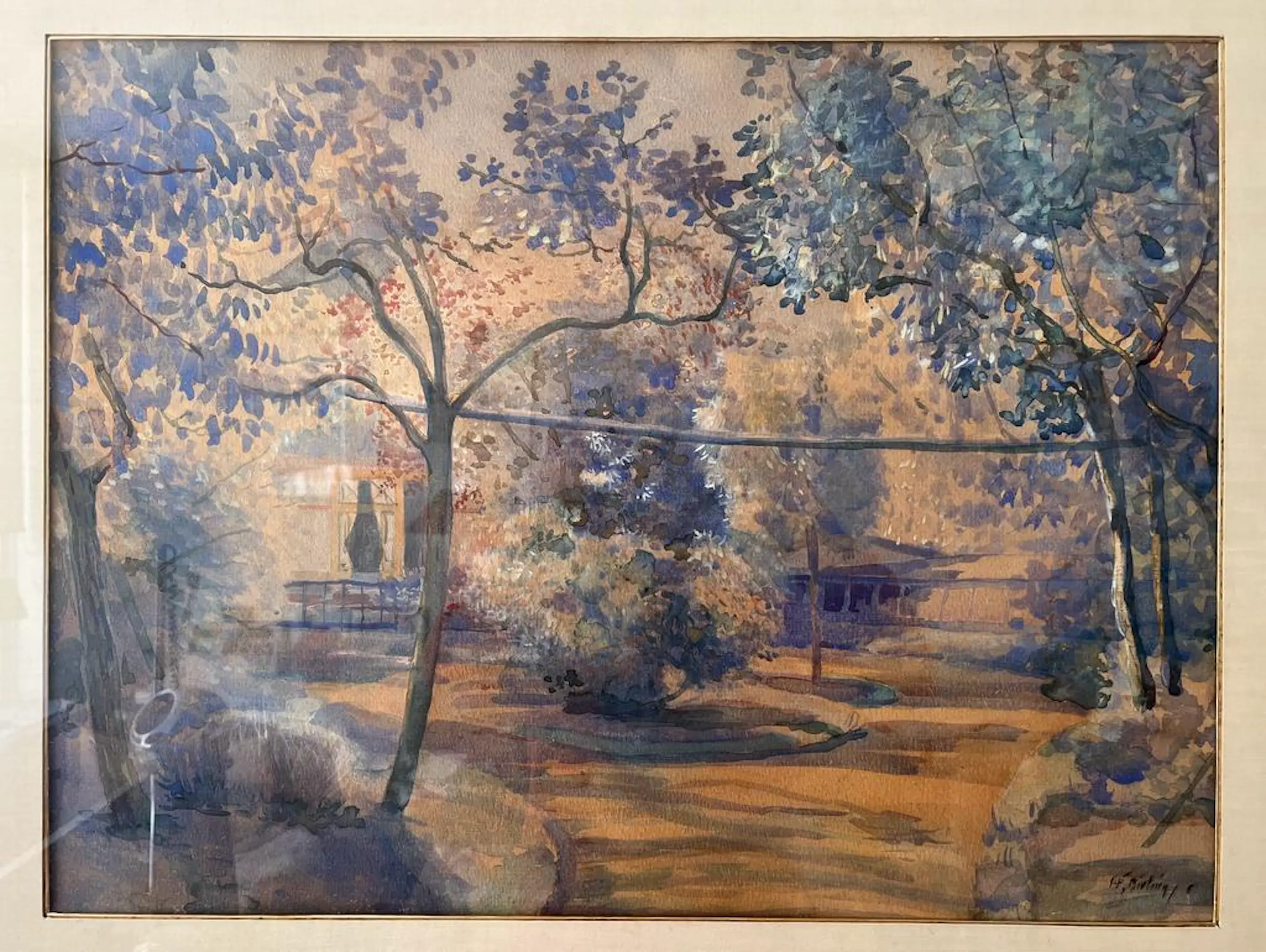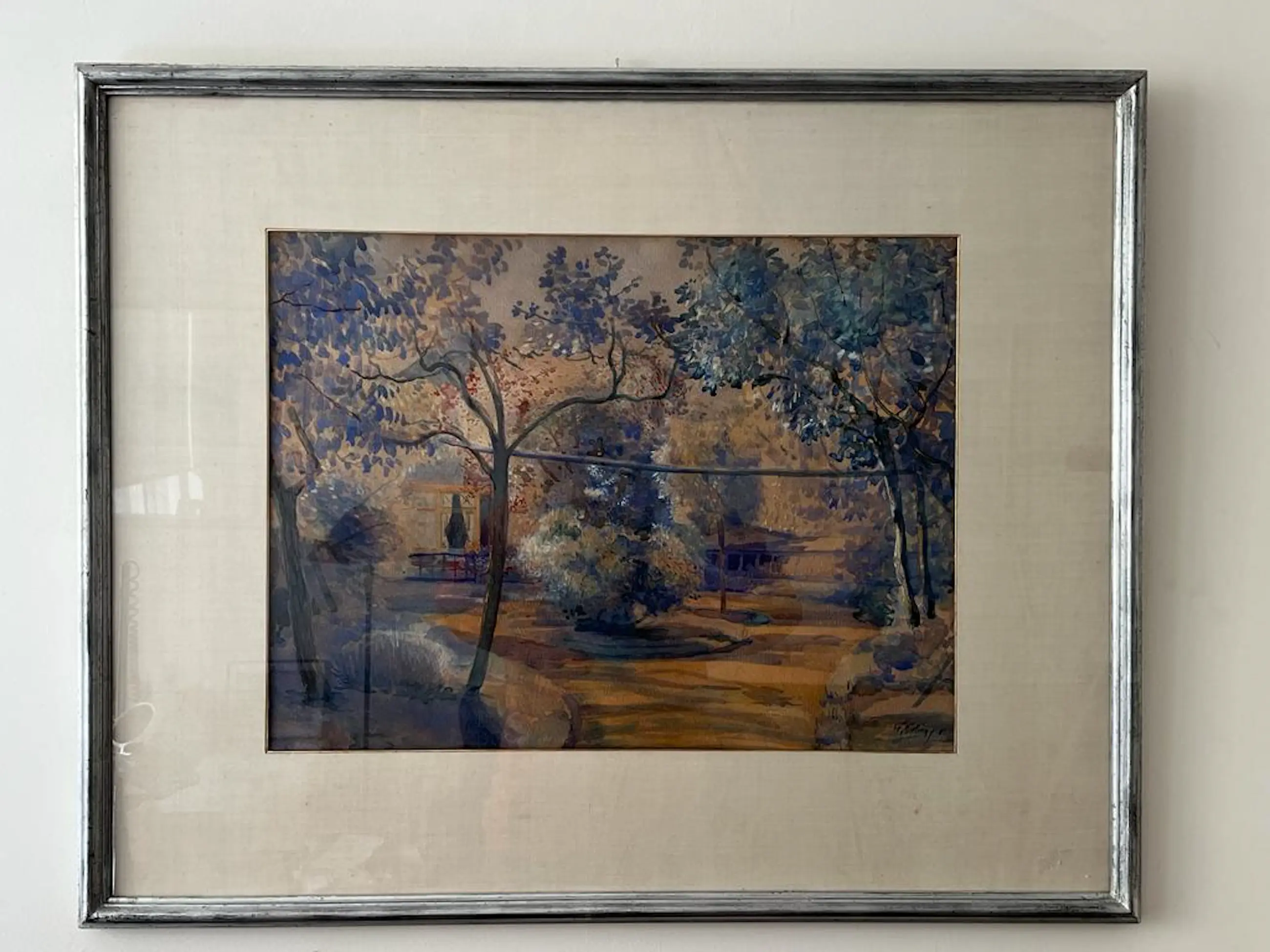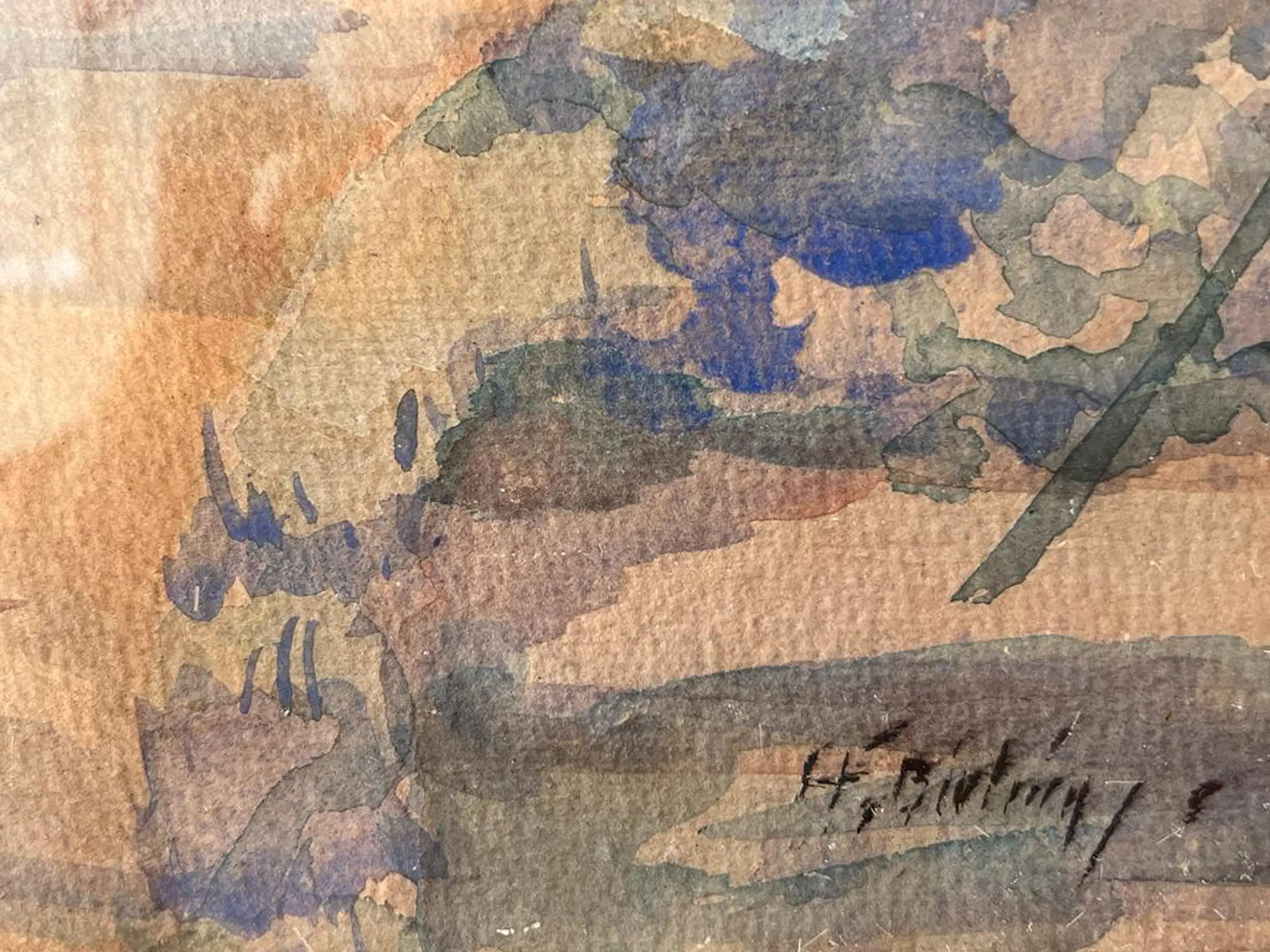 mooie aquarel, professioneel ingelijst. Passe Partout licht vergeeld - oude lijst