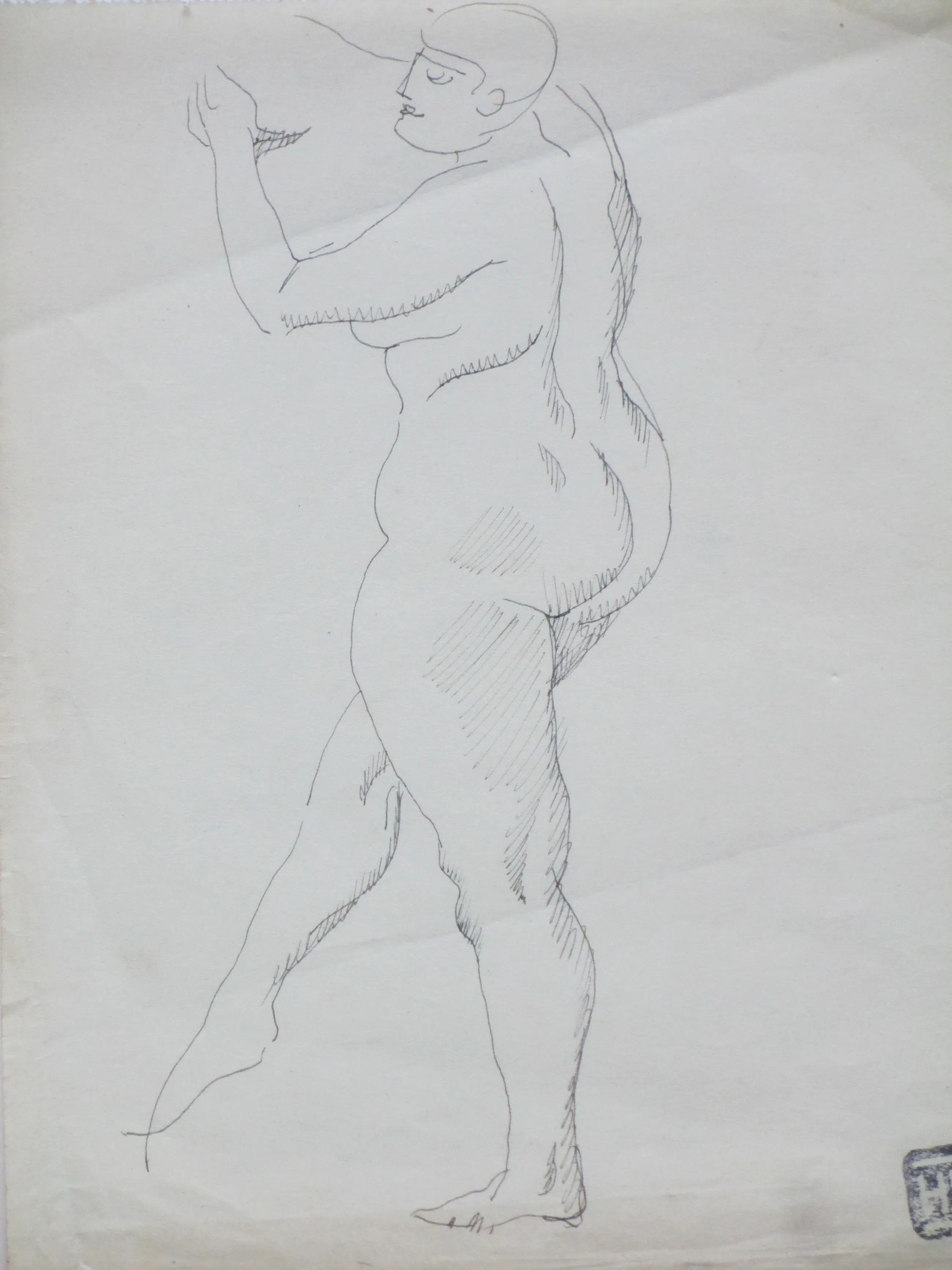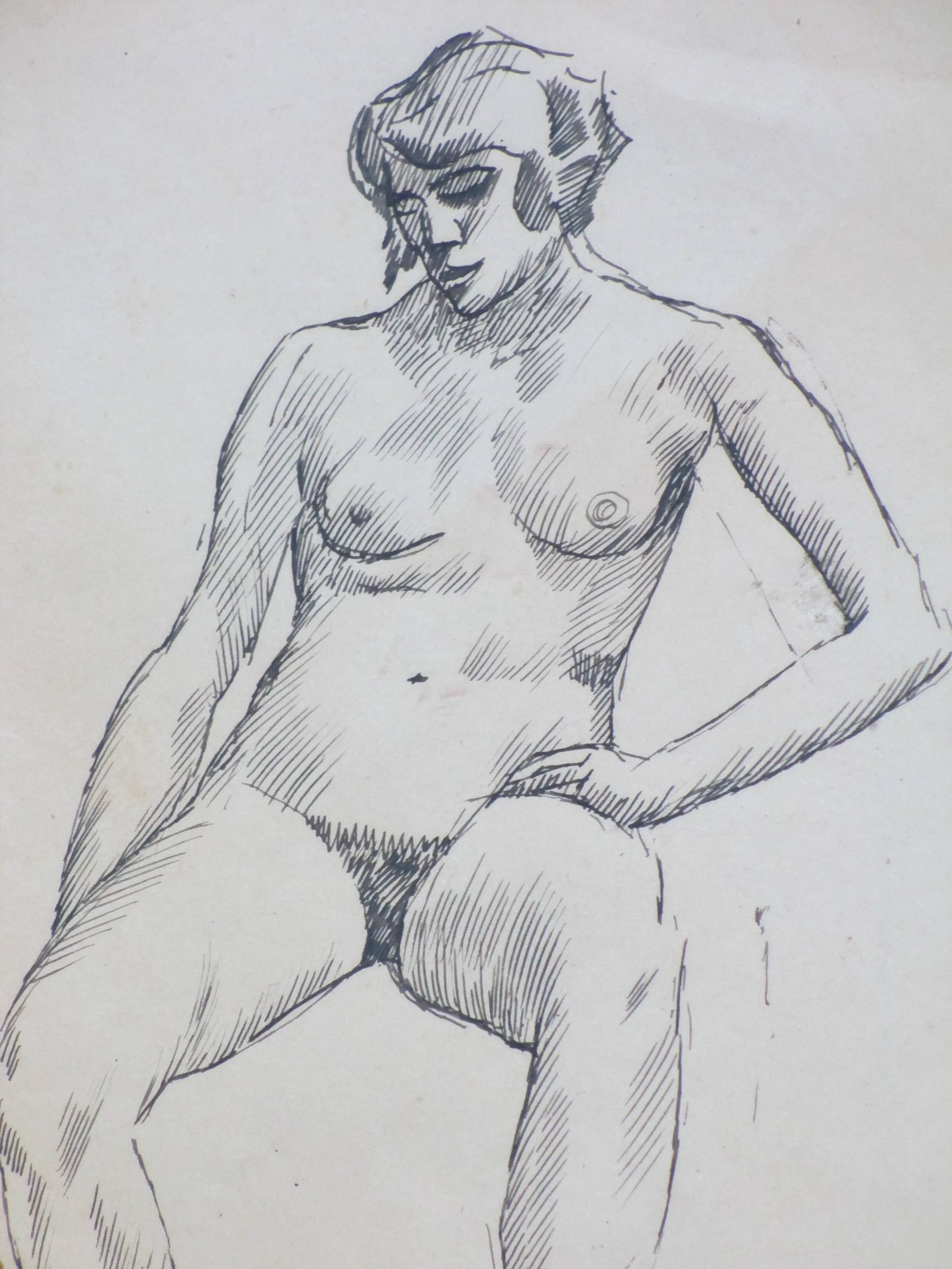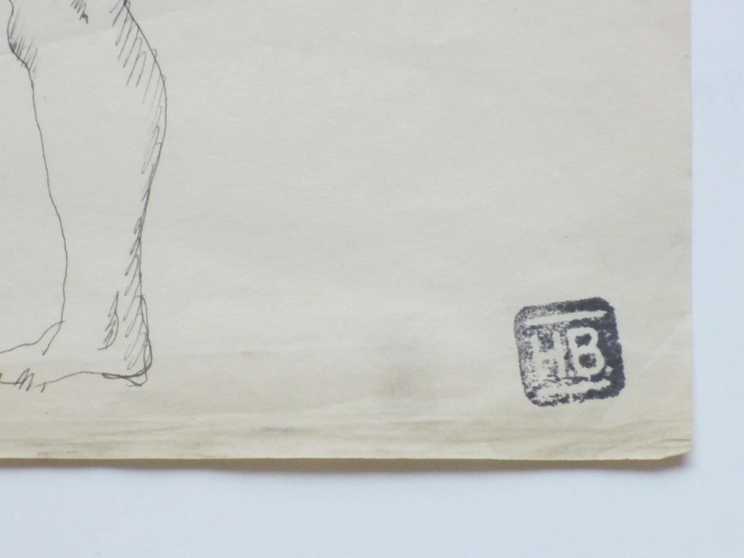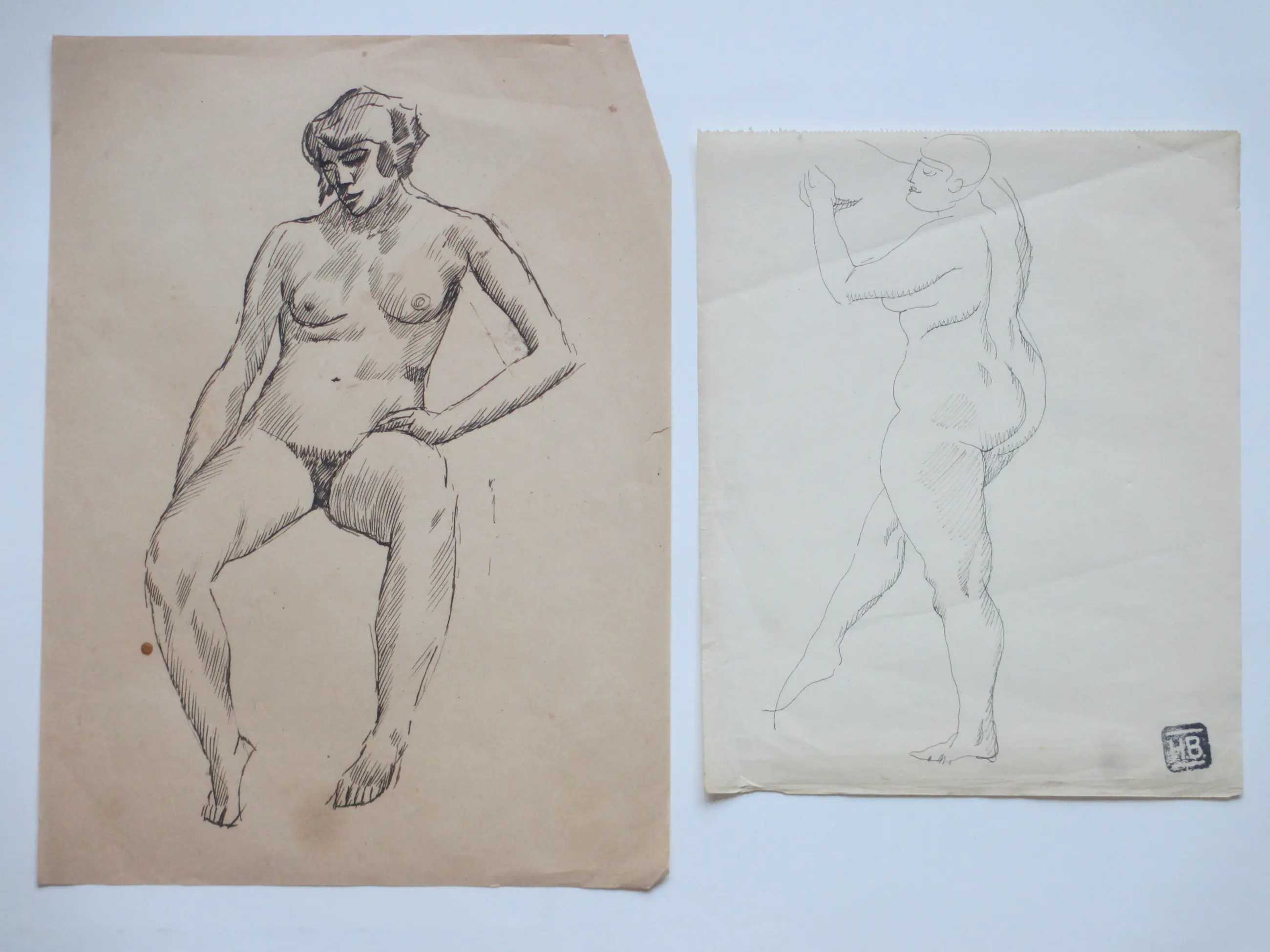 Twee inkttekeningen door Herman Bieling Voorstellingen van twee naakten Losbladig, beeldmaten 28x17 en 24x10, bladmaten 32x23 en 25x20 Grote tekening niet gesigneerd, kleine tekening met atelierstempel Herkomst: aangekocht uit familiebezit Bieling Authenticiteit volledig gegarandeerd