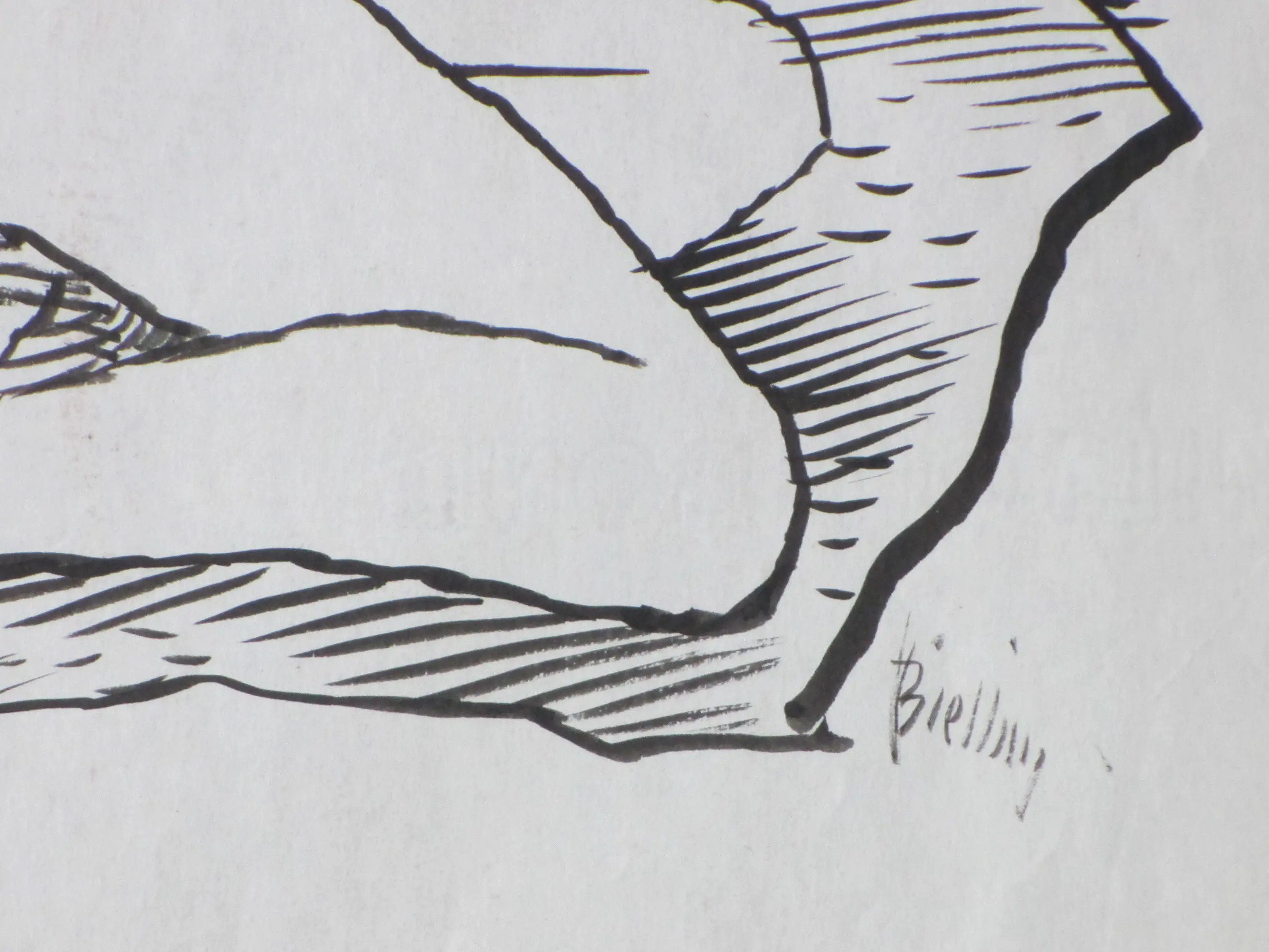 Penseeltekening door Herman Bieling Voorstelling van een zittend naakt, op de rug gezien Losbladig, beeldmaat 34x29, bladmaat 48x39 Gesigneerd in penseel r.o.: 'Bieling' Authenticiteit volledig gegarandeerd