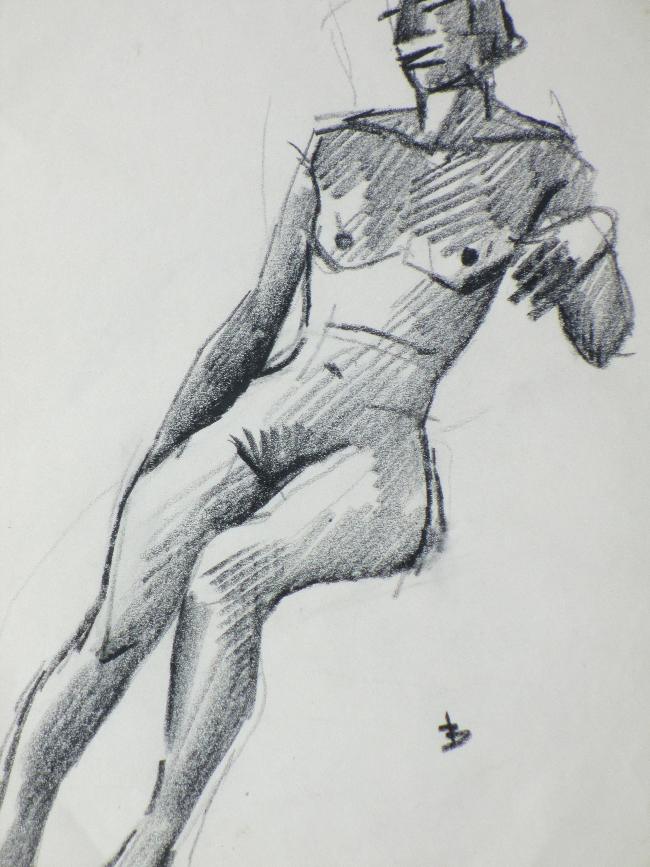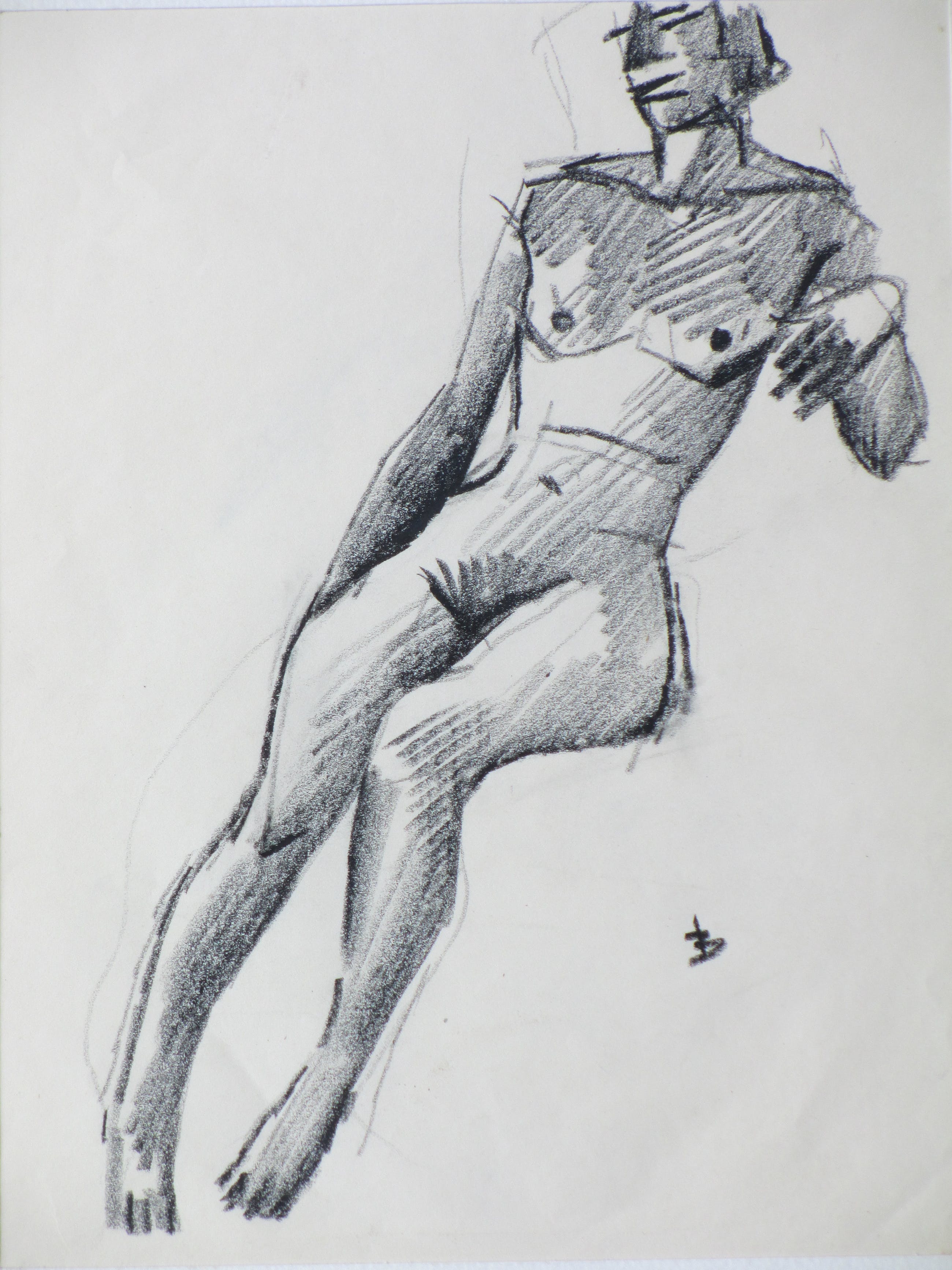 Potloodtekening door Herman Bieling. Voorstelling van een zittend naakt. Losbladig onder passepartout, beeldmaat 23x18, bladmaat 24x19, p.p.maat 50x33 Gemonogrammeerd in potlood rechtsonder: 'B' Authenticiteit volledig gegarandeerd