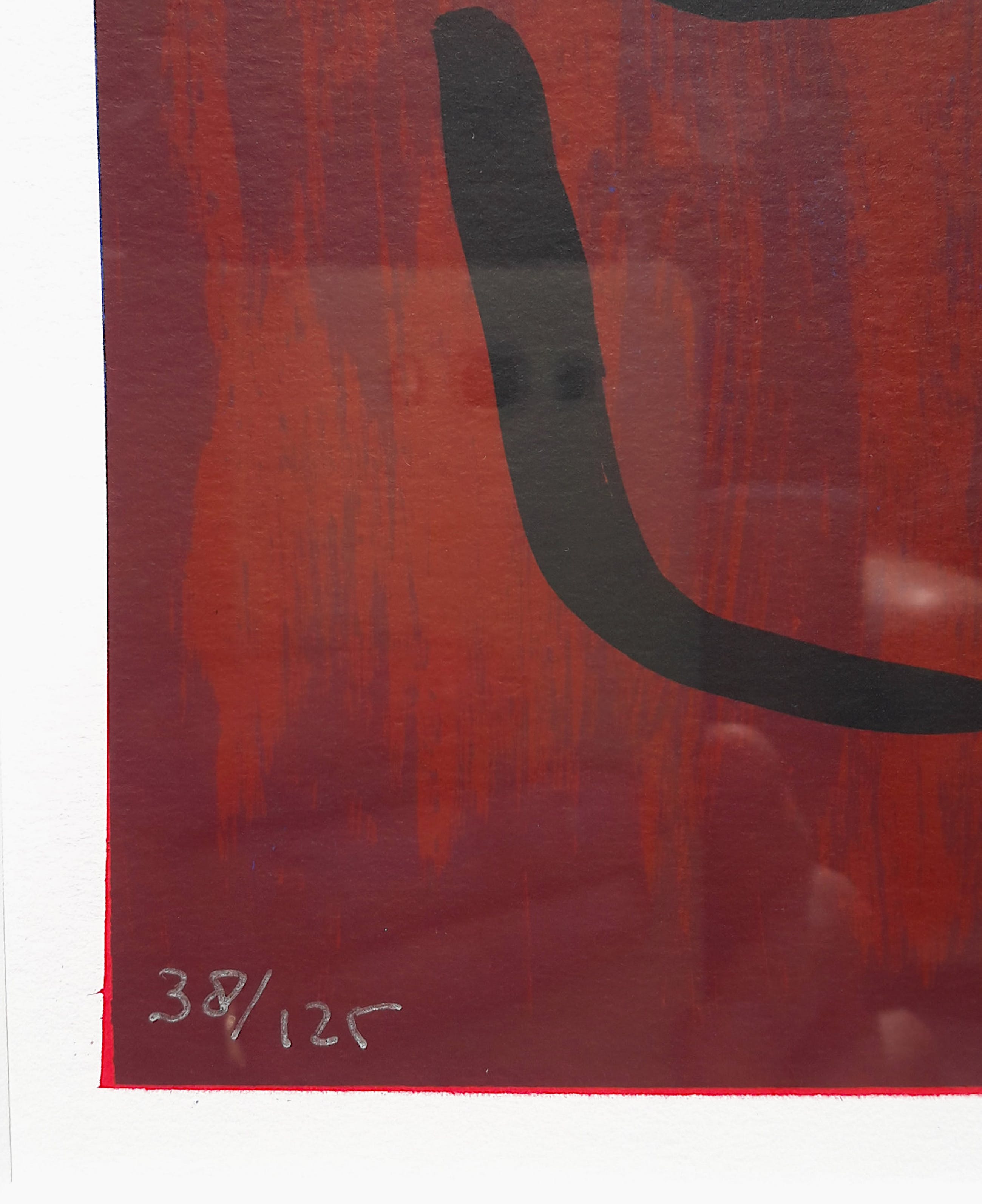 Zeer bijzonder want de laatste kleurenzeefdruk van Herman Brood (lees ik bij de concullega’s). Zeefdruk op papier, met stift gesigneerd en genummerd (38/125) en in de druk getiteld. In prachtige, professionele lijst, achter glas en met smetteloos, zuurvrij passe-partout. In goede conditie; paar kreukjes in het blad aan de rechterkant (niet storend). Afgezien daarvan is alles in uitstekende conditie. De inlijsting alleen is al meer dan 300 euro waard.
